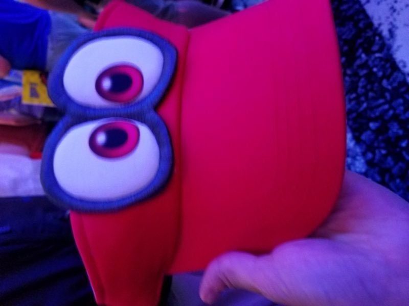 When I returned, I watched Corgi and Sully take their turns playing Mario Odyssey on the Switch, and even got some video of Corgi playing, which you can watch here. One of the cool things we learned you can do is possess things by throwing Mario’s hat on it. For example, Mario was able to possess Bullet Bill and went flying around in him. Another cool thing was the unexpected transition from 3D to 2D! It was a seamless transition, as Mario approached a wall, it turned into the old school blocks that you move sideways to jump up and hit, or jump on top of. In another instance, the 2D occurred on a rounded castle, and you could see the bullets flying around it in a circle but in flat 2D. Hard to explain, and I don’t have video of that, unfortunately, but it was really cool. When they finished playing, they were each given a Mario Odyssey pin and a voucher, which they were then able to go redeem for a prize. The prize was a visor resembling Mario’s possession hat. Corgi graciously offered up his visor to us so that we could use it in a giveaway, so be on the lookout for that soon!