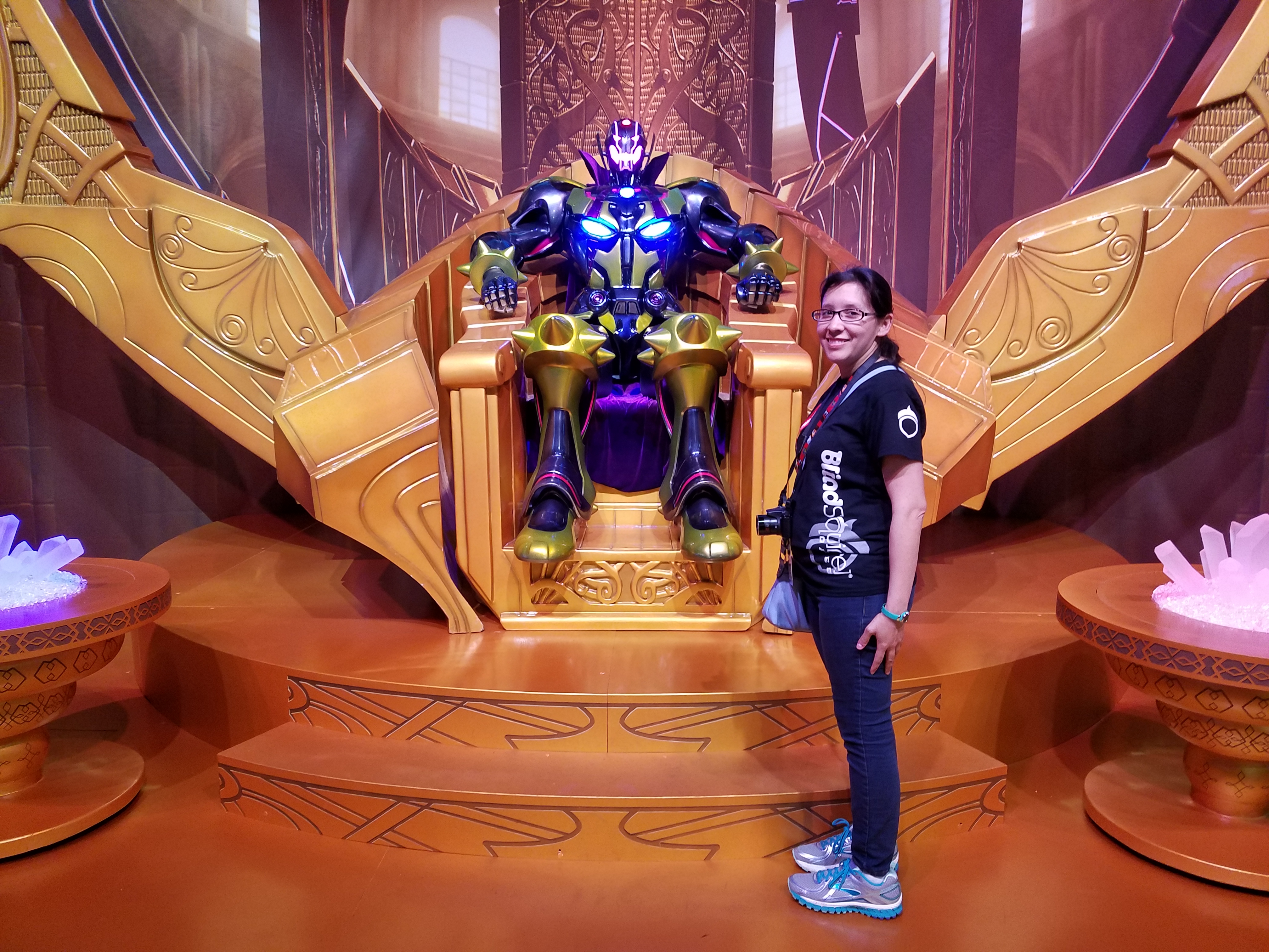 Just around the corner from there was the display for Marvel vs. Capcom: Infinite, which was a photo op with Ultron Sigma (at first we thought it was Thanos, but upon researching it, found out otherwise) sitting on a throne. The line was quite short, so Corgi got a photo with it, and then I did. Corgi had a cool pose of “proposing.” I wasn’t sure what to do, so I just kind of stood to the side.