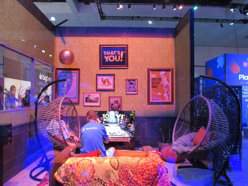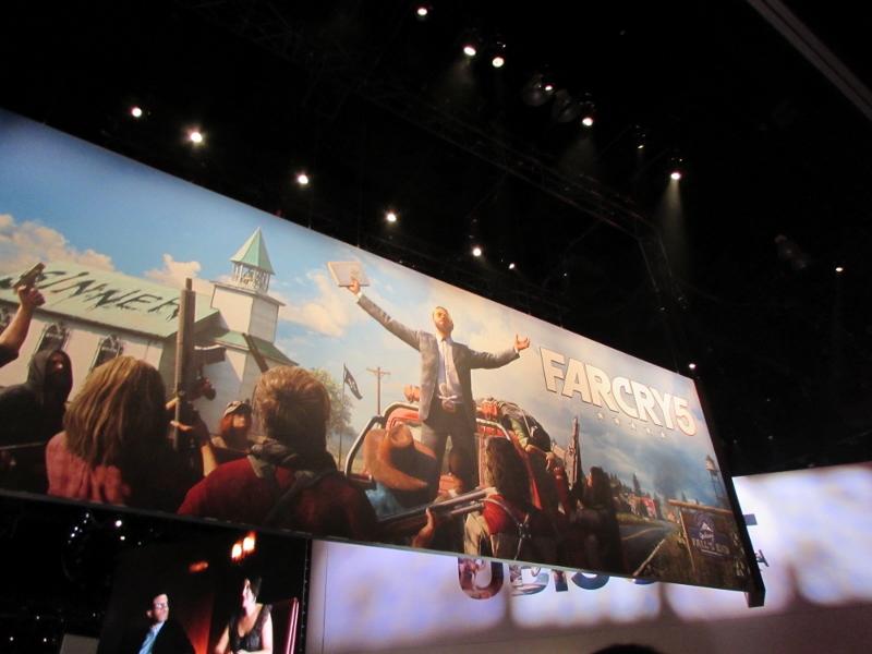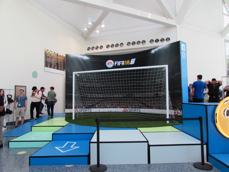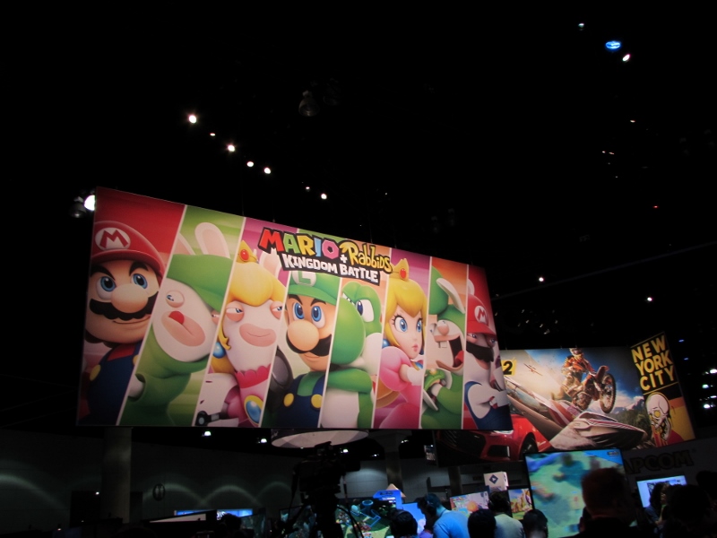 Over at Ubisoft, they were doing a live promo on stage for Just Dance 2018. Several people from the audience were up on stage mimicking the dance moves that the game directed them to do. When the song finished, a new group of volunteers came up on stage to dance to a new song. If you registered with Ubisoft, they would give you a wristband, and every time you play one of their demos, you would get points that the wristband would keep track of. Then you could go over to their gift shop to see what you could get with your points. Although I did get a wristband, I ended up not waiting to play any of their demos, as by this time, we figured the others should be wrapping up their Xbox Theater presentation.