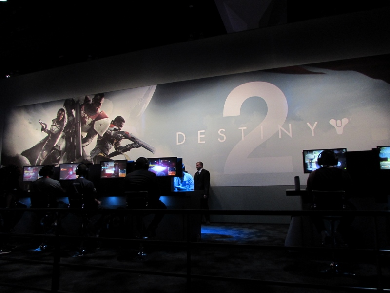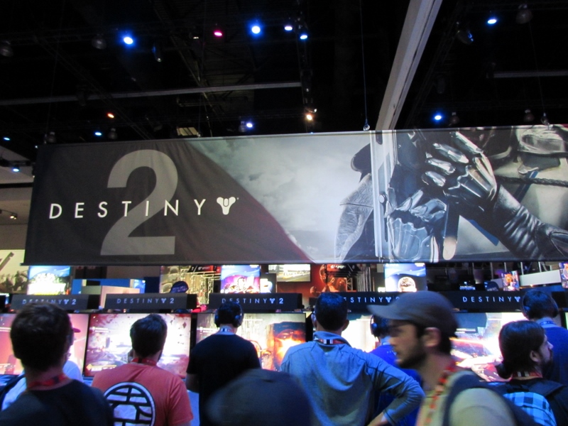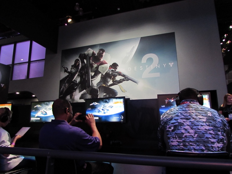 The time approached 10:00am, which was when the show floor was scheduled to open. But around 9:45am, the crowd started moving in! There was one wave of people let in, but then the crowd was stopped. This was probably so as not to crowd the escalators. We were let in with the second wave, and the guys headed straight for the Destiny 2 demo line. Having already been there the day before, apparently they knew exactly where to go. But the line was already long, and we were soon informed by line staff that the wait would be 4 hours. At that point, we decided to abandon ship, and Corgi, Sully, and I went over to Marvel Superheroes 2, which had a very short line (meanwhile, the Destiny 2 line continued to grow).