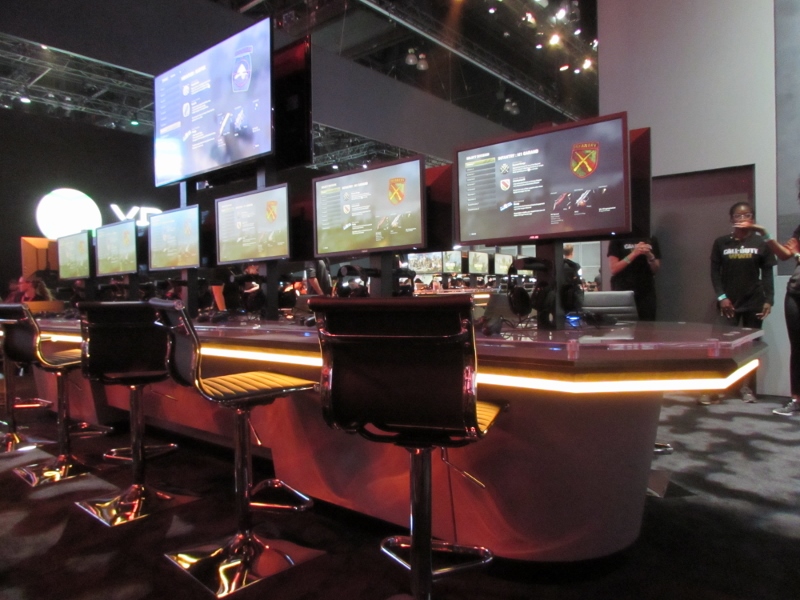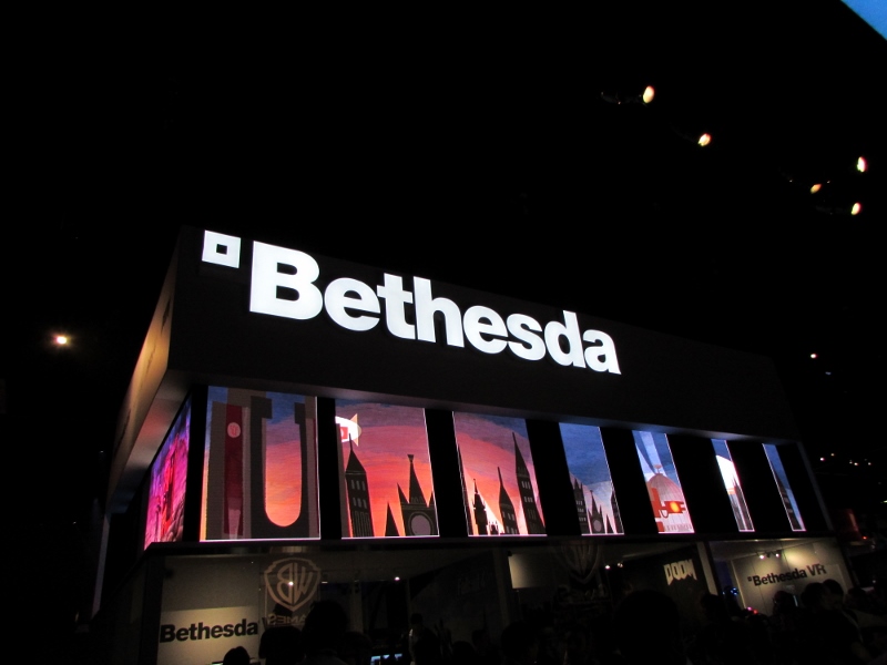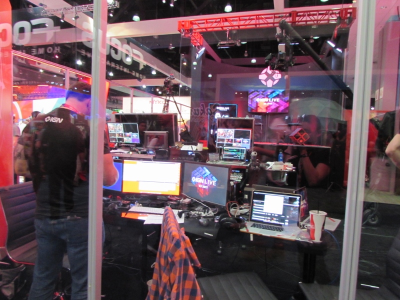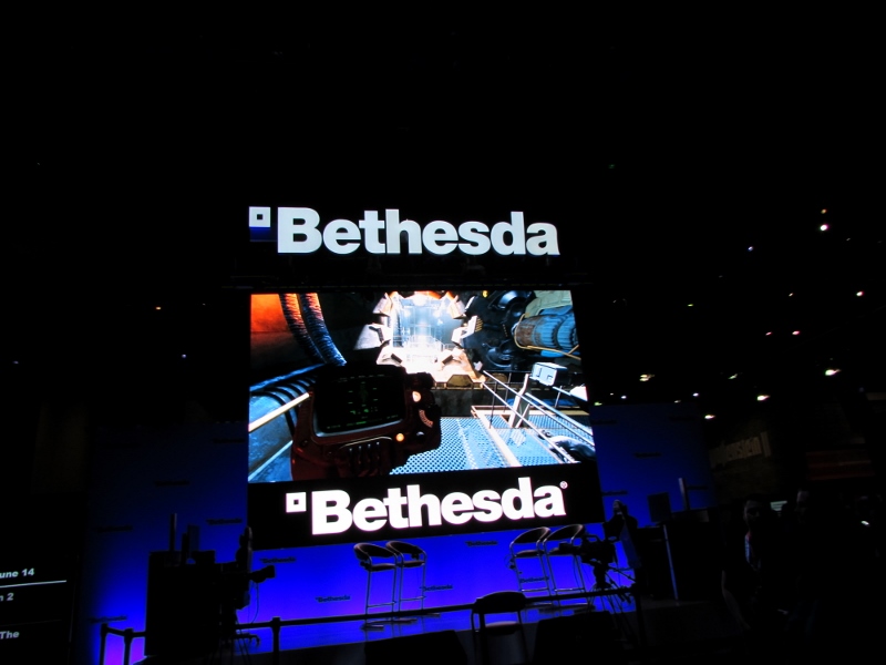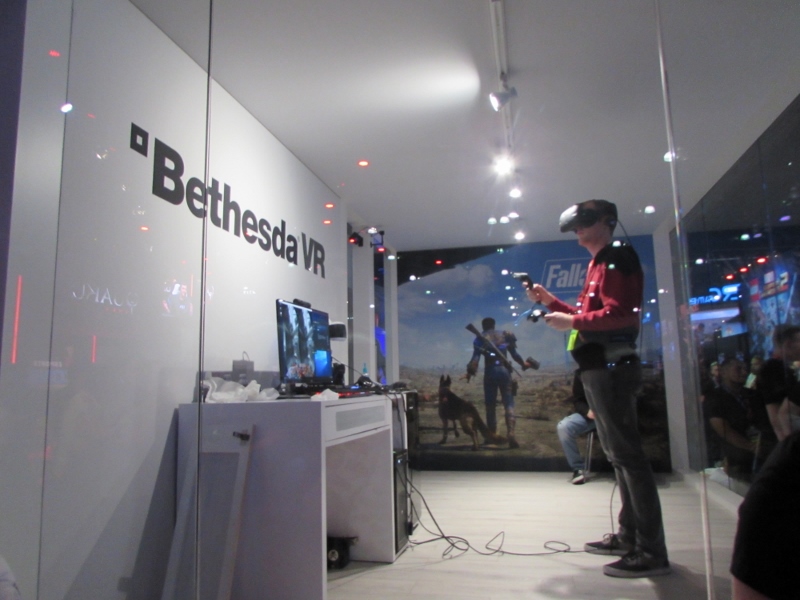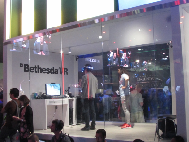 Just across from the eSports, Bethesda’s booth had transparent cubicles set up for VR games, so you could watch what these people wearing the VR headsets were doing.