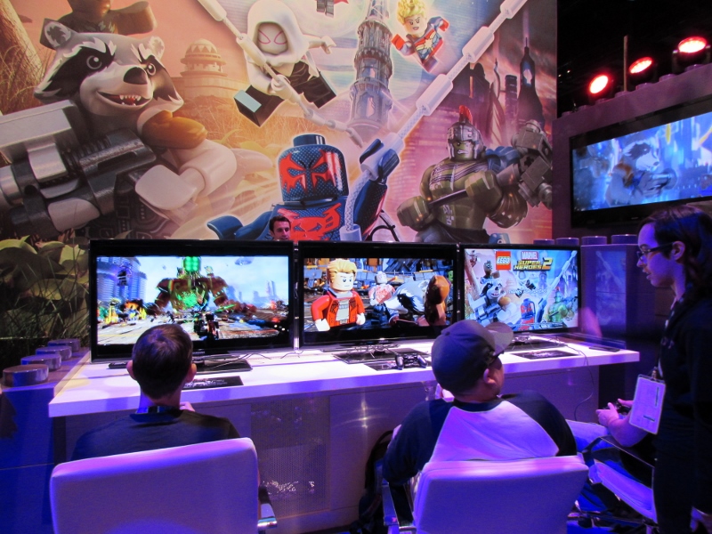 We waited about 20 minutes to play at one of the six stations they had set up. Sully went first, so I was able to take some video while he played, which you can view by clicking here. It was a LEGO game which had Guardians of the Galaxy characters that you could switch between playing. Oh, and this was on PS4, by the way, which I’ve never played before. The demo first starts off in a spaceship, and I was pretty much just running around, not knowing what I was doing. A staff member came by and directed me what to do, and which character to do it with, since I was pretty lost! After jumping ship, you fight against this really huge robotic bad guy who’s standing in the water (kind of reminded me of a Pacific Rim Jaeger). They ended up kicking me out before I defeated the big baddie, since I was taking too long! I got about 10 minutes to play, and was given an Iron Man LEGO set for stopping by to play.