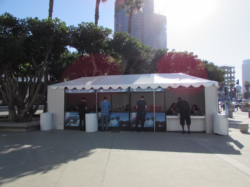 The badge pickup booth was located just outside the South Hall (there were in fact several pickup points, but this is the one I went to), and I was able to walk right up with no wait, have them scan my barcode and show them my ID, and then I was given my badge.