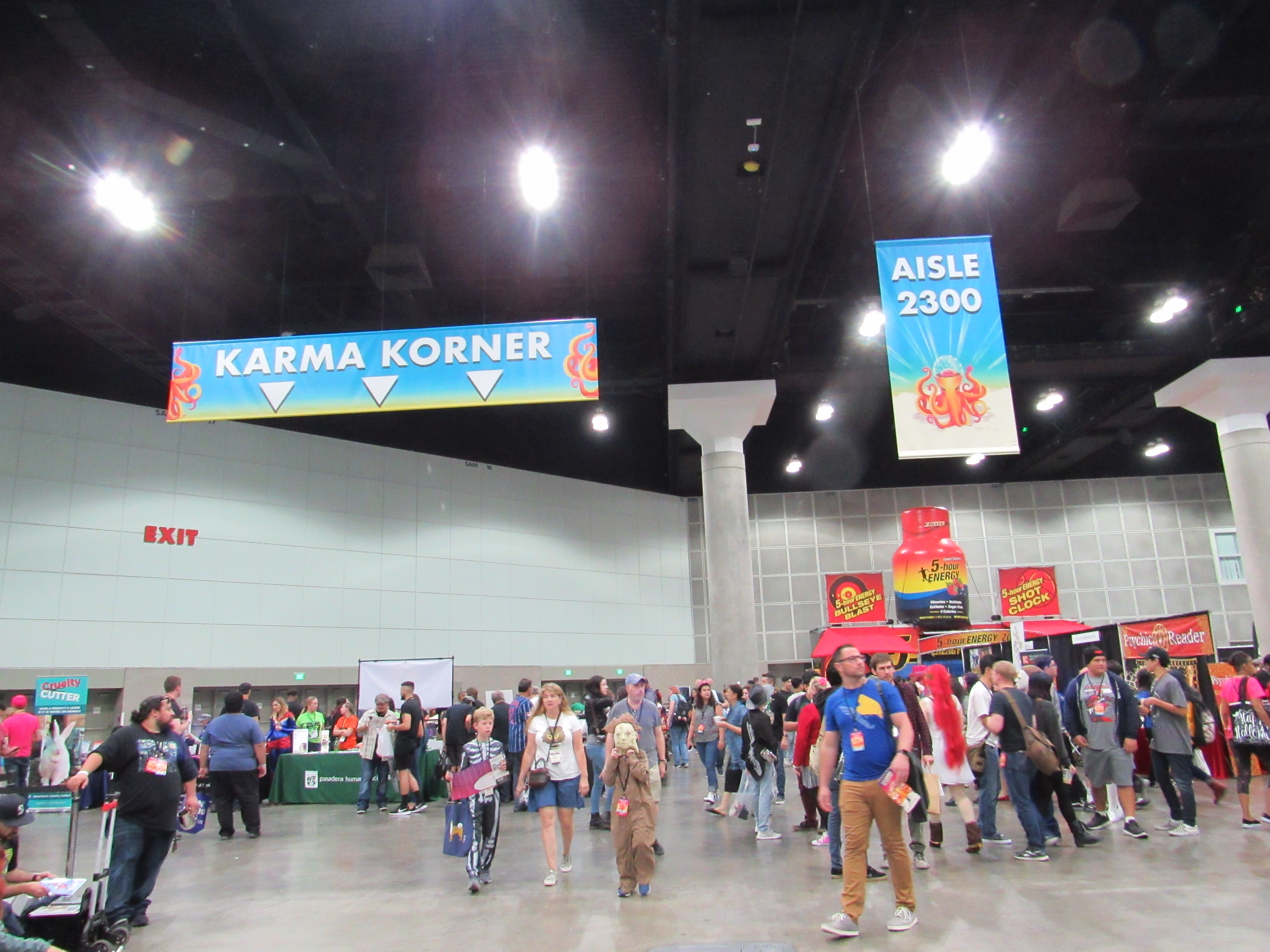 Though a 3-day show, we were only able to go on Saturday. Unfortunately, that meant we missed out on the Tenacious D panel with Jack Black and Kyle Gass on Friday evening. Anyway, on Saturday morning we didn’t take our own advice and ended up not leaving as early as we should have. The show opened at 9:30am, but we didn’t leave our house in Fullerton (Orange County), until around that time. You’d think that would have been enough time, considering the first panel we were interested in didn’t start until 11:00am, and actually we reached the exit for the convention center around 10:15am. However, we spent the next 45 minutes waiting in the long line for parking. We were oddly directed in a long circle around the convention center. If I had known we would be directed that way, we would have taken an earlier exit off of the 10 freeway to avoid that circle.