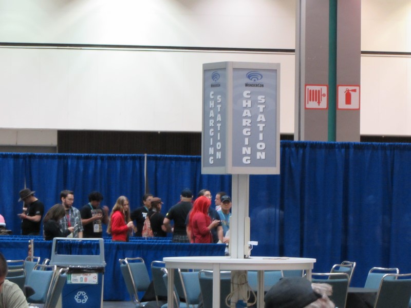 After picking up my Press badge, I just hung out and chatted with @cyberaug for a little while, having nowhere to be at the moment, since the Exhibit Hall wasn’t scheduled to open until noon, and my first panel was at 1pm. There were several tables with chairs set up on the other side of West Hall, as well as a few charging station interspersed in between. There was also a bag check located next to those, which was charging $2 per item, though it wasn’t scheduled to open until noon.