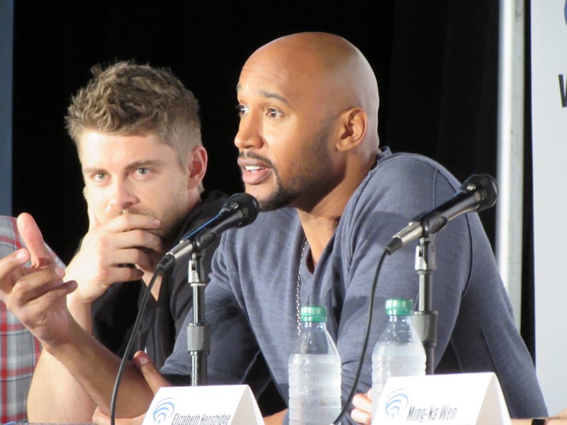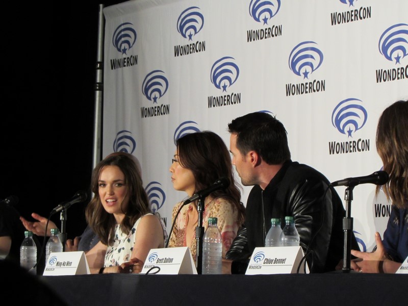Jeph Loeb then asks the cast a few questions–asking Elizabeth what Ian De Caestecker (who plays Fitz) would want to say if he was there, to which she answers, “How much he loves me.” Ming-Na Wen was asked about her men seemingly turning into monsters, to which she responds it is the effect she has on men. Clark Gregg discusses losing his two agents, and he talks about how there is a vanishing point between his character of Coulson and his real self, and how working with Nick Blood and Adrianne Palicki was sad for both Coulson and Gregg himself. Brett Dalton also talks about how his character is constantly changing, from a good agent, to HYDRA, to being dead, now being possessed by this Inhuman.