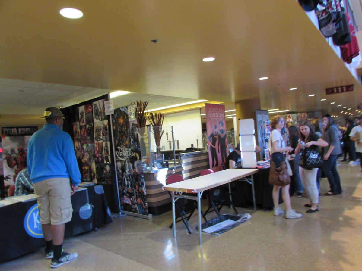 After the Stan Lee panel, Violet and I walked around the “show floor” some. Unfortunately, the “show floor” was (in my opinion) poorly planned. Basically, in the aisles around the outside of the arena seating area, small booths were set up. This area is where you would normally buy concessions for a hockey game, which for those who have been inside that kind of stadium, is not a lot of room. Trying to make our way around this area was pretty difficult. There was a lot of traffic, and some lines were basically cutting off traffic. As a vendor, I imagine it was frustrating at times, because there was literally no way for people to get through to them.