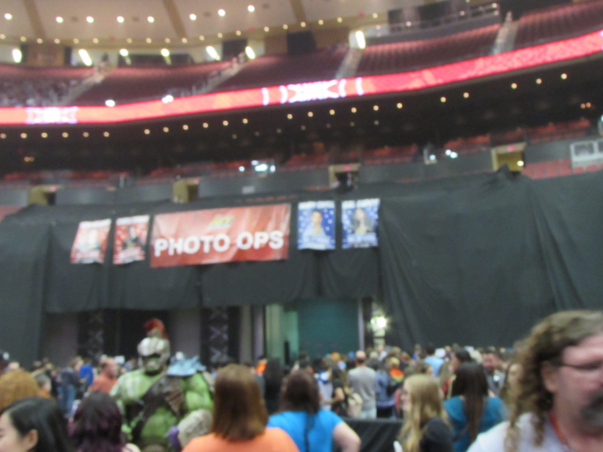 After our visit with Tony, Violet and I decided to get some food at Saddle Ranch, which was right outside the arena. After we finished up our food, we decided to go back into the con to walk around the booths that were set up on the lower level on the arena floor, behind the Main Stage. However, we quickly gave up, because it was too congested with the overflow of people in line for photo ops, to the point where it was impossible to navigate anywhere.
