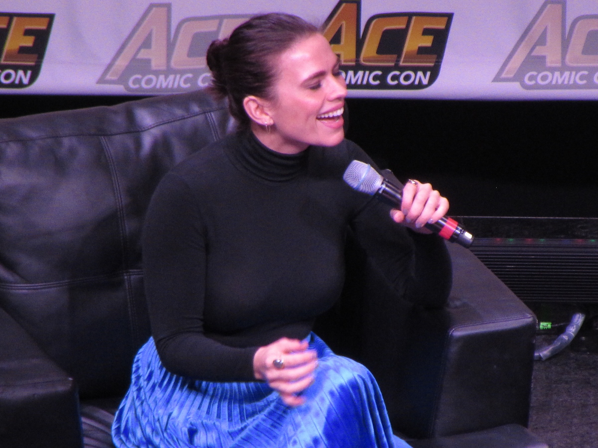 When asked about the empowerment that she gave to women, Hayley said that she didn’t know about it until she started going to conventions. She was especially moved by women in the military that she met at conventions, as well as women who were having trouble at work because of their gender. Hayley talked about how she hadn’t set out to make Peggy “this amazing woman.” She just had been an independent woman herself, and her parents had encouraged her to challenge her limitations. Hayley revealed that she hadn’t come from privilege, and had grown up in social housing in inner city London in a single parent family. She spoke about the struggles of paving her own way, and the hunger that led her to do so.
