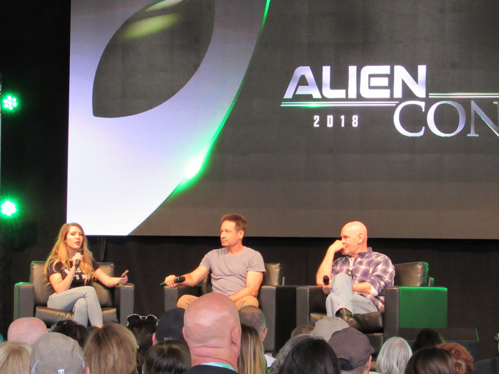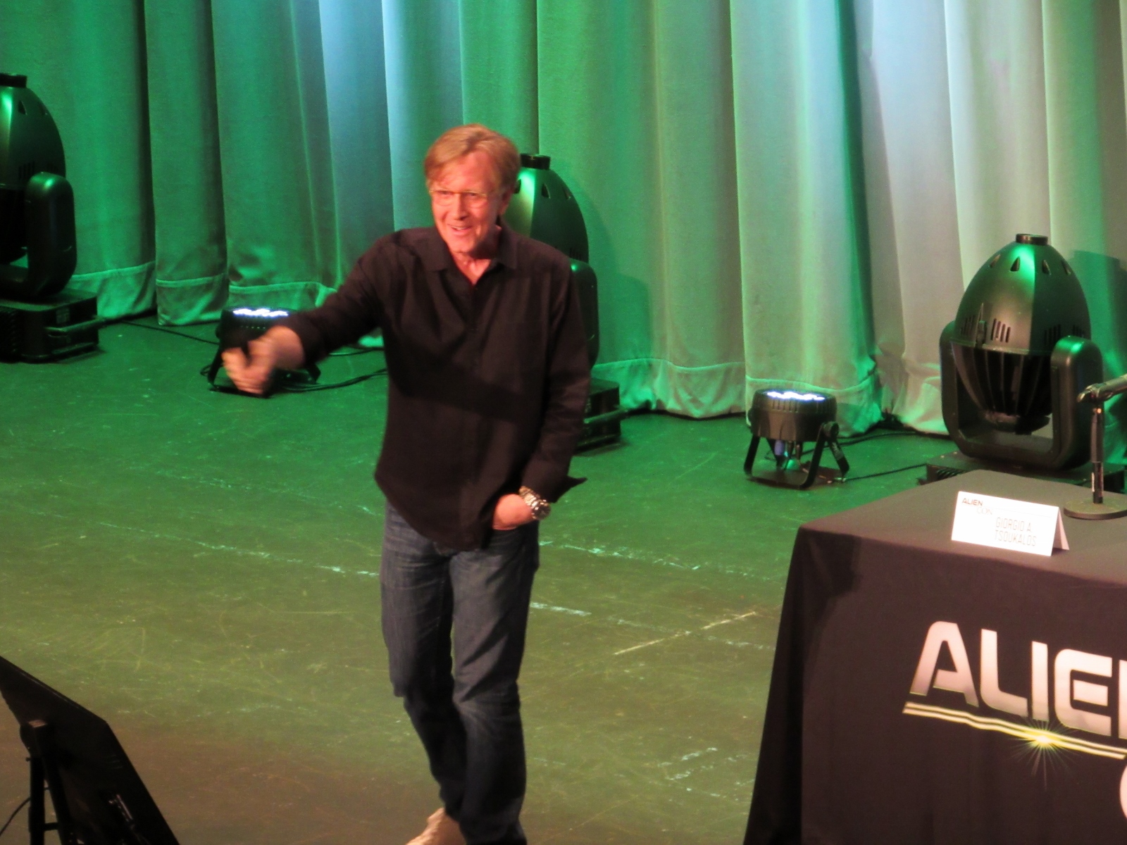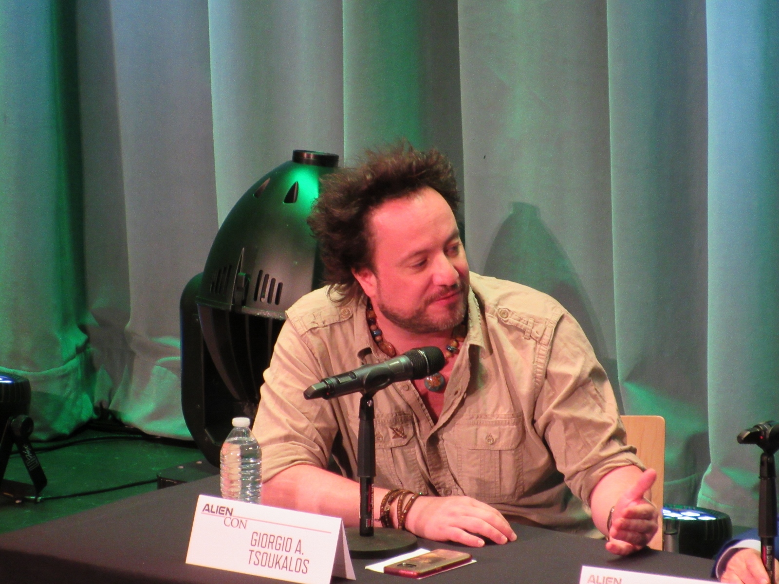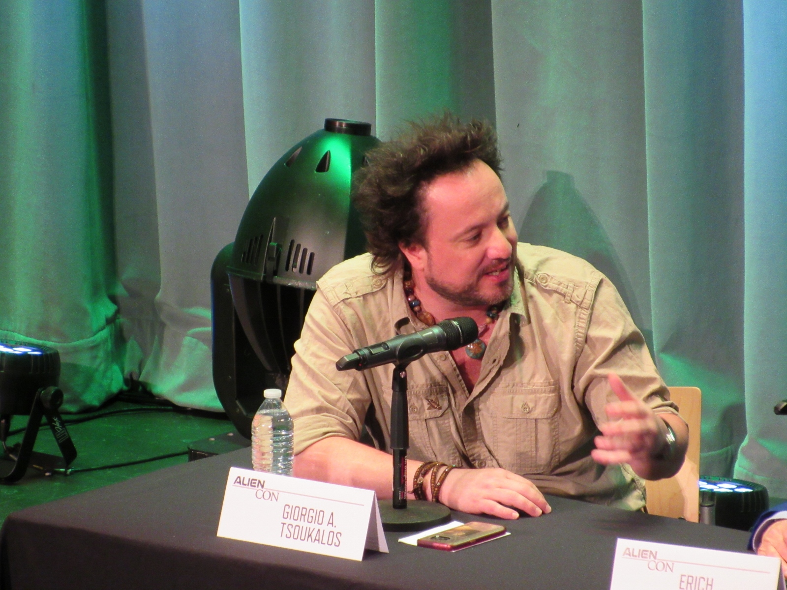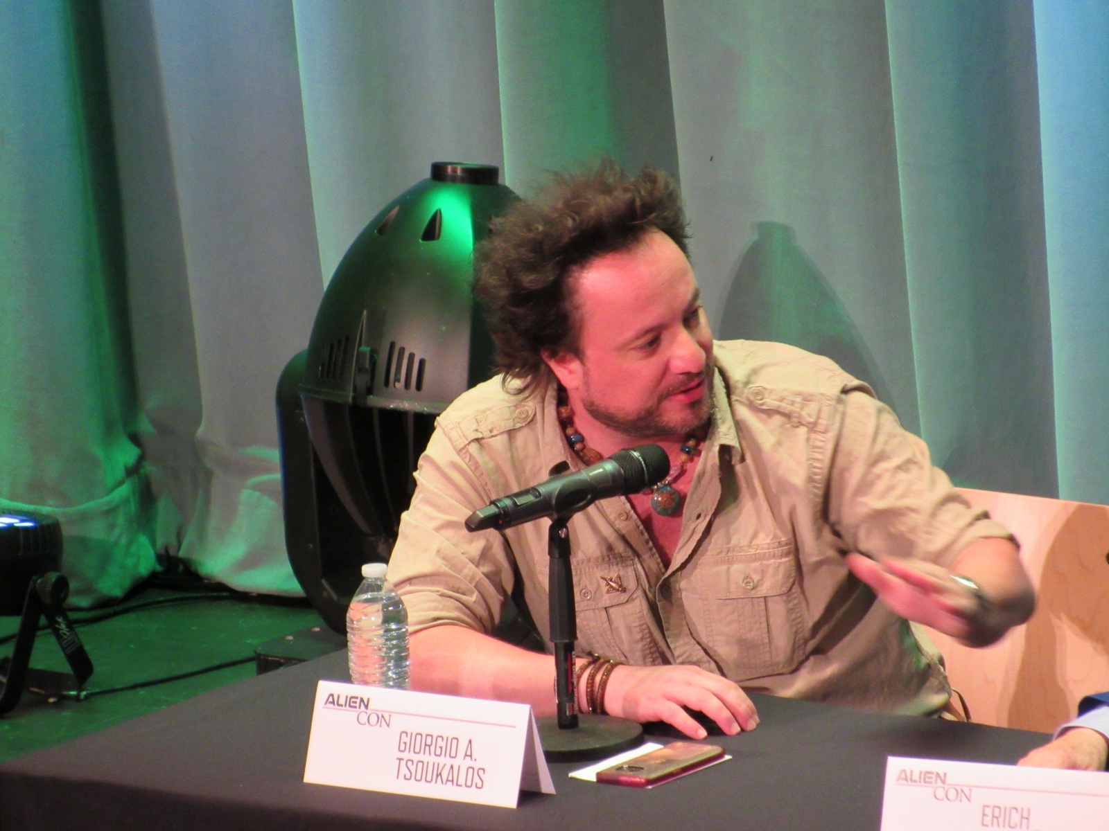 The panel was titled Ancient Astronaut Theory with Erich von Däniken and Giorgio A. Tsoukalos, and it was packed. Robert Clotworthy, narrator of Ancient Aliens, came out on stage first and did an intro before Giorgio A. Tsoukalos came out on stage and did his own introduction, then Erich von Däniken came on stage.