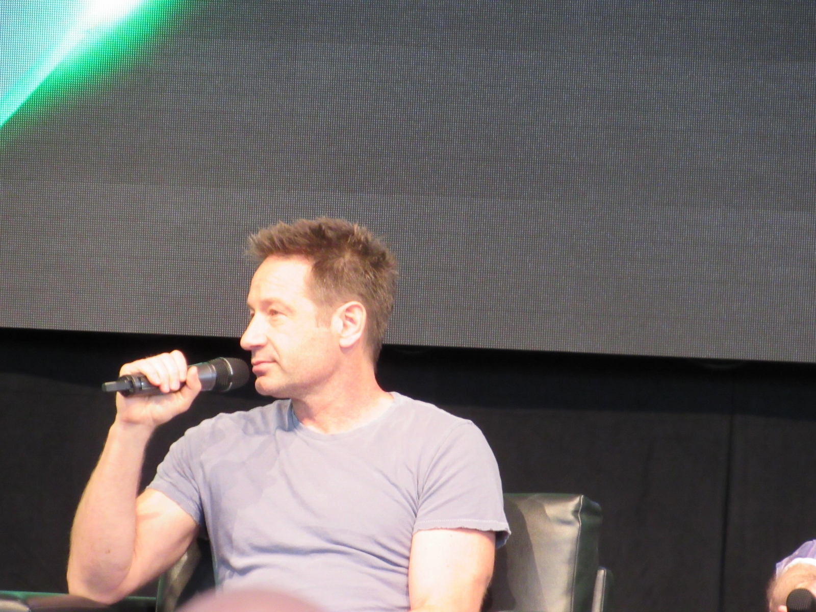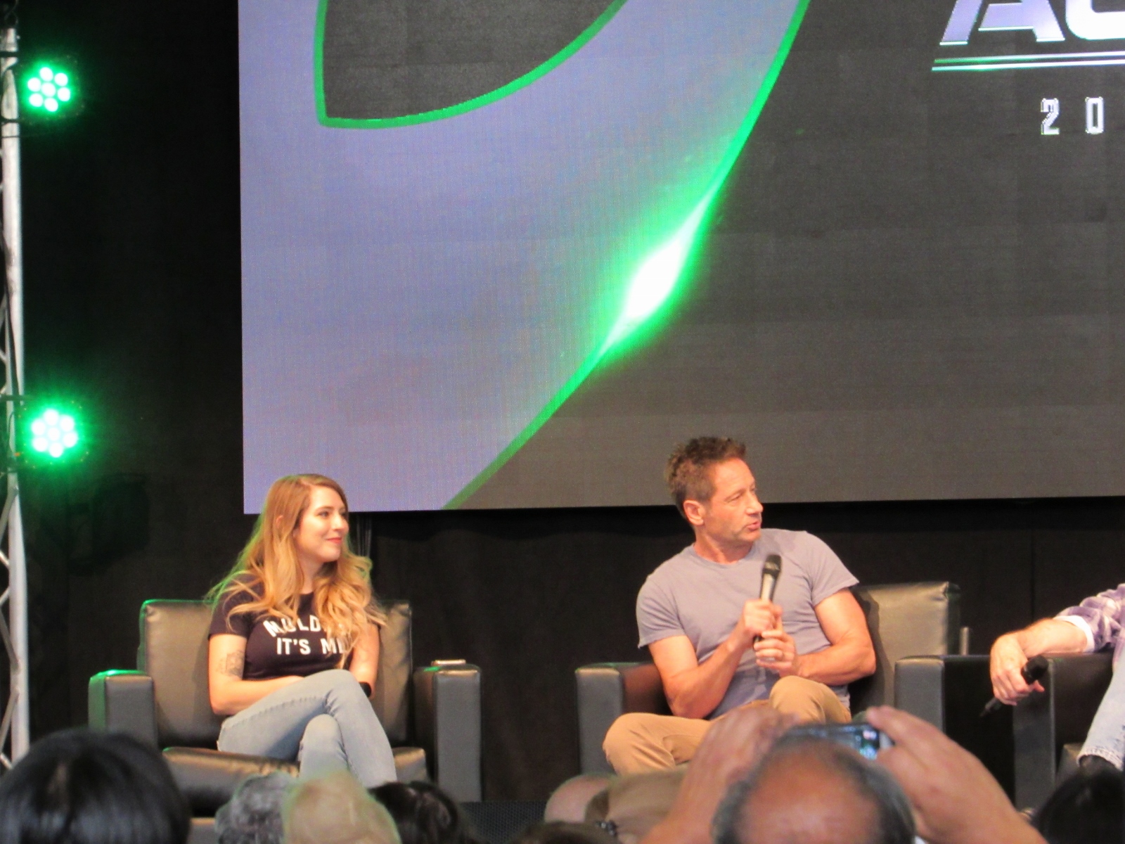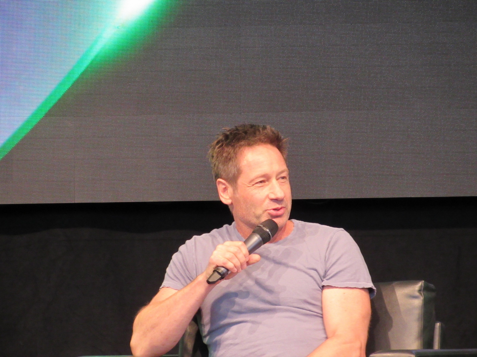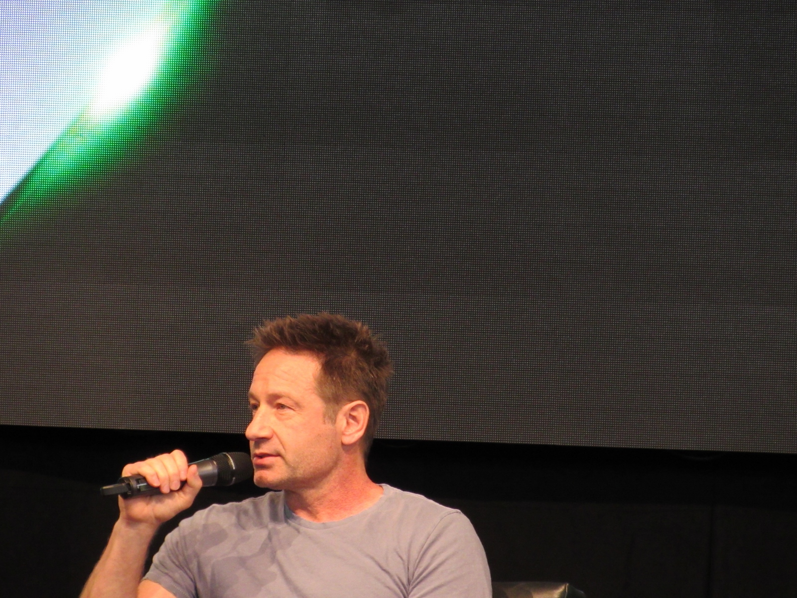 The audience was then given an opportunity to ask questions at one of two microphones set up in the aisles of the floor seating. Like during the X-Files panel, at this announcement, a good number of people got up out of their seats. Although, I’m not sure if most of them left or if they went to get in line to ask a question! Because the line at each microphone was pretty long.