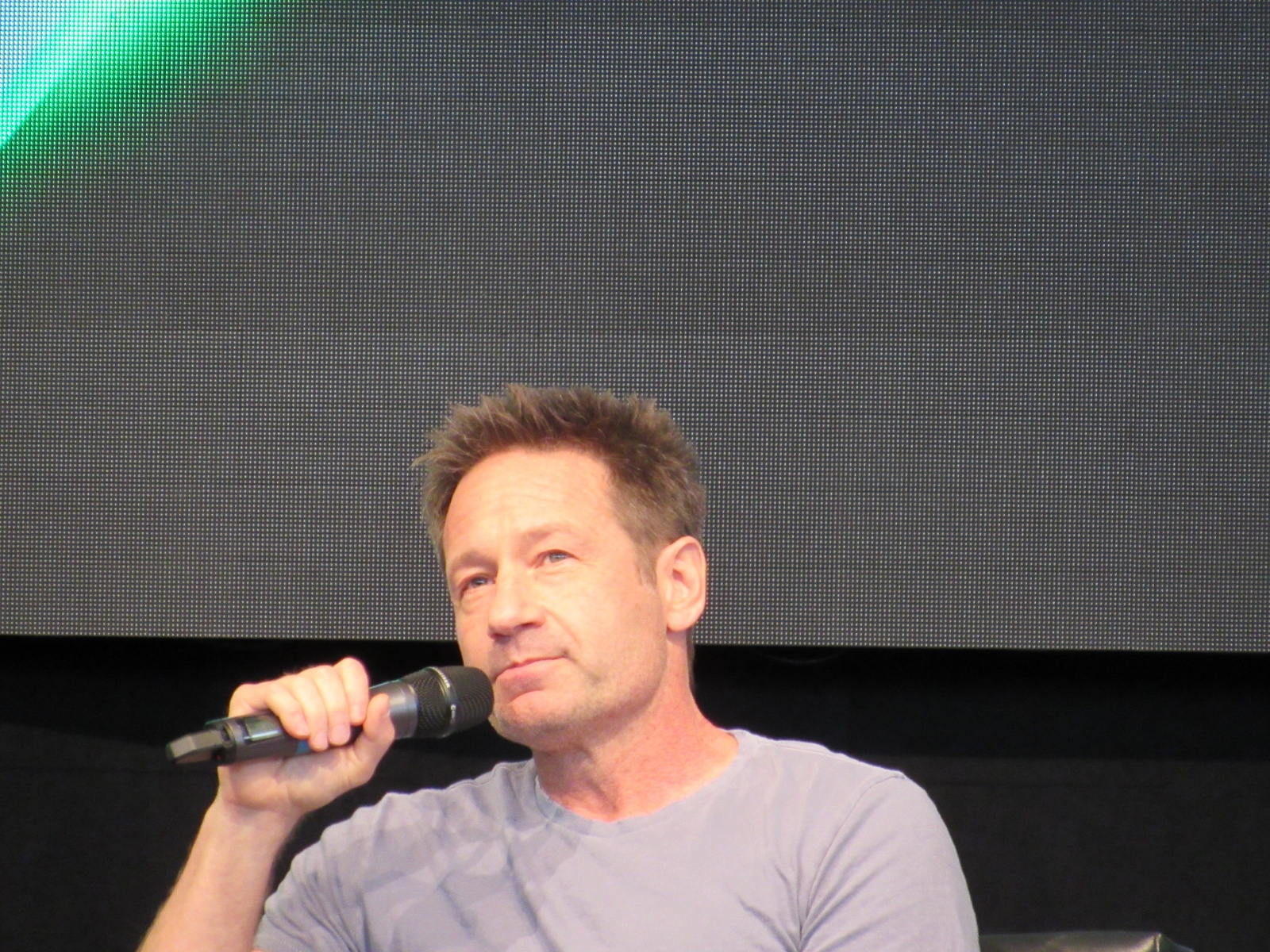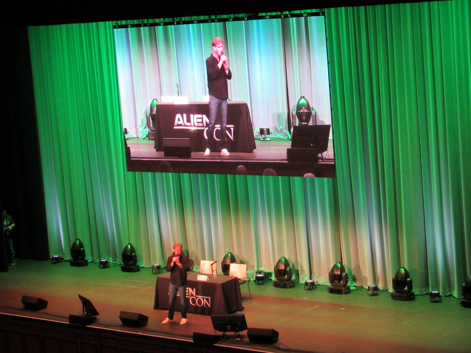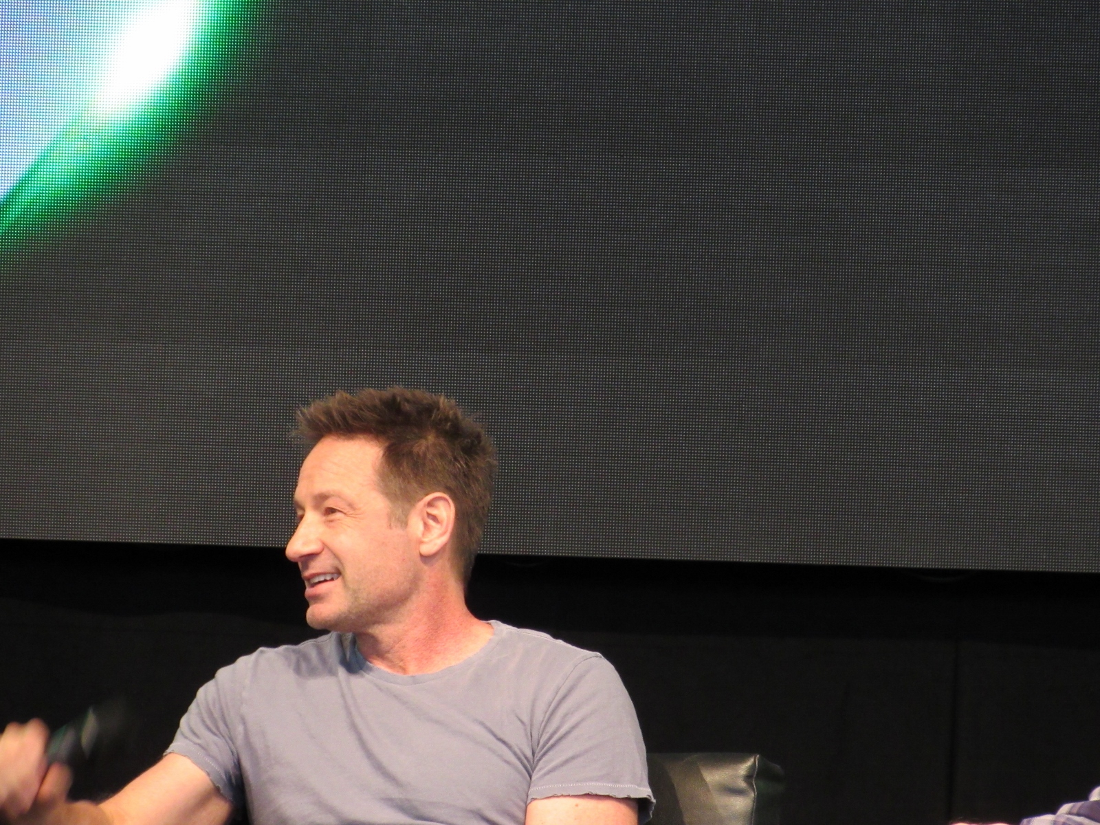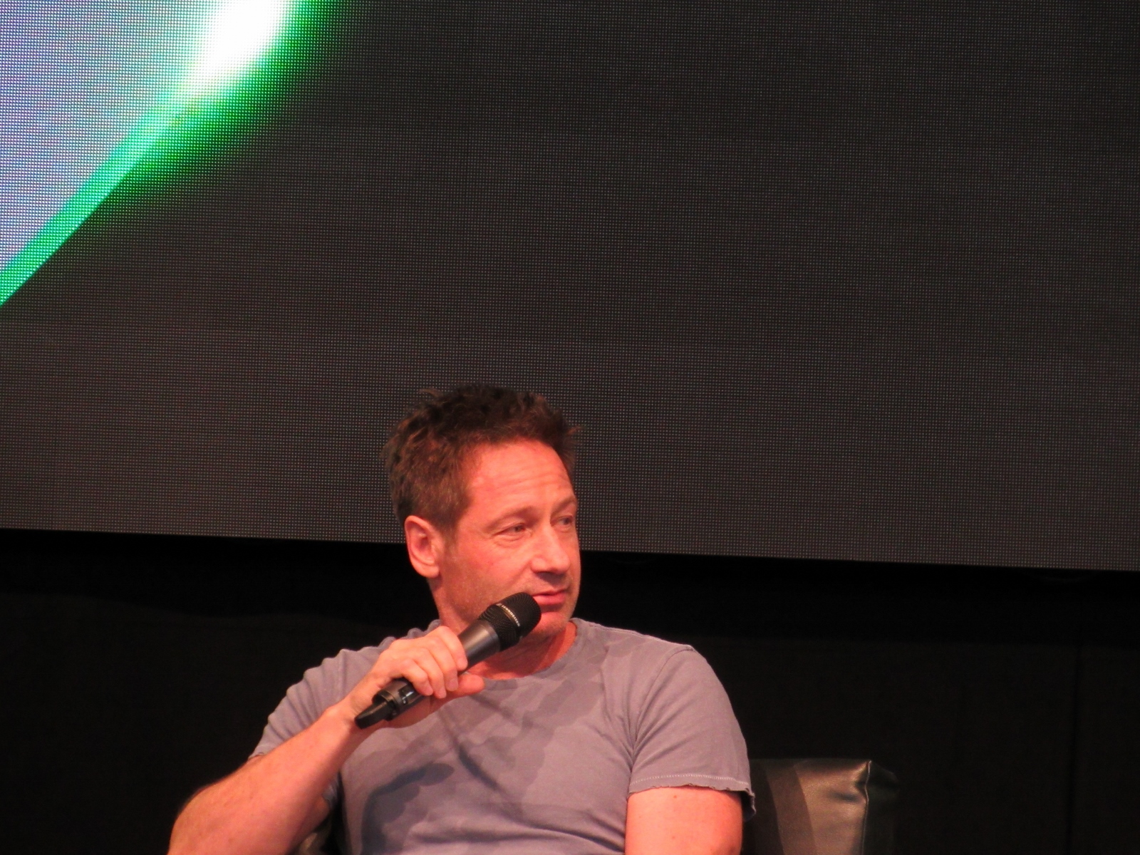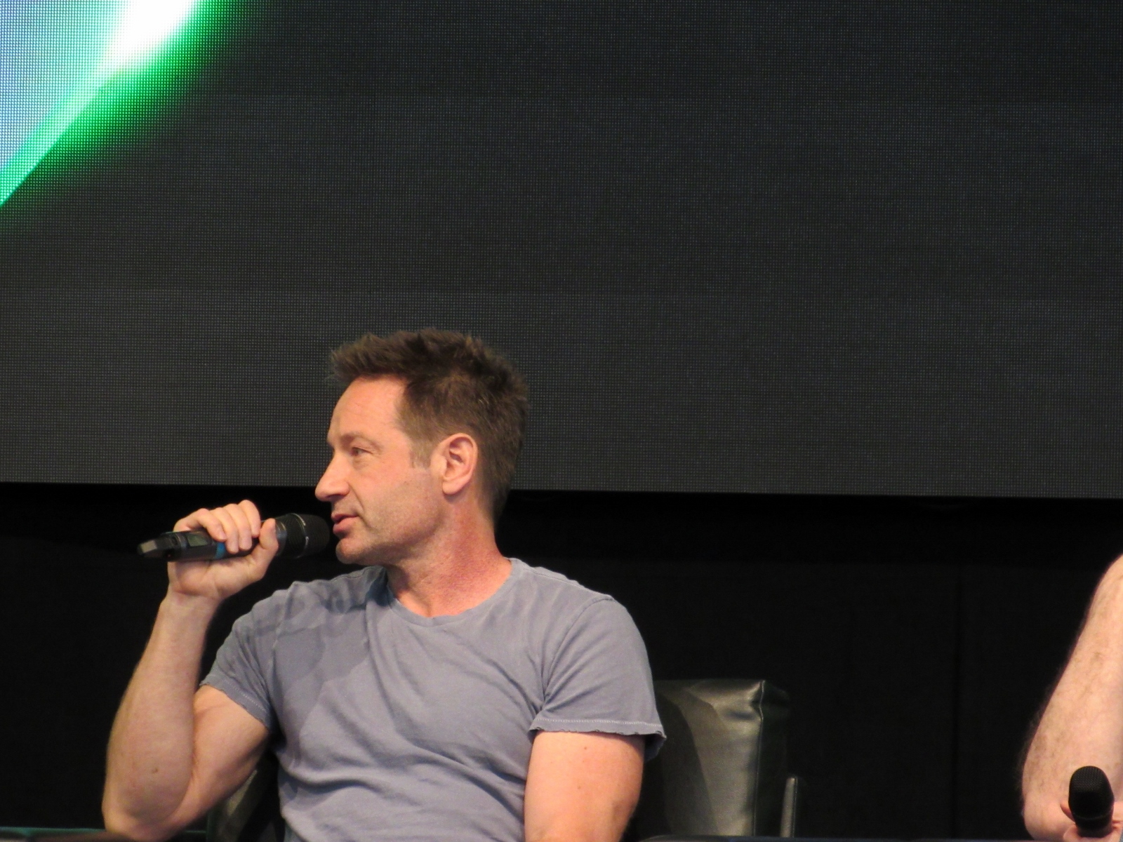 The audience was then given an opportunity to ask questions at one of two microphones set up in the aisles of the floor seating. Like during the X-Files panel, at this announcement, a good number of people got up out of their seats. Although, I’m not sure if most of them left or if they went to get in line to ask a question! Because the line at each microphone was pretty long.