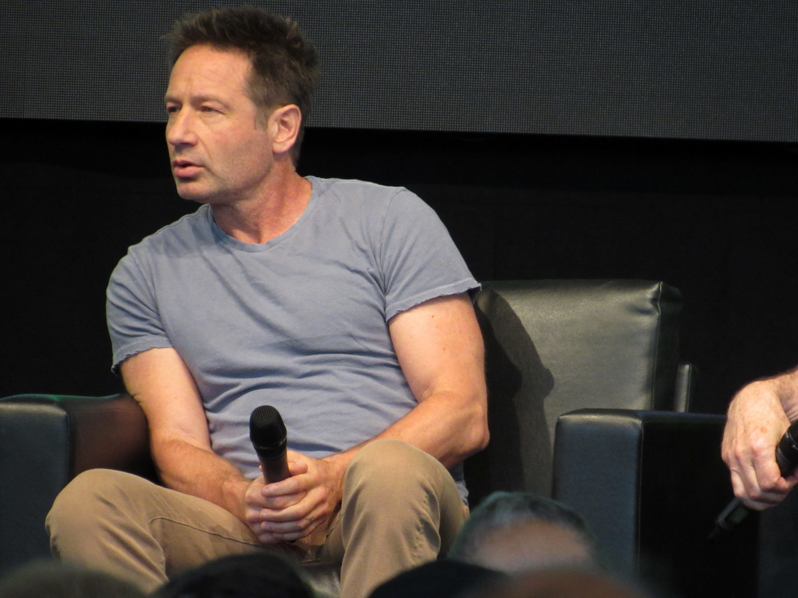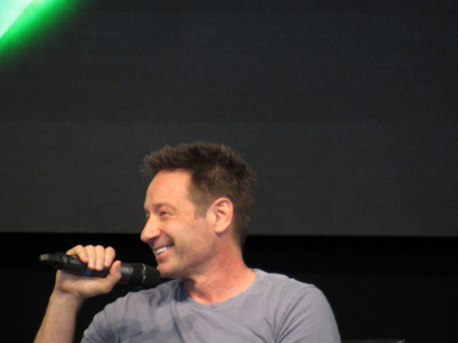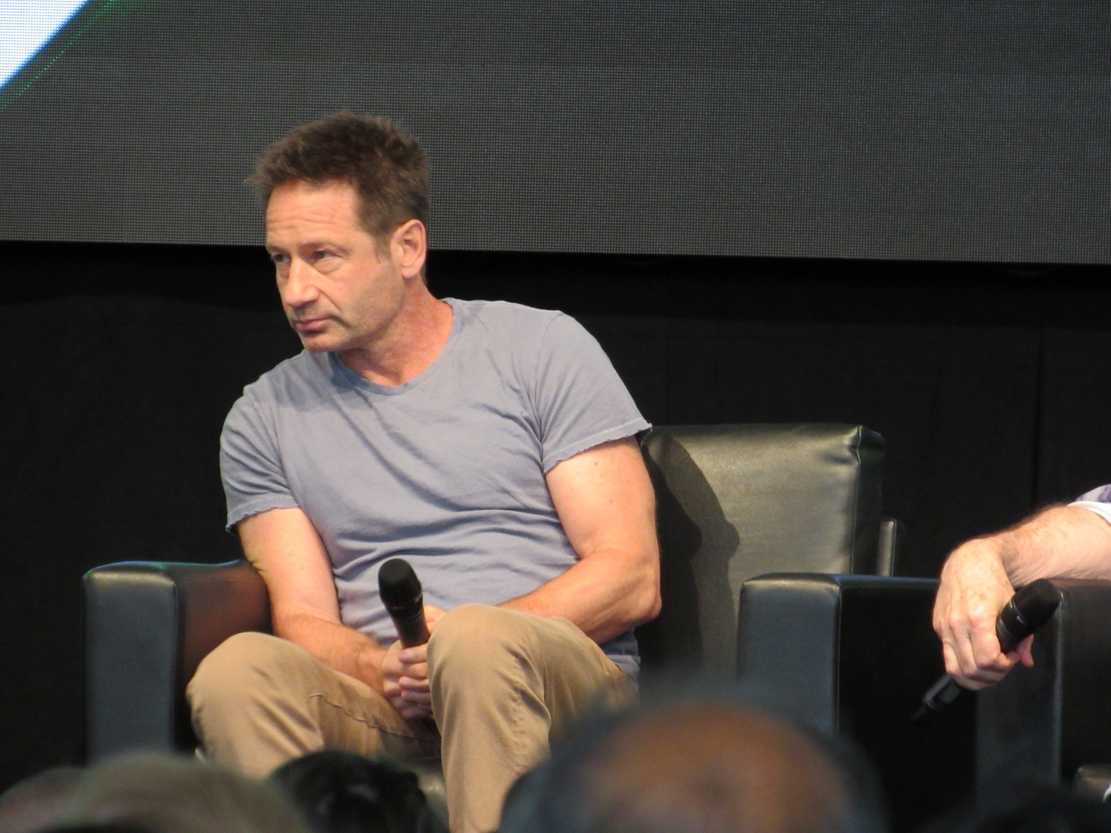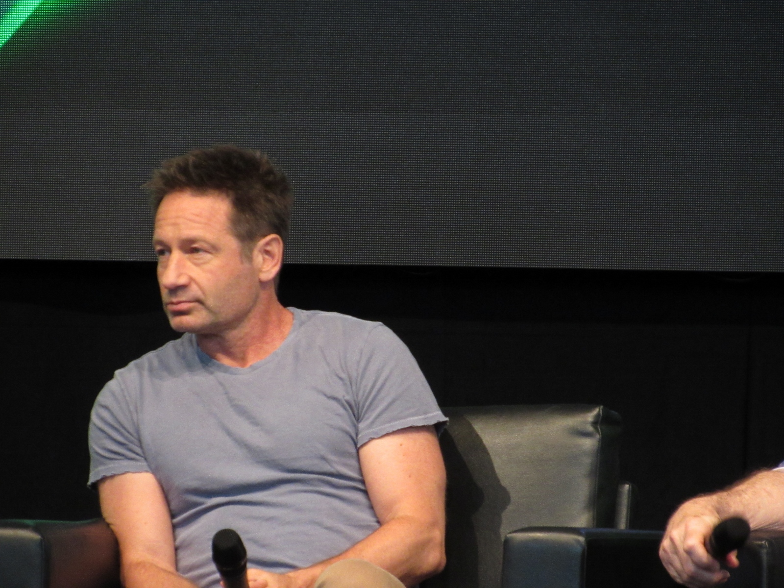 The audience was then given an opportunity to ask questions at one of two microphones set up in the aisles of the floor seating. Like during the X-Files panel, at this announcement, a good number of people got up out of their seats. Although, I’m not sure if most of them left or if they went to get in line to ask a question! Because the line at each microphone was pretty long.