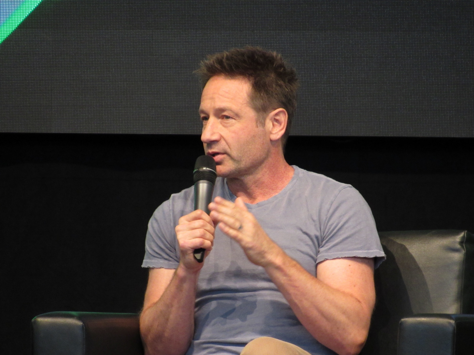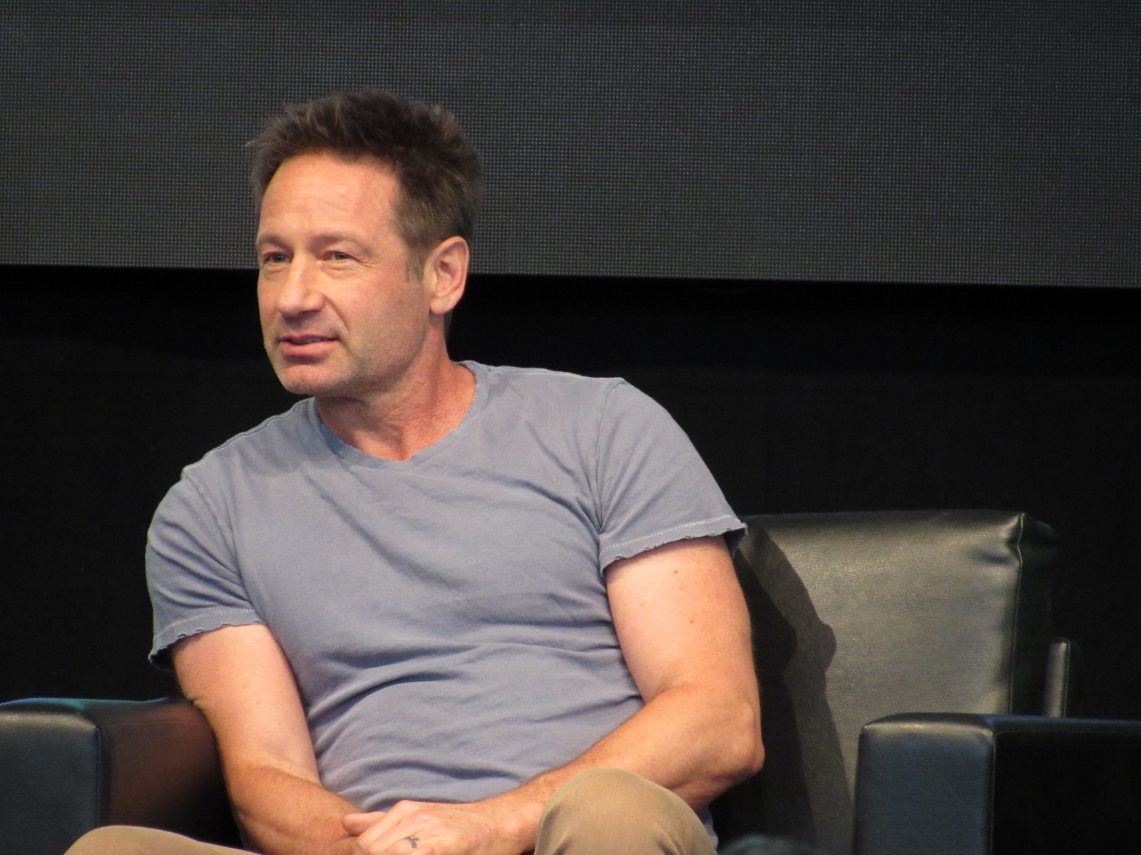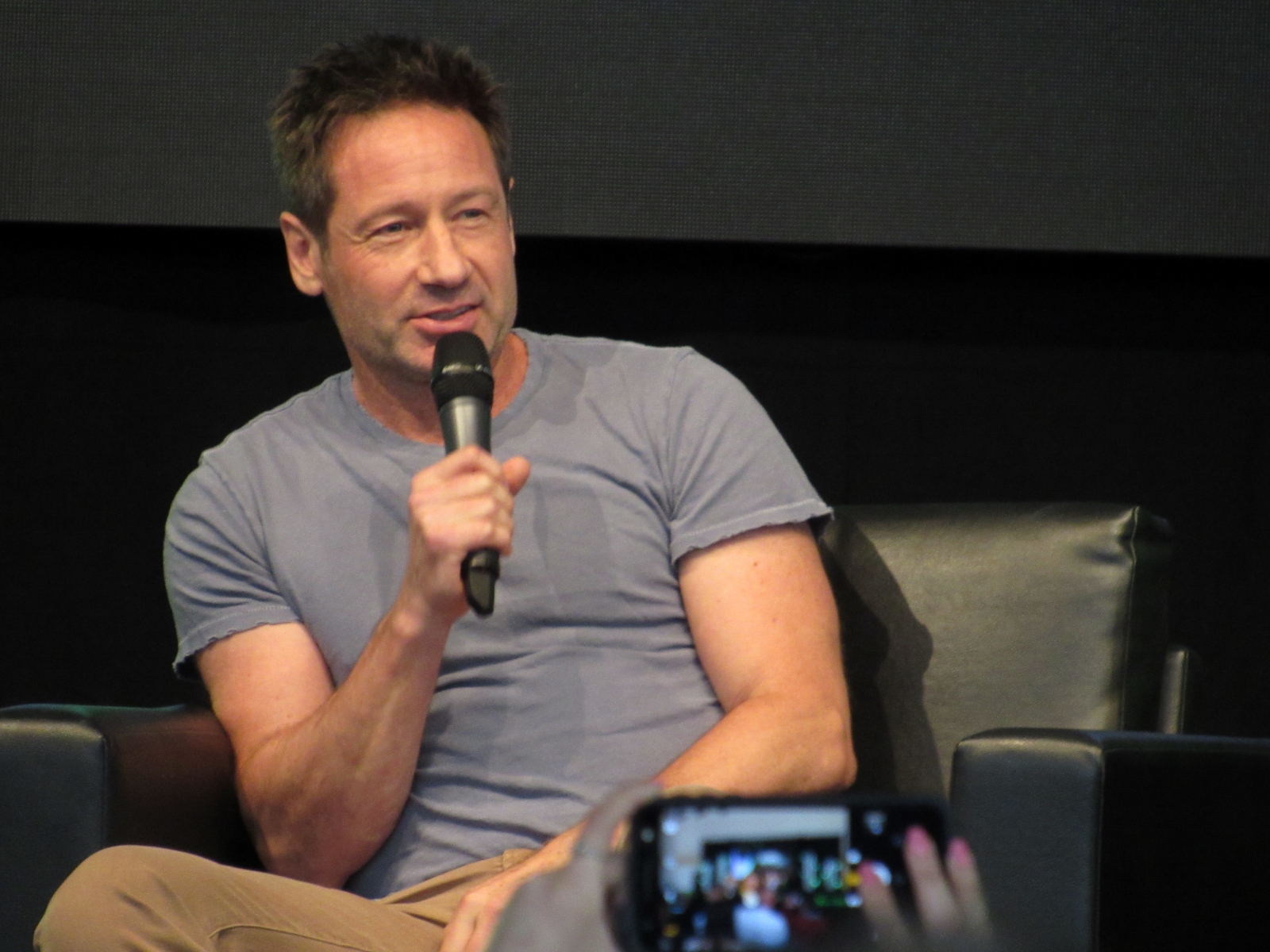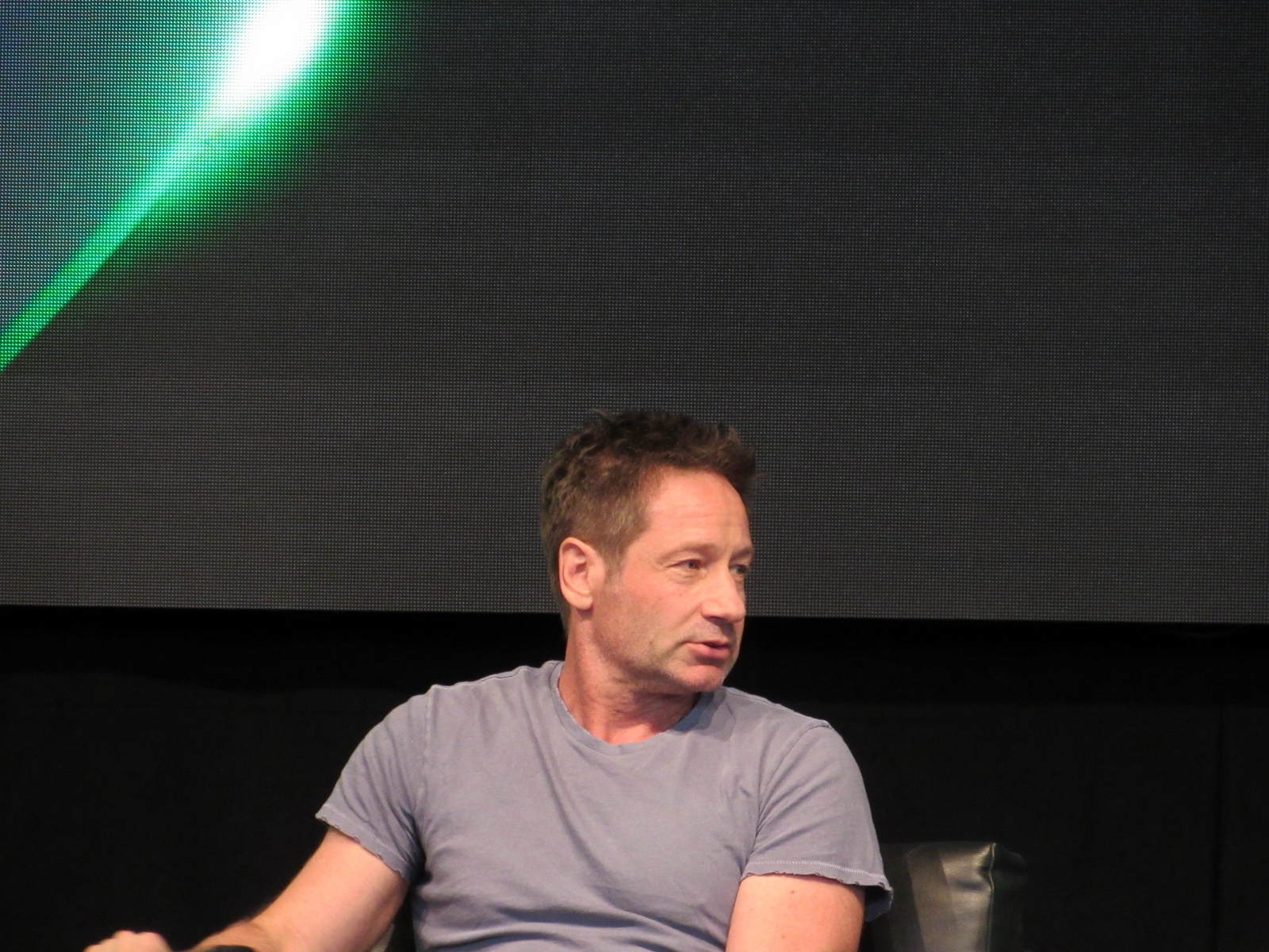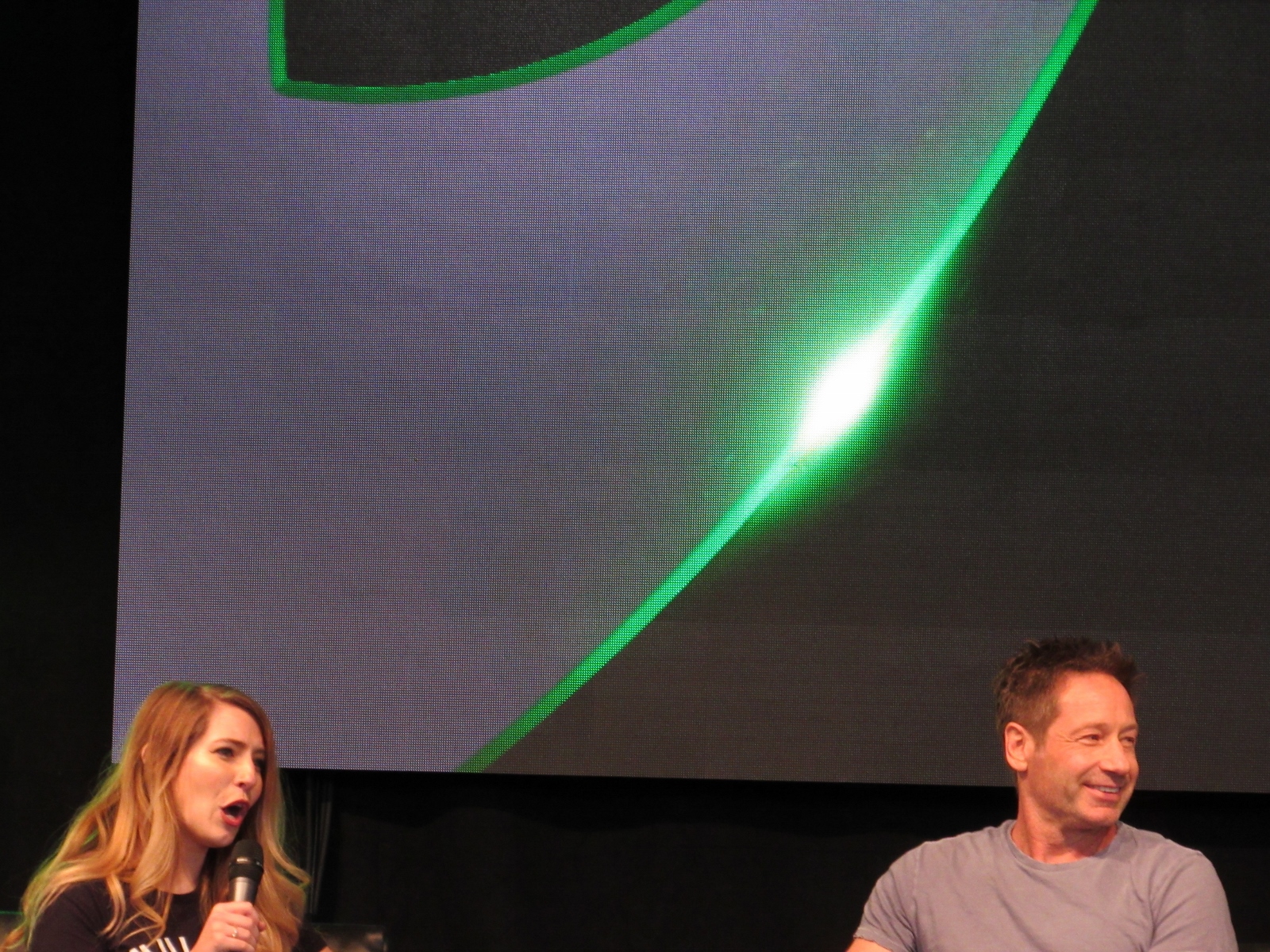 One audience question was about the influence of technology on the show over the years. Duchovny spoke about cell phones, and how they started becoming more commonplace by the third or fourth season, which was “lifesaving” for him and Anderson, as it allowed the two of them to be in two different places, which he said is essential for investigative type shows.