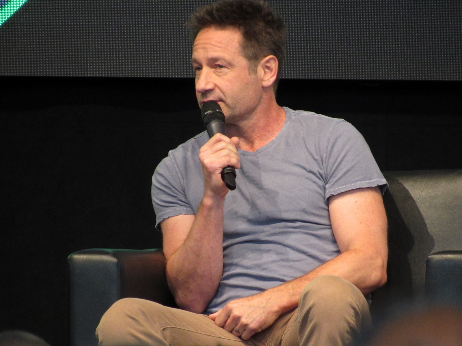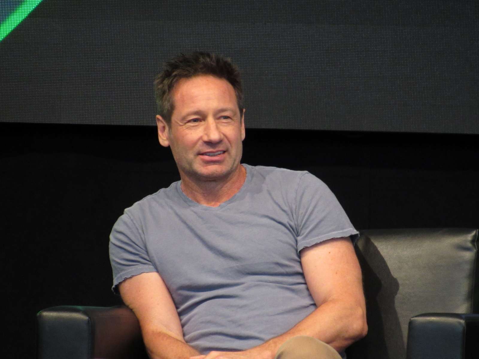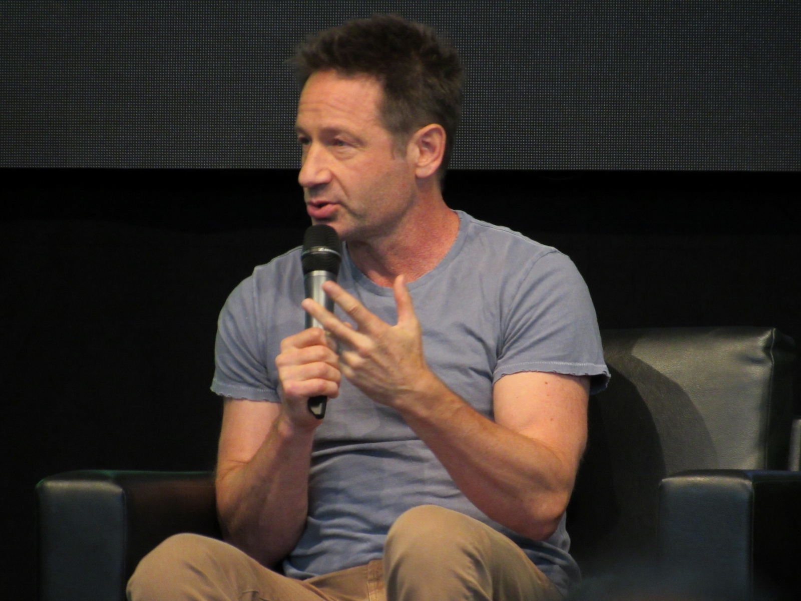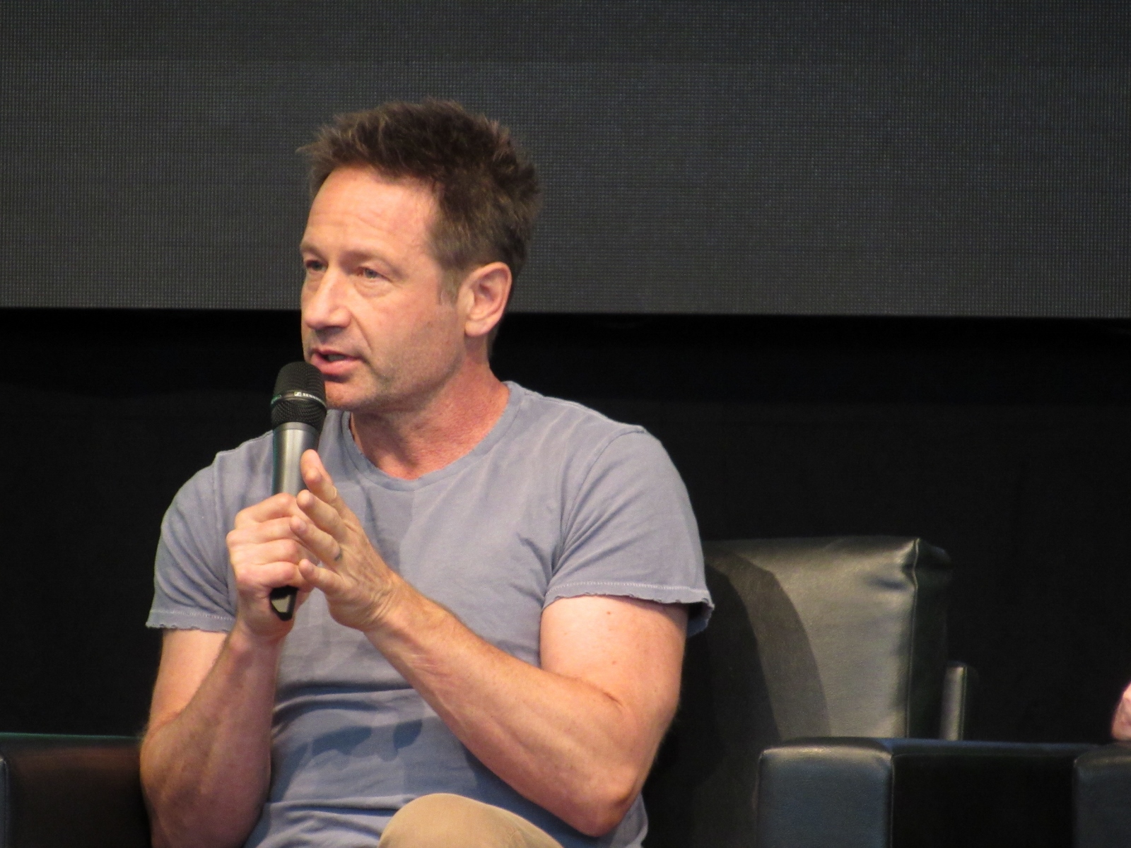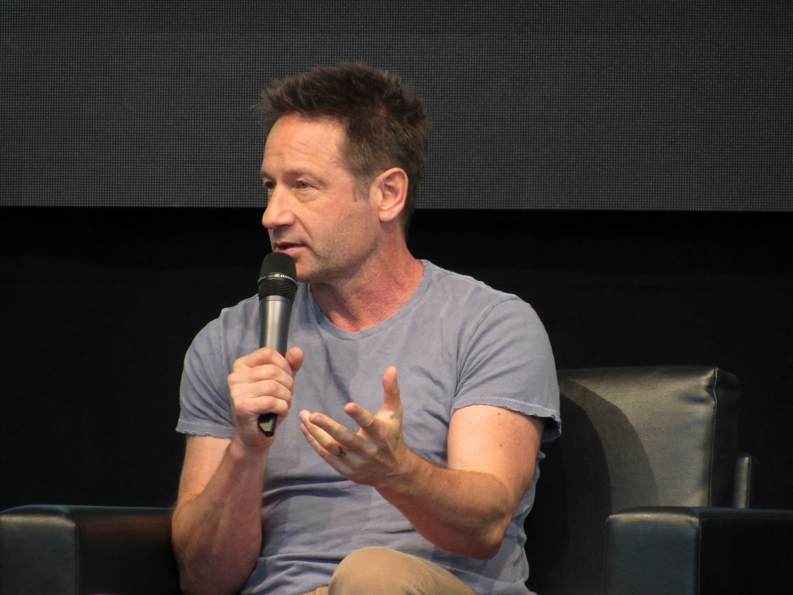 One audience question was about the influence of technology on the show over the years. Duchovny spoke about cell phones, and how they started becoming more commonplace by the third or fourth season, which was “lifesaving” for him and Anderson, as it allowed the two of them to be in two different places, which he said is essential for investigative type shows.