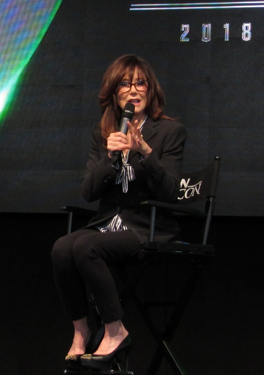 It was then opened up for audience questions. At this point, something really strange happened that I had not witnessed before at another convention — and as you know, we got to a lot of conventions! At least 1/4 of the audience or so just got up and left! Pileggi even commented, “She said ask questions, not leave.” Another 1/4 of the audience took this as a cue to just start walking around, not even getting in line to ask a question, many going up closer to the stage to take selfies! It seemed not only strange, but rude, since the panel was still in session. It was very distracting, as it never really completely settled down throughout the audience Q&A.