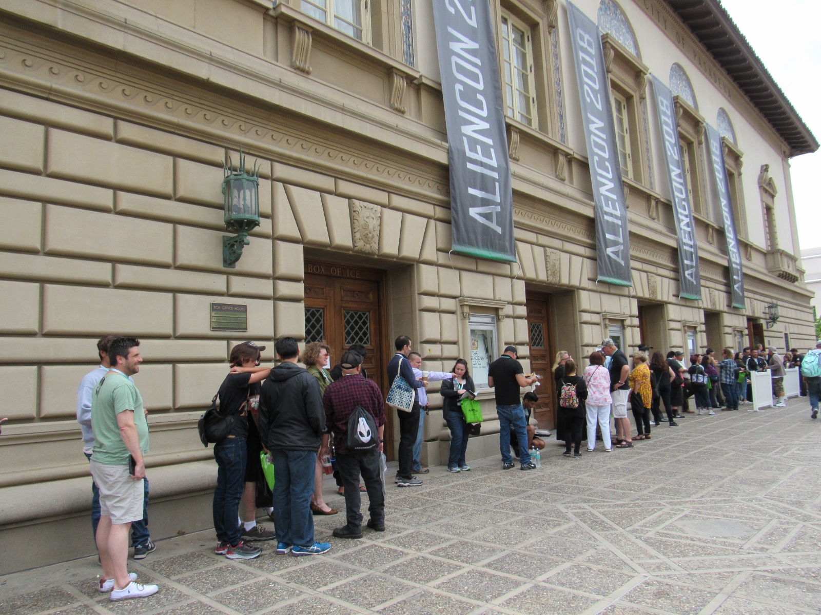 So we headed up to the Pasadena Convention Center on the morning of Sunday, June 17. This was our first time visiting this venue, so we weren’t sure how parking worked. The AlienCon website suggested using ParkWhiz, so we did, and found a spot just a block away from the con for $12. When we arrived, there was a sign at the lot saying that it was $20, but since we had pre-paid, we just showed our pass and saved $8!