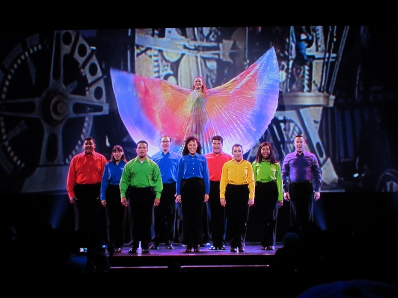 We then had some entertainment of people singing and dancing to a medley of songs, including Wishes, the Golden Horseshoe song, Great Big Beautiful Tomorrow (while images of the ride showed on screen), and Mad T Party.
