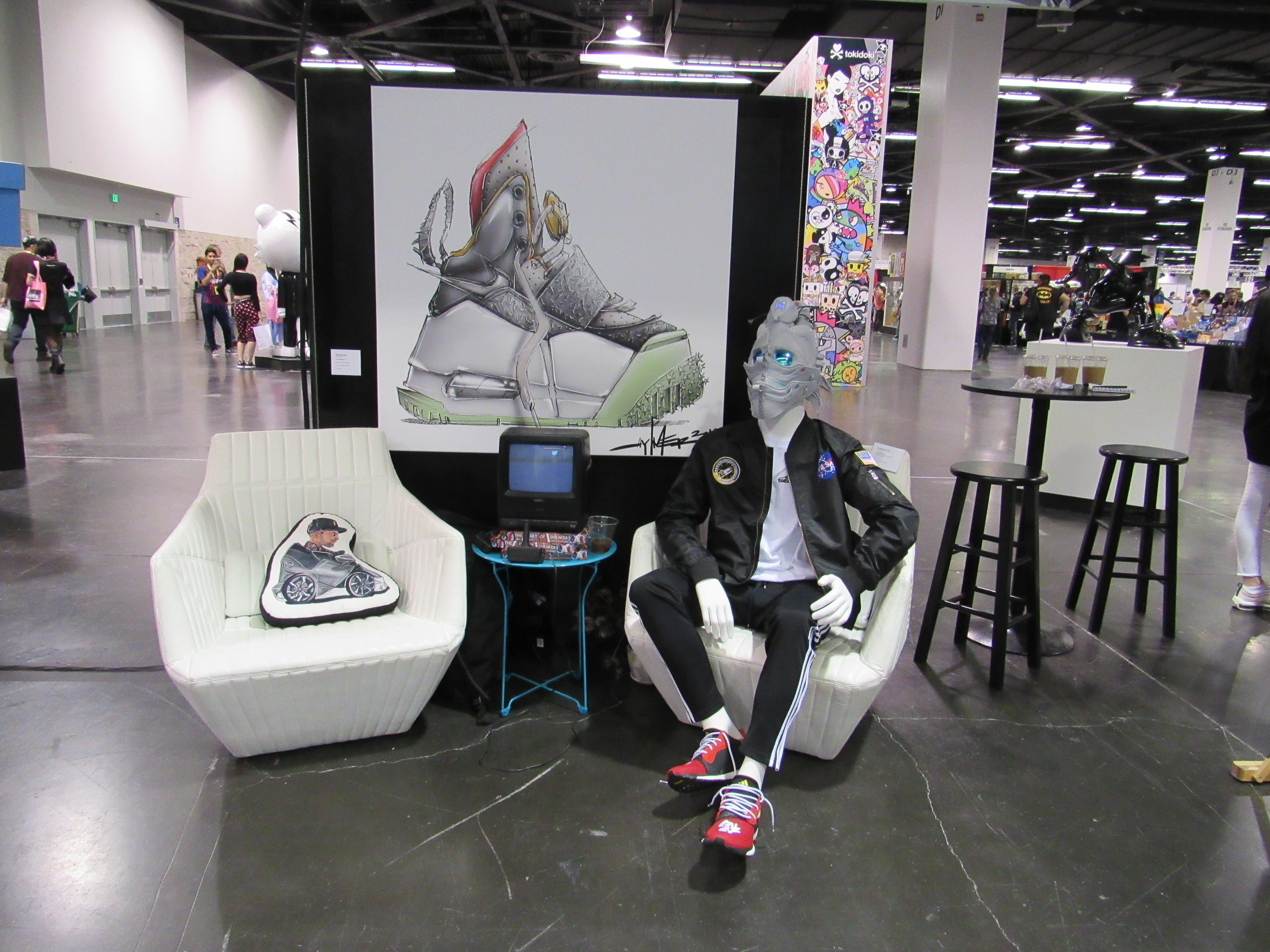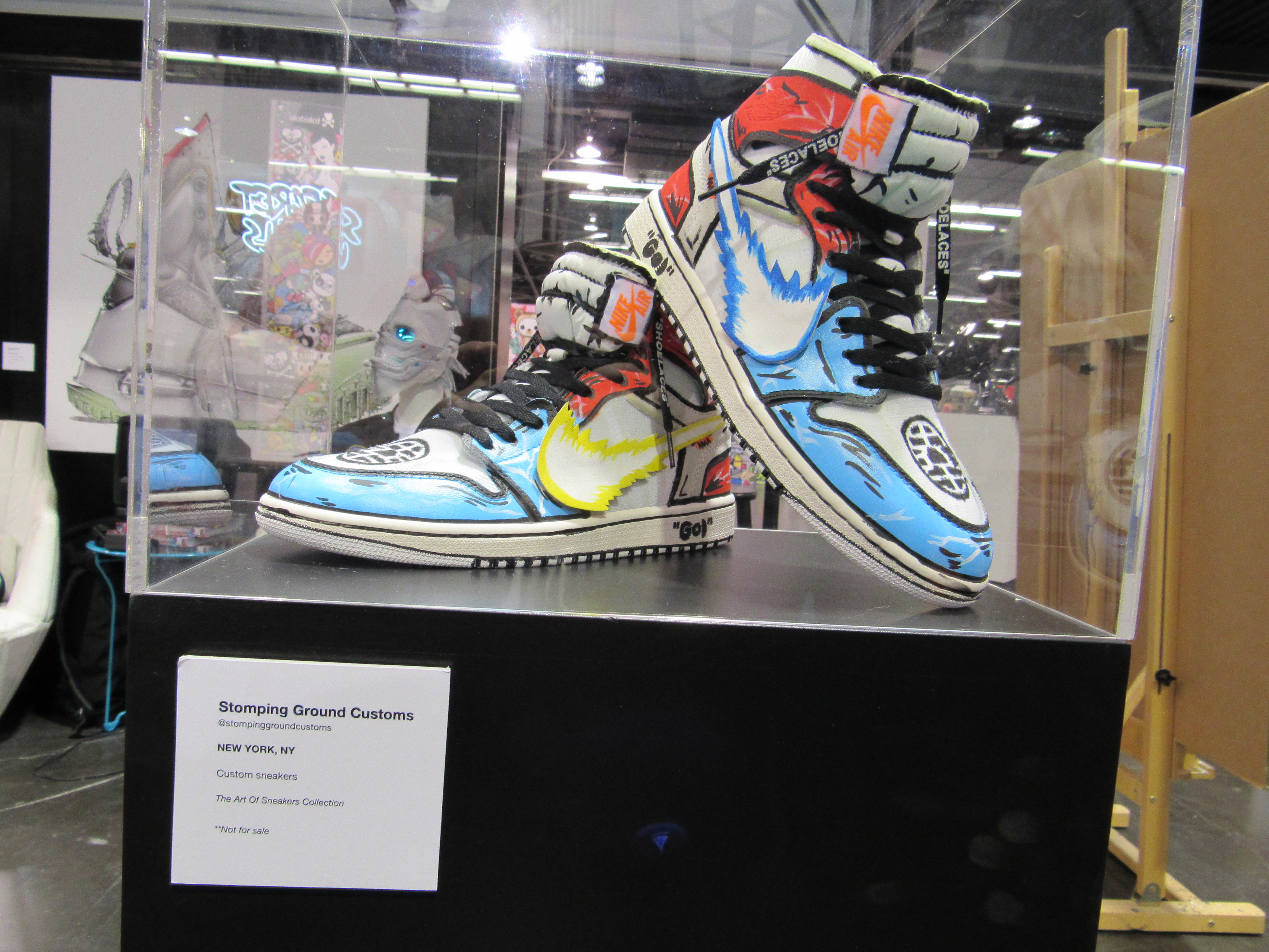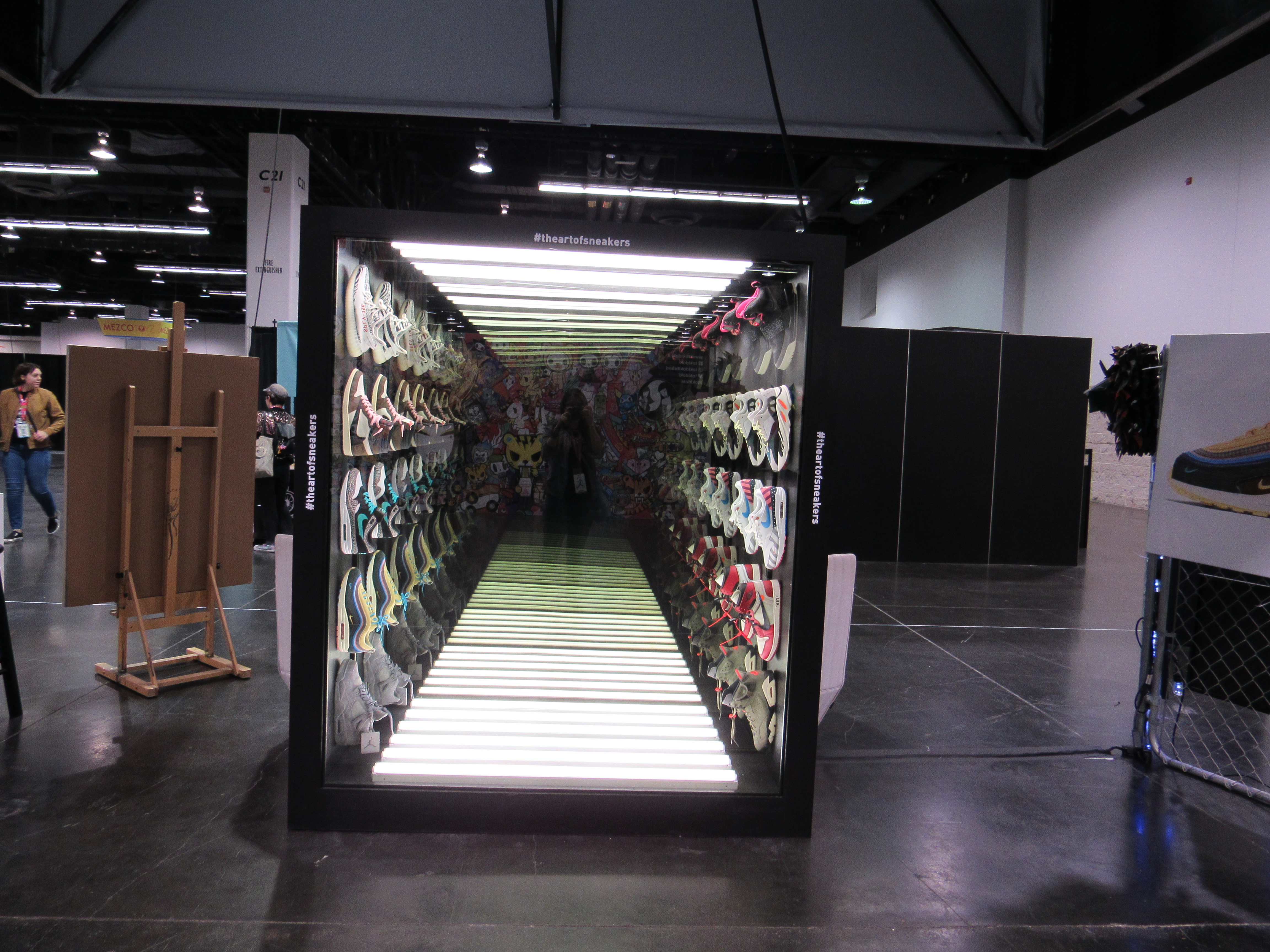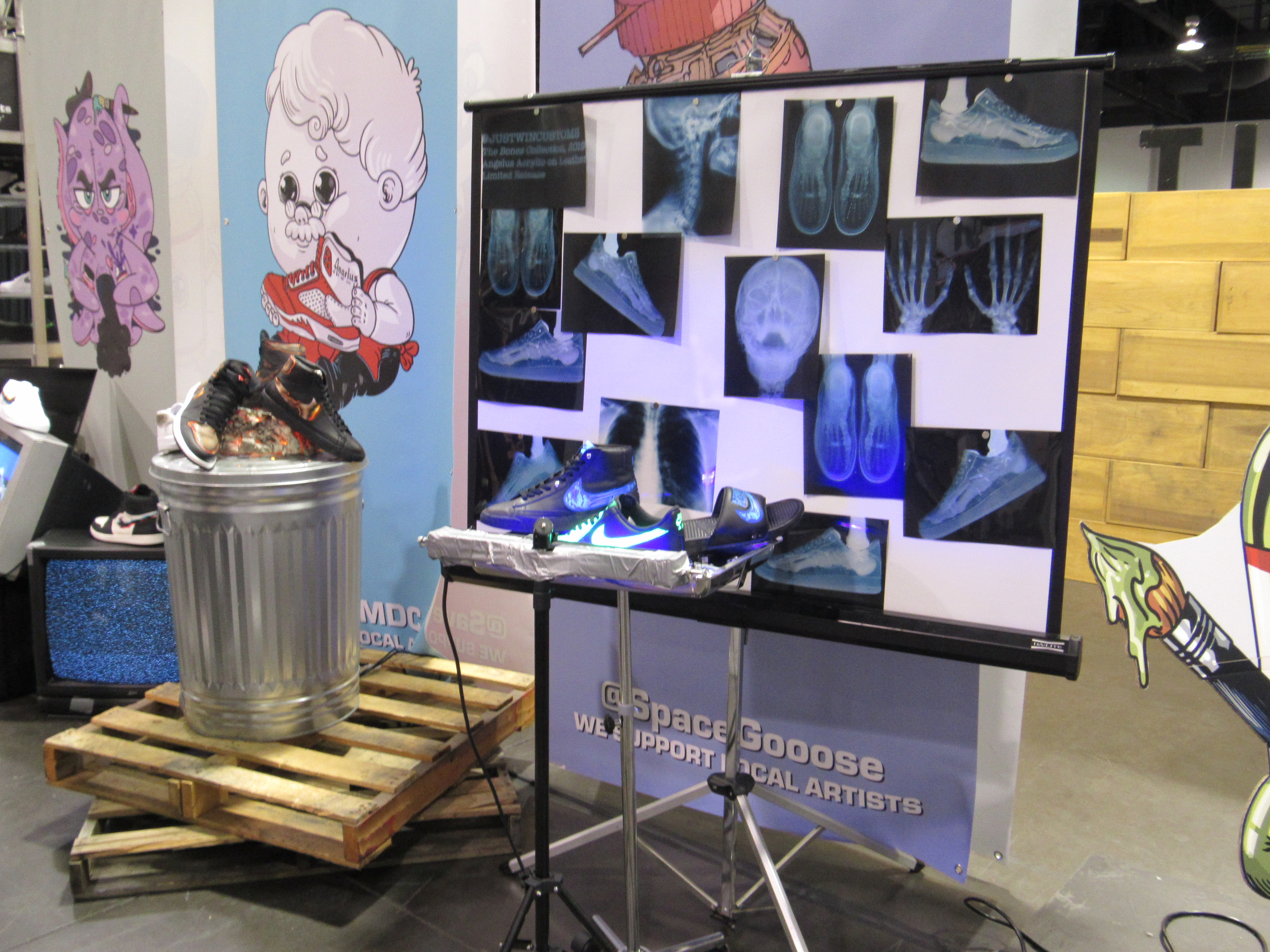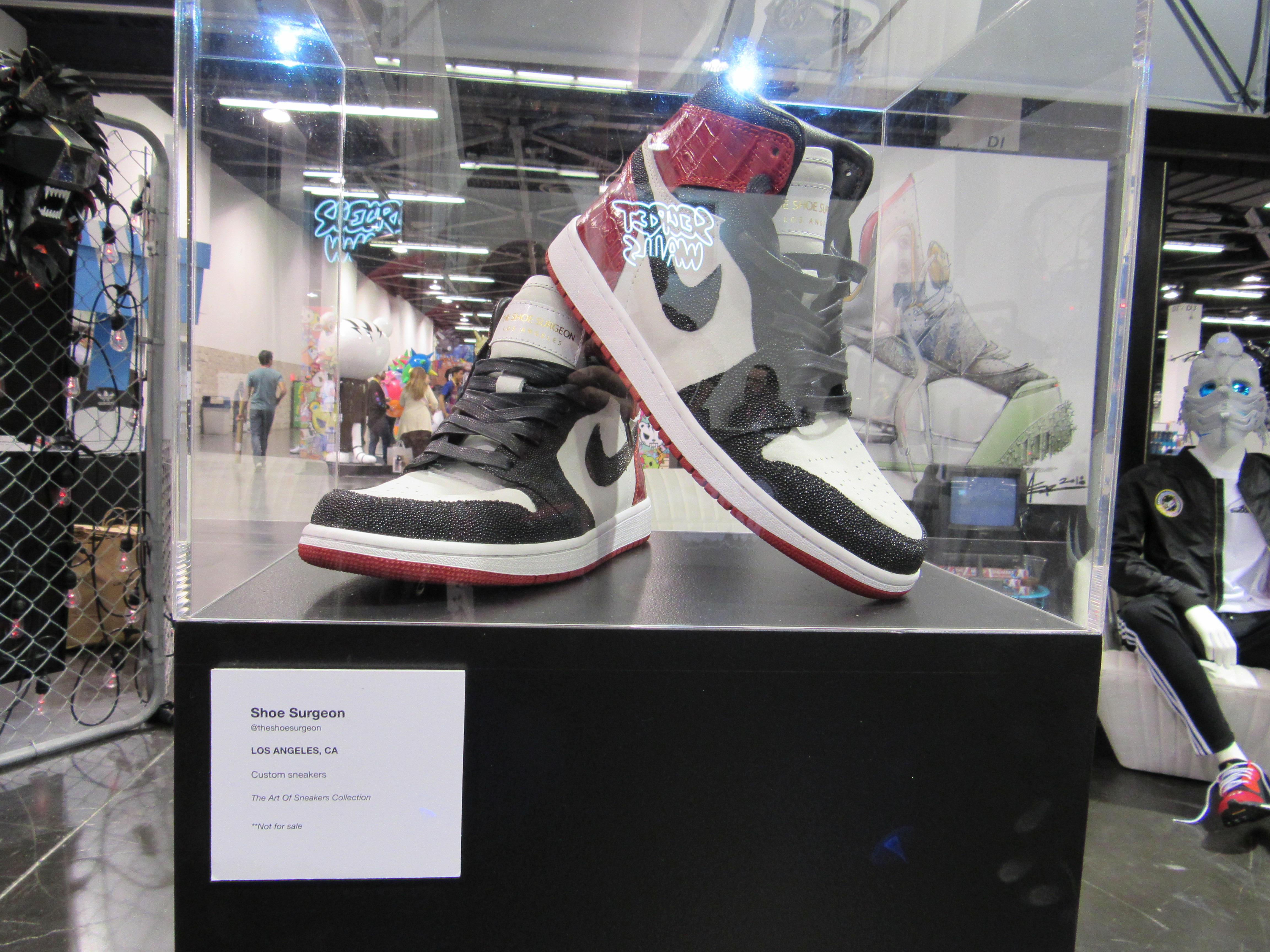 One thing that surprised me was the amount of sneaker art that was there. I recently watched the episode of the Disney Plus show The World According to Jeff Goldblum that focused on the world of sneakers, so I at least felt a little more familiar with this concept. In fact, one pair of sneakers on display was from the Shoe Surgeon, who was featured on the episode. There was even a place to have your sneakers cleaned!