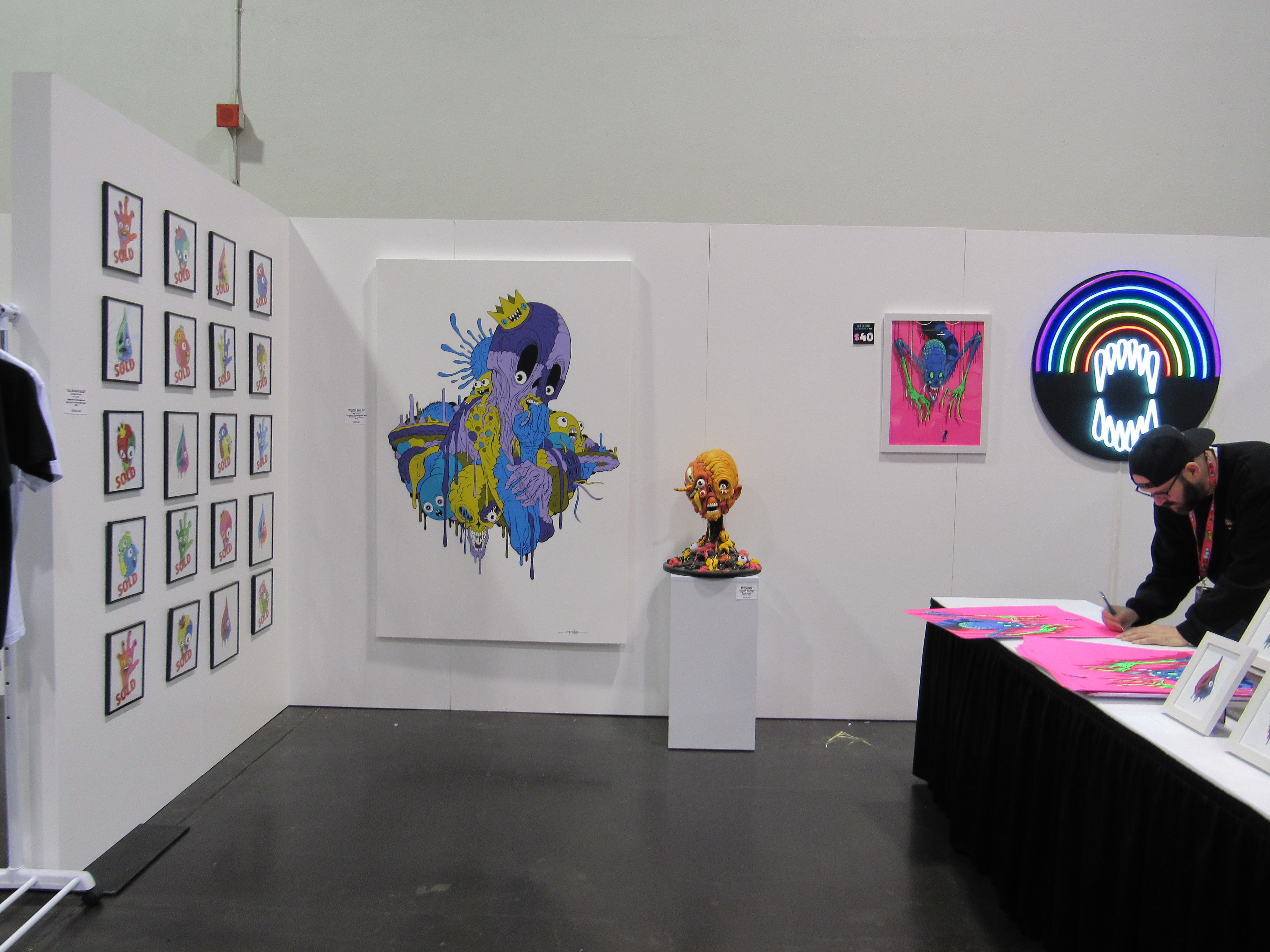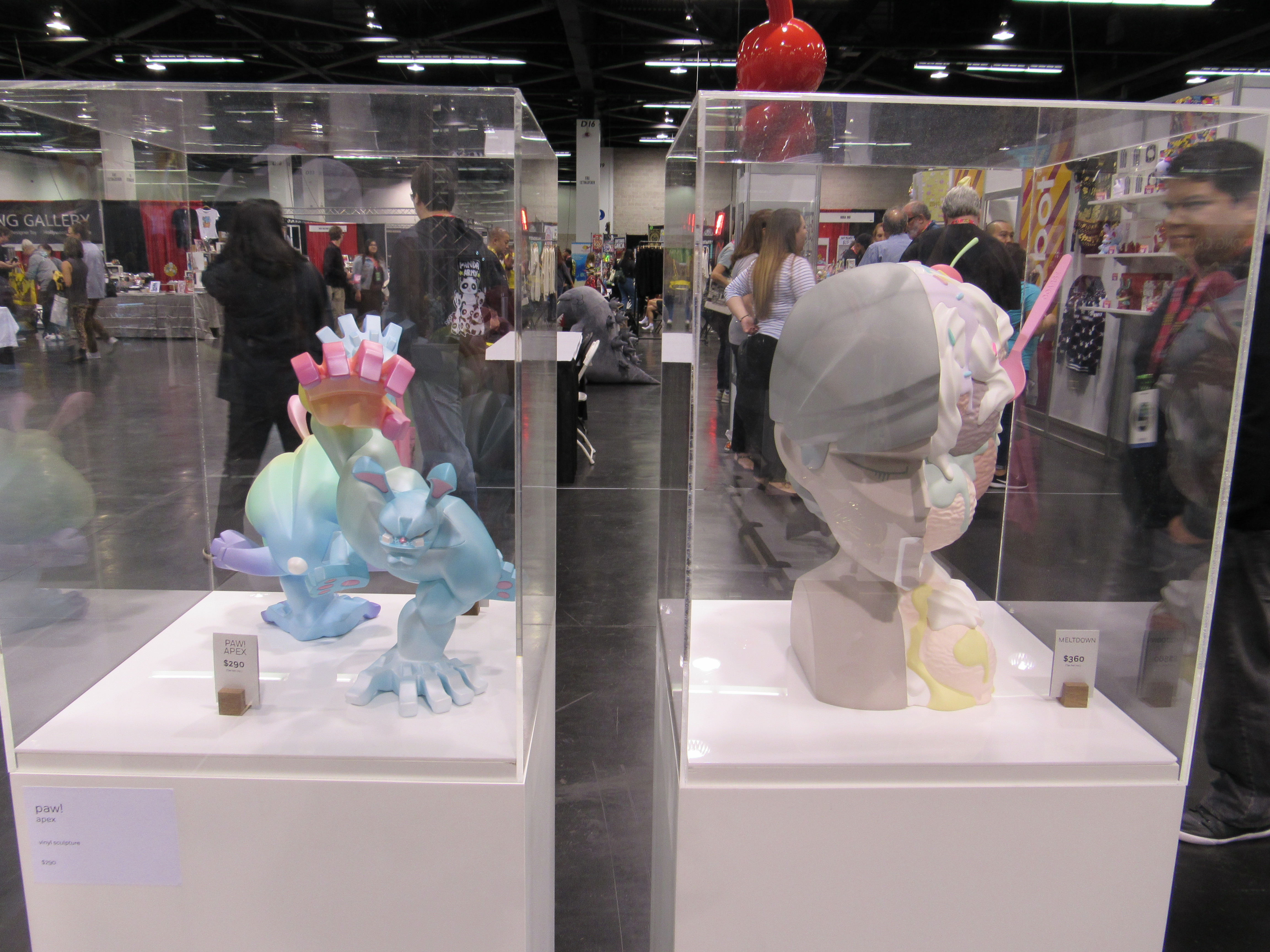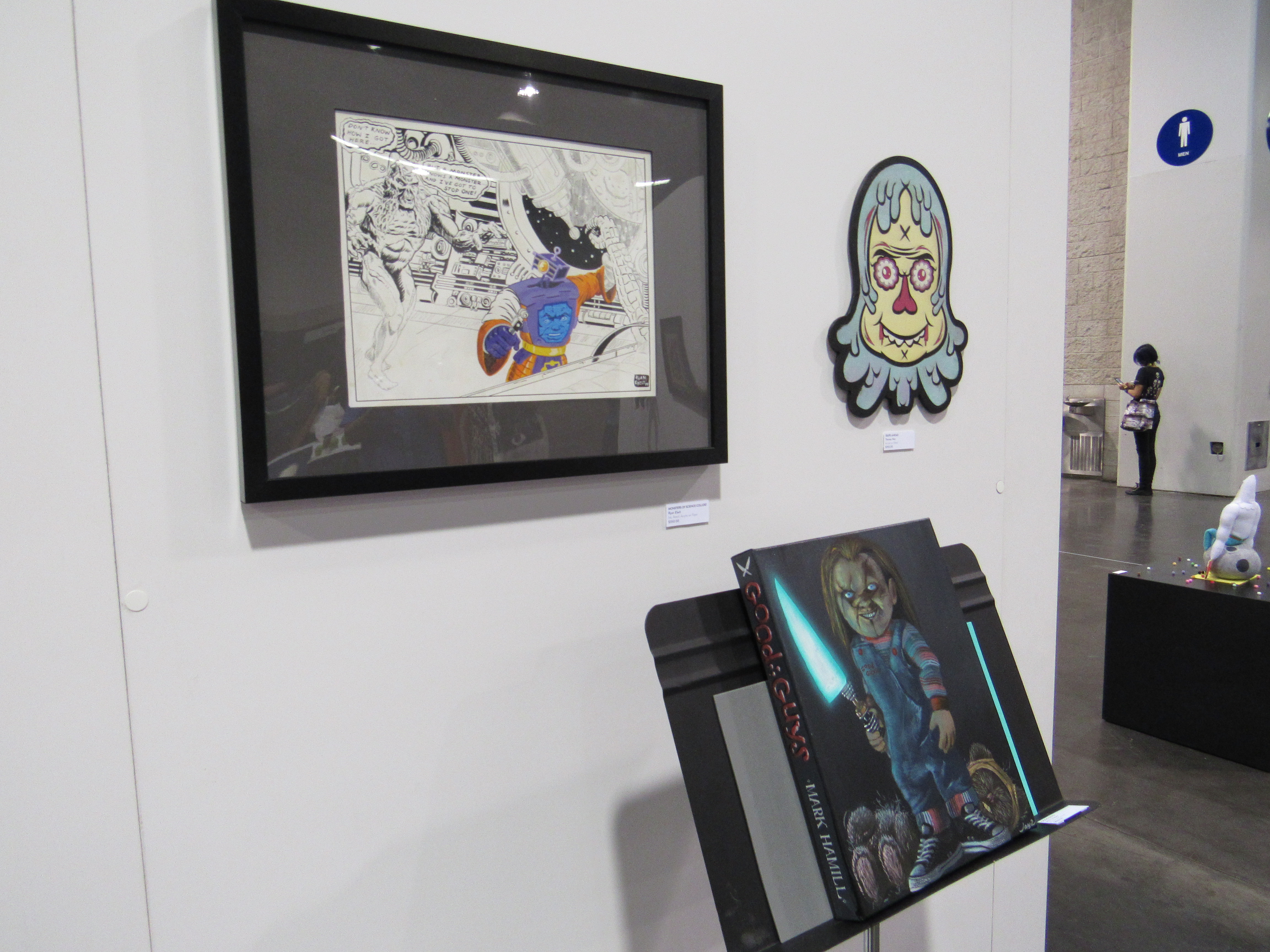 DesignerCon felt like it was part art museum, and part Artist Alley, in that there was a lot of interesting art just to look at, while there was also a great amount of different forms of art available for purchase like there would be at a typical comic convention. This made for an enjoyable experience, because even if you weren’t planning on buying anything, there were plenty of unique things to see. But yes, if you were looking to buy, not only were there small independent vendors, there were also bigger names, like Mondo, Mezco Toyz, and Medicom Toy.