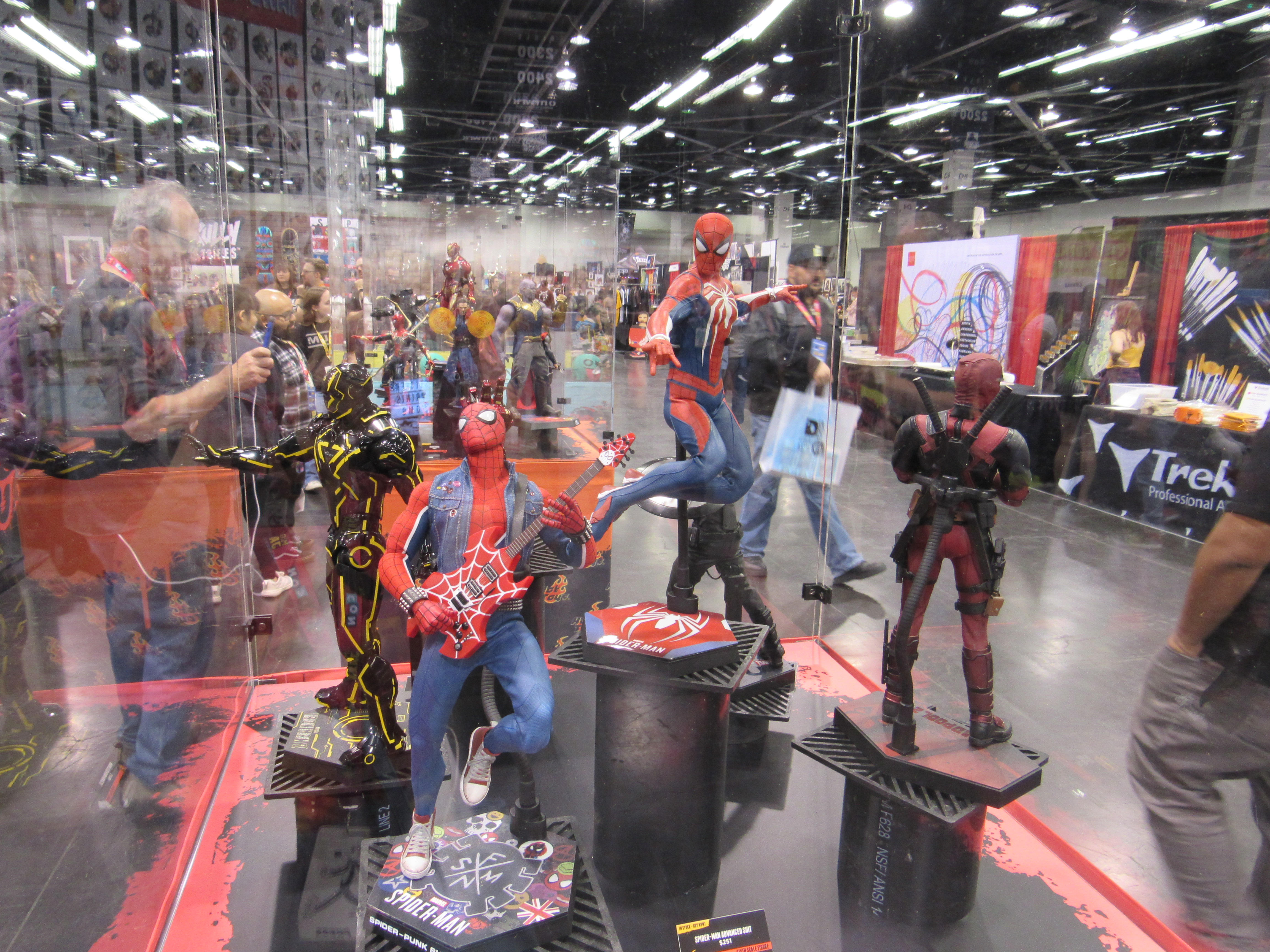 Probably my favorite thing at DesignerCon was the Into the Spider-Verse augmented reality display. There was a special app you could download, and then with that activated, you could point it at the still panels, and they would come to life on your device, not only with video, but with sound. There was also non-Spider-Verse art that would offer up an additional AR aspect to it with the app. Our friends over at Parks and Cons have good videos of this in action.