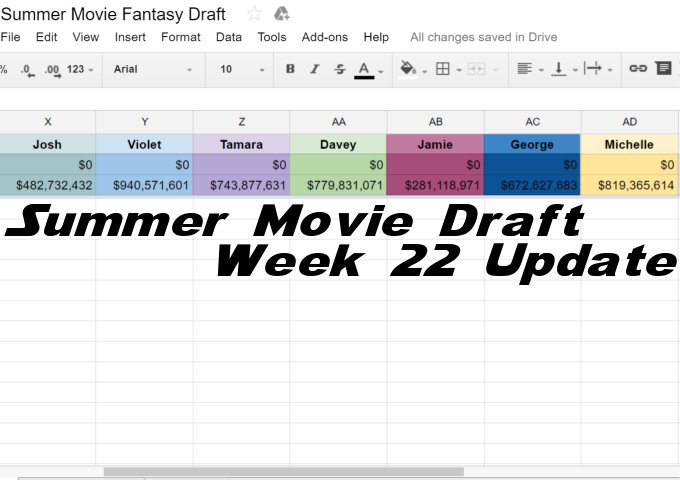 Thanks for everyone’s participation in the Summer Movie Draft, from both the players and the people who submitted guesses for the Summer Movie Draft Giveaway! It was a lot of fun tracking numbers for the summer and seeing how it all played out. Look out for the “Winter Draft” coming out soon! This could be even more interesting, as we do not have the summer movie blockbusters involved this time around, but there are some big winter movies to consider! We should have another giveaway going for that as well, so stay tuned!