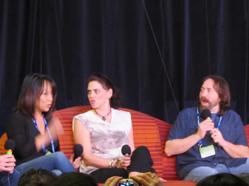 Moving over to Naoko, and she is obsessed with Will Thorp’s massive arms. She gets enamored with it, at first having to face away from him, but eventually winds up laying up against him. Apparently she is easily distracted or is really brought in by this guy. The host gets back on track, and asks about her involvement in Torchwood. He asks her about the show returning. Naoko thanks the fans who still love the show. She also talks about her introduction into the show, which is one of the first scenes of the revitalized series. She admits though, she had no idea what this show was when she was cast on it. She tells a pretty funny about learning a new word in the script–“TARDIS”. She had no idea what it was. I guess it makes sense since she had no idea what the show would be. She doesn’t really answer the question of the show coming back, but she probably has no idea anyway.