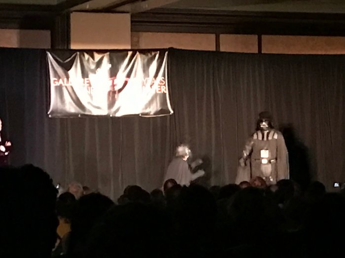 But the show finally started. The panel was essentially a sketch comedy routine, revolving around Doctor Who. The first one had where the character swallowed a dwarf-star gemstone, which grants wishes. The character wishes that Tom Baker never stopped being the Doctor for Doctor Who. It was pretty entertaining to see how their “timey-wimey” scenario played out. All of the gaps in Doctor Who were filled in now, rather than having gaping holes. But there were repercussions too–ratings for the show tanked, and Tom Baker, who showed up to the panel (I should clarify, a person dressed up as Tom Baker) says he just wants to be let go.