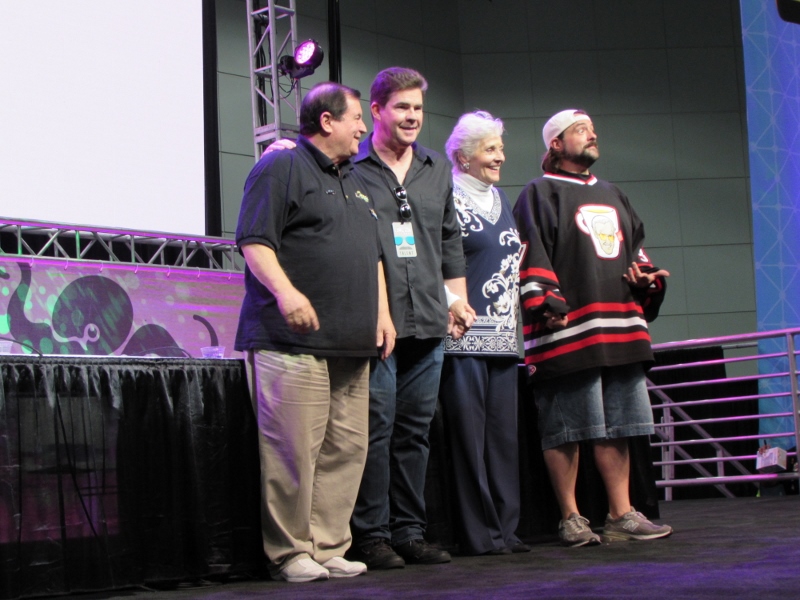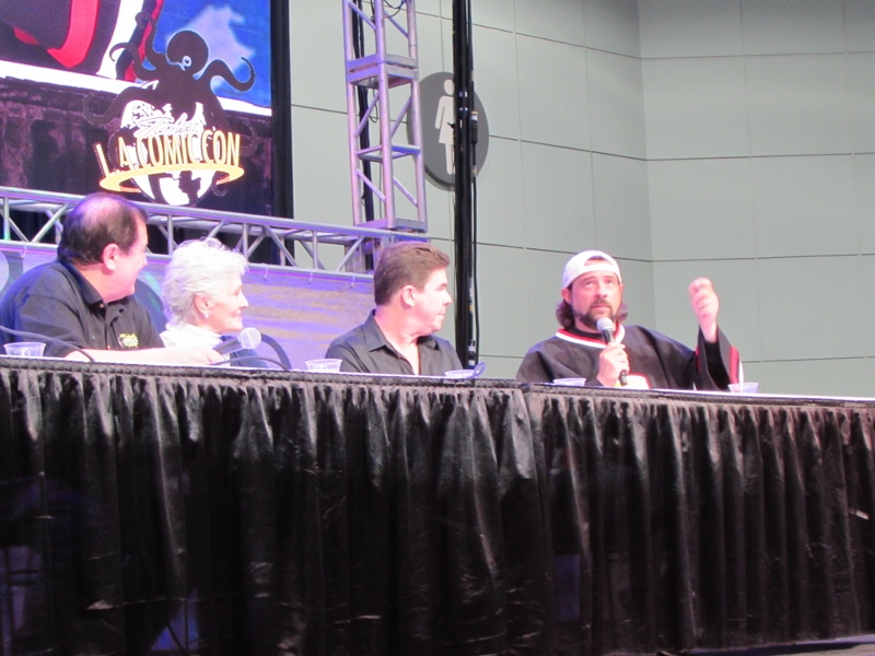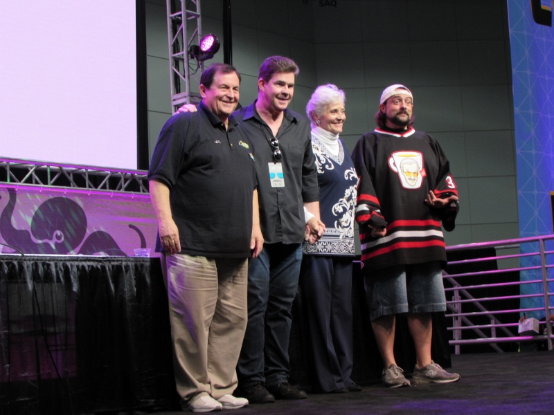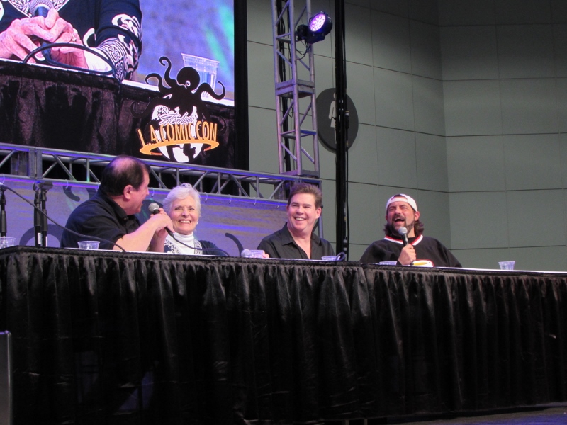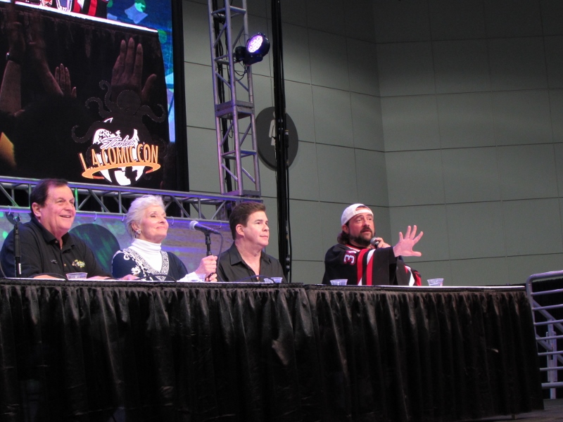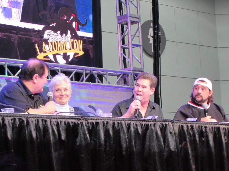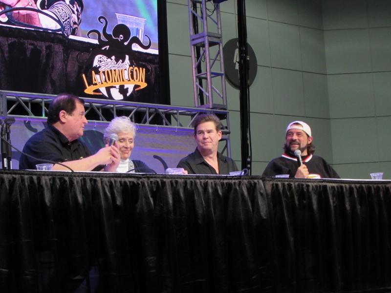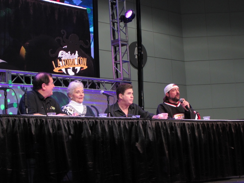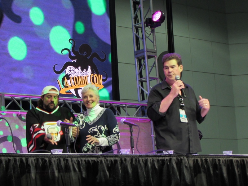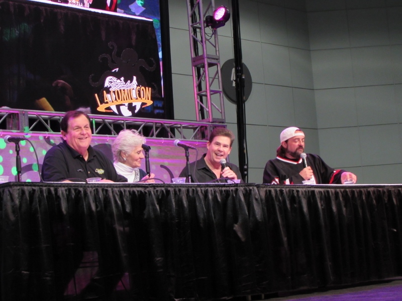 Kevin Smith and Ralph Garman moderated a panel on Saturday, October 28, 2017 at Stan Lee’s Los Angeles Comic Con paying tribute to the late Adam West that included Burt Ward and Lee Meriwether. Burt Ward played Robin, while Lee Meriwether was the very first movie Catwoman.