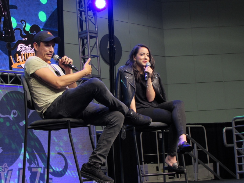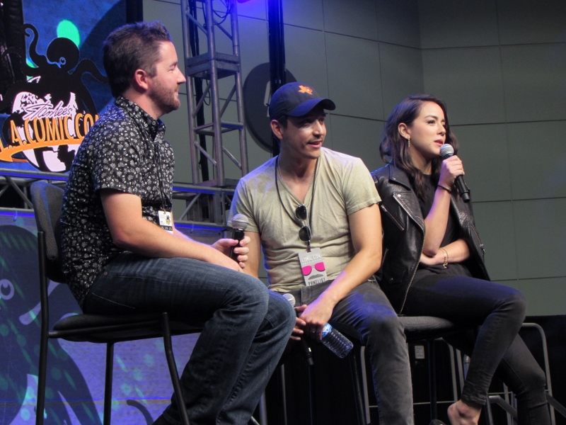 She then talked about her various transitions on the show, from Skye, to Daisy Johnson, to Quake, and how she has felt that she has grown organically with the show in real life as well. Gabe told the story about when he got the phone call to be Ghost Rider, and how it happened so fast between the time he got off the call and started shooting — 6 days. He also mentioned the goosepimples he got when Jeph Loeb told him, like he tells everyone that comes on board, “Welcome to Marvel.” Both Chloe and Gabe then talked about how the show really feels like a family, and thanked the audience for supporting the show.