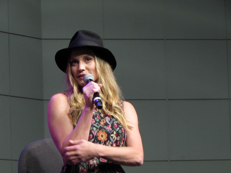 She told us that she’s known for joking around on set, and then told us a story about the scene where Kara tells Adama that she’s responsible for Zack’s death. She had been joking around between scenes, and Edward James Olmos (Adama) pulled her aside and told her that she fakes it really well, but that if she actually tried, he thought she would be really good. He gave her some advice, telling her to look him in the eye and actually feel what she is saying. She took his advice in the next scene, and afterwards she walked out sobbing, with her hands over her face. After the scene, Olmos told her, “Congratulations, you’re now acting.”