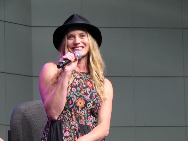She recalled that growing up in the 80s, there weren’t a lot of strong women on TV, so she grew up idolizing male characters. For example, she wanted to be Bruce Willis. Then women like Linda Hamilton, Sigourney Weaver, and Lucy Lawless came along and did something for the for first time. She didn’t realize it at first, but Starbuck became that for a lot of people, so she then felt a sense of responsibility. Since being on Battlestar Galactica, she has wanted to find these strong women to play, and they keep seeming to find her.
