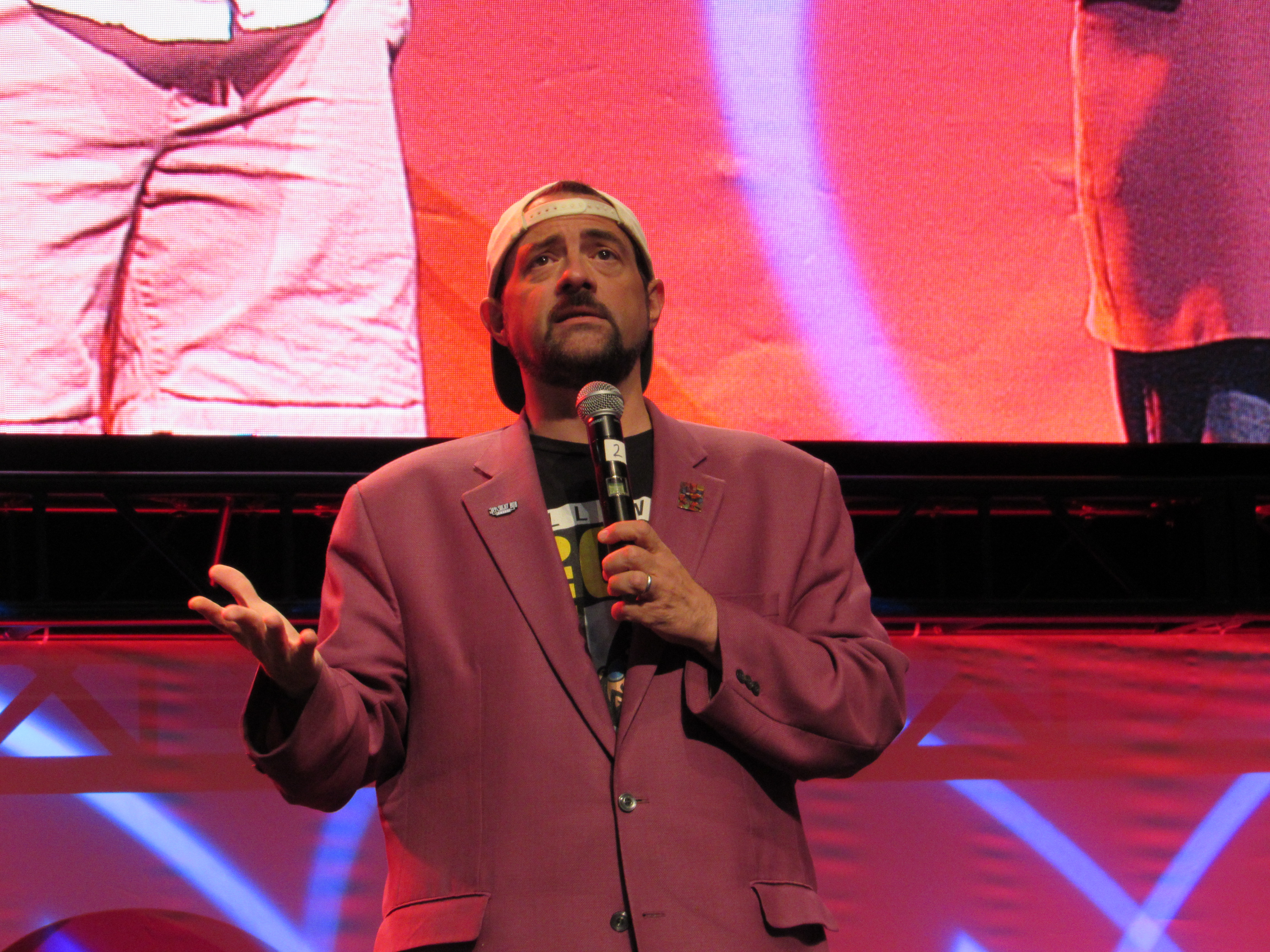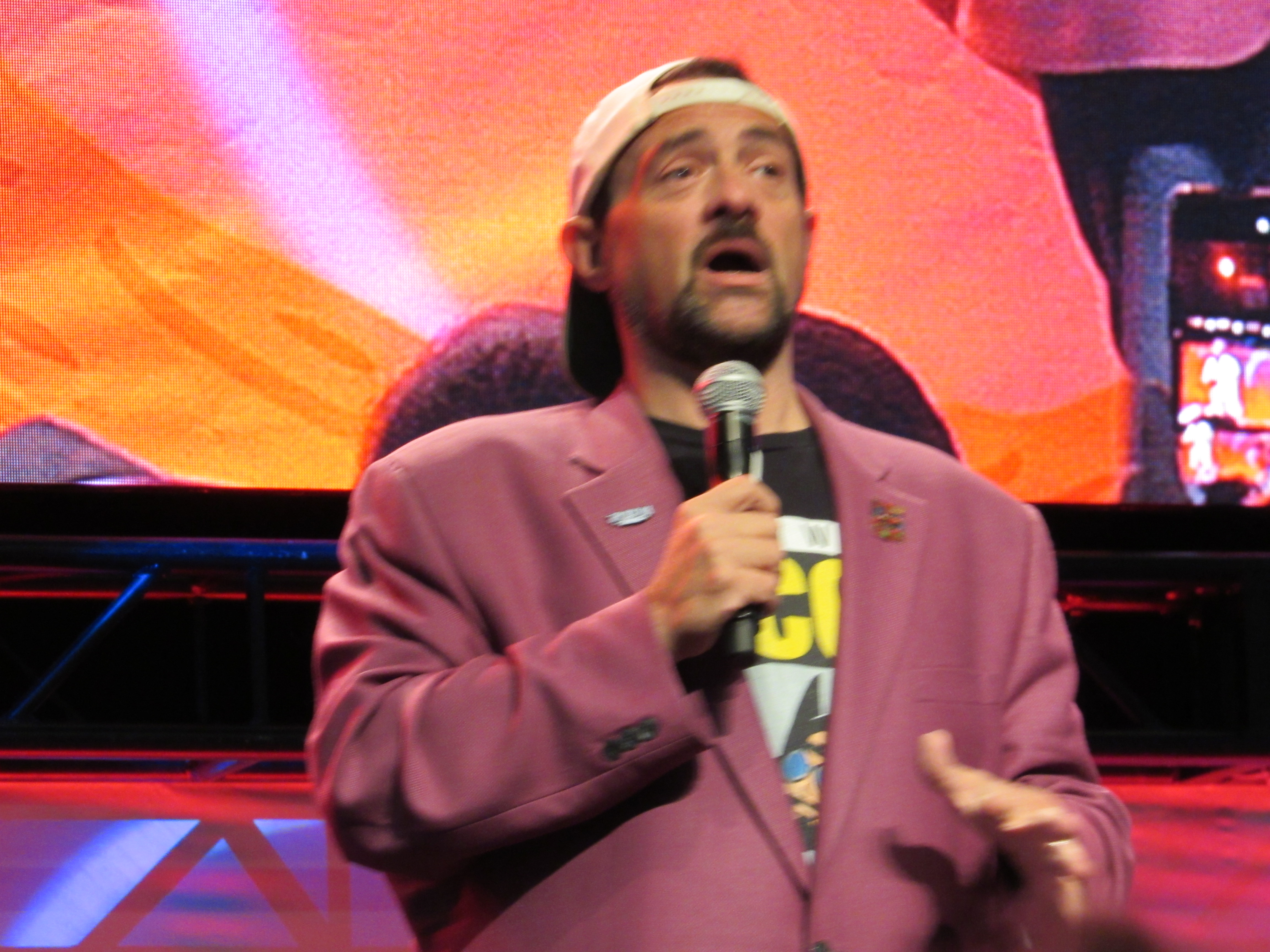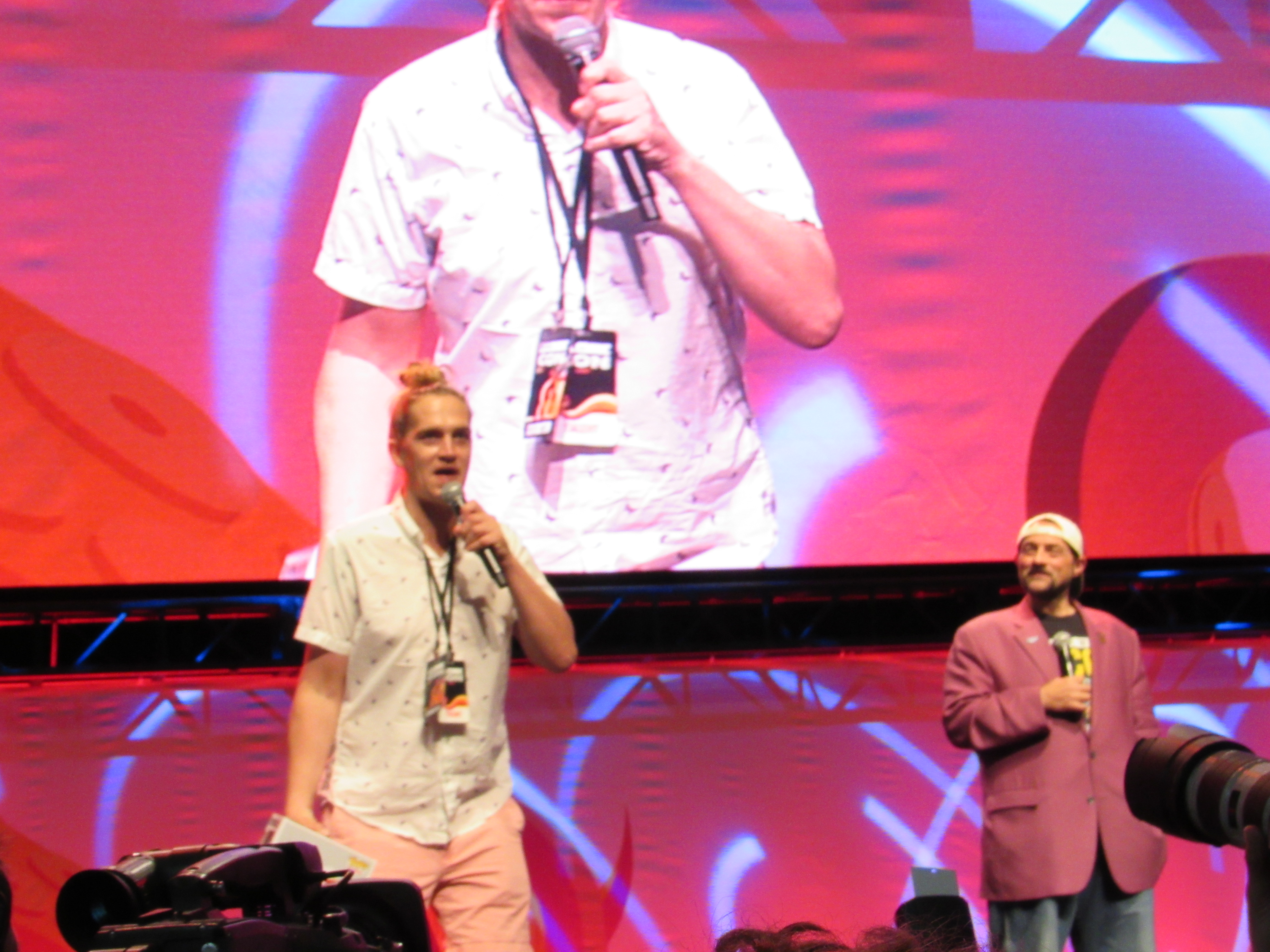 A huge crowd of fans gathered around the standing room only Main Stage at the Los Angeles Convention Center to see “Jay” (Jason Mewes) and “Silent Bob” (Kevin Smith) talk for about 30 minutes. Kevin Smith admitted that in real life, their roles are typically switched: he’s the one that talks a lot, while Jason Mewes is the one who is quiet and makes faces! Because of that, Kevin wanted to give Jason a chance to talk first.