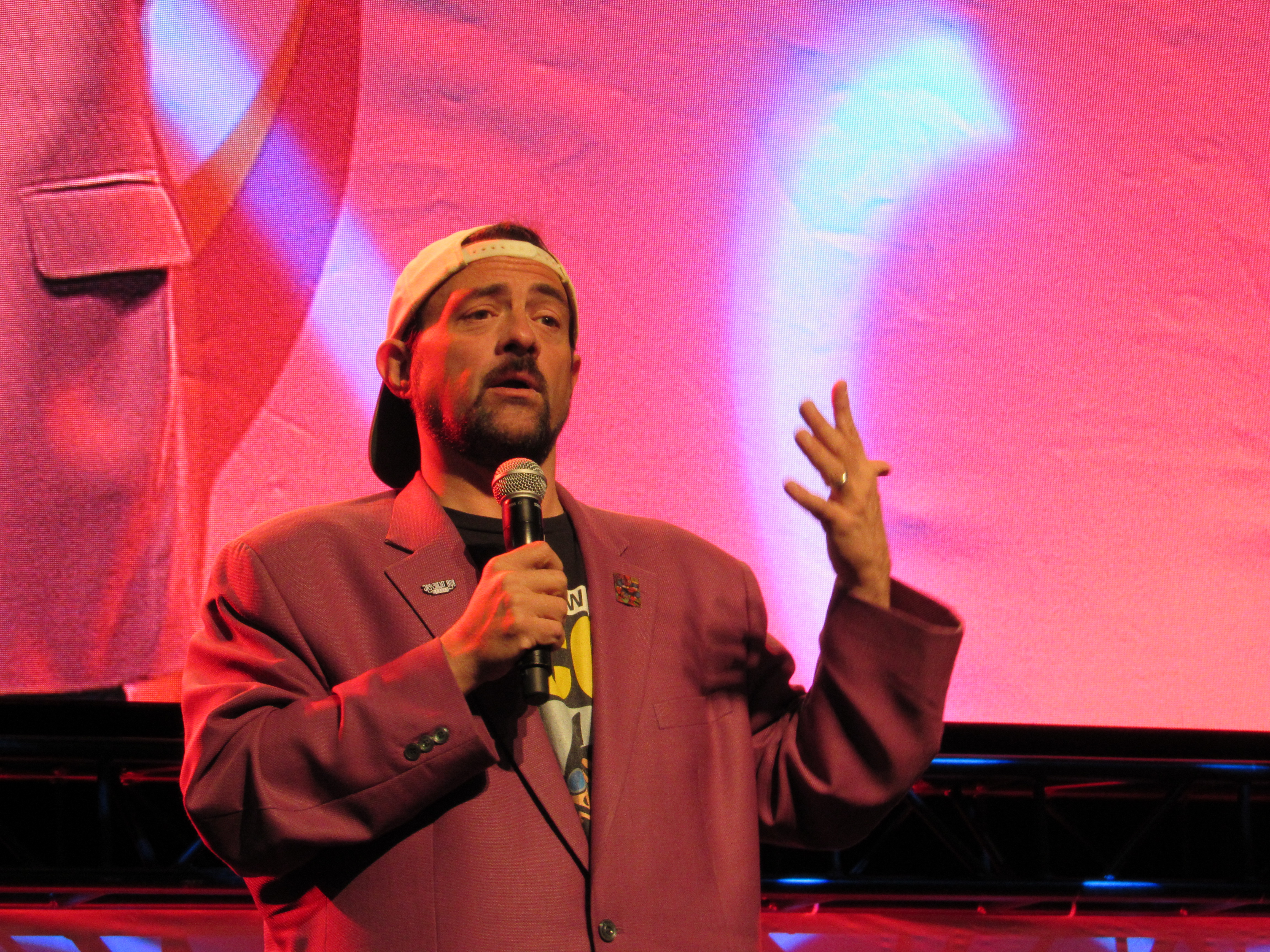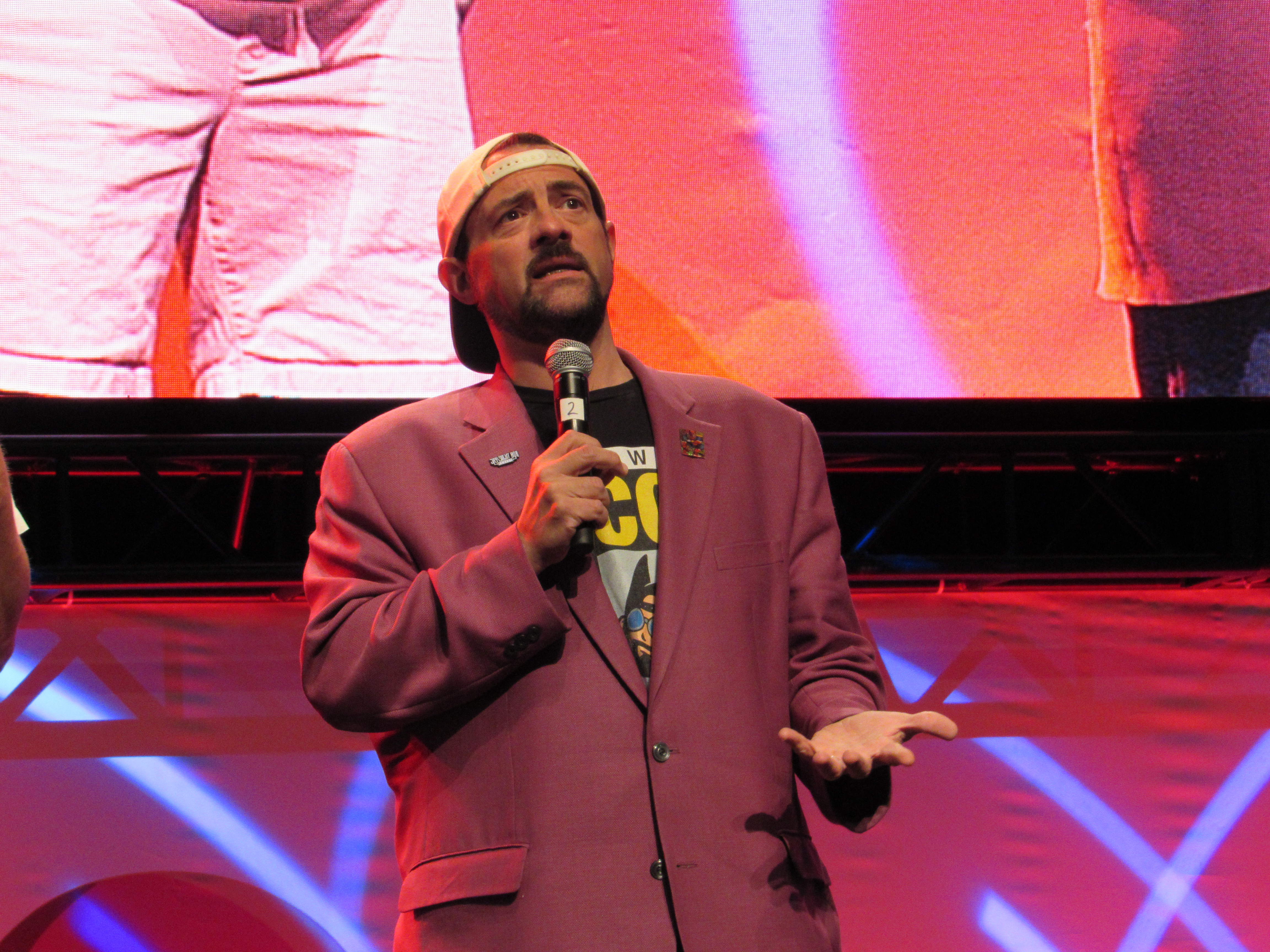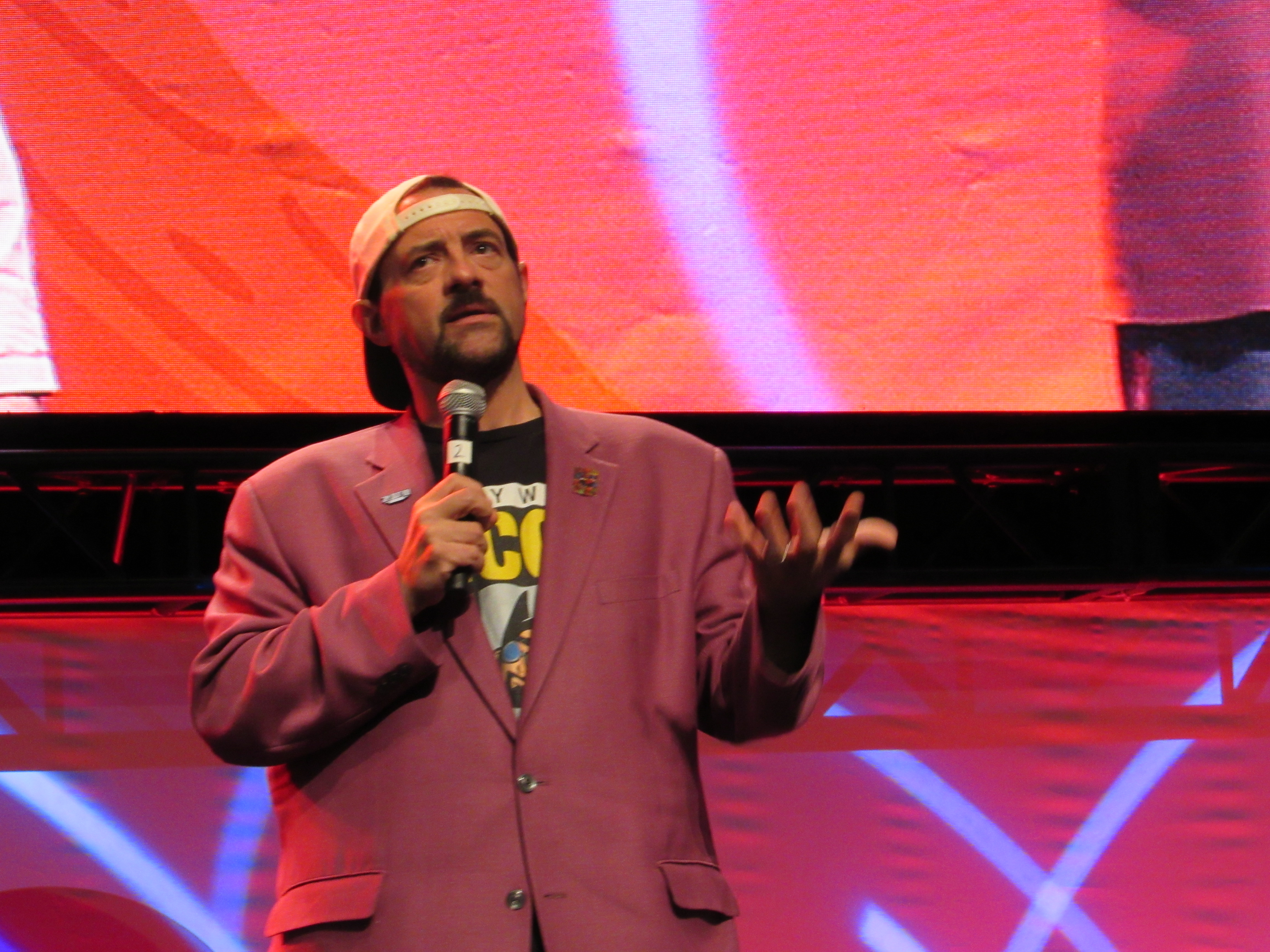 A huge crowd of fans gathered around the standing room only Main Stage at the Los Angeles Convention Center to see “Jay” (Jason Mewes) and “Silent Bob” (Kevin Smith) talk for about 30 minutes. Kevin Smith admitted that in real life, their roles are typically switched: he’s the one that talks a lot, while Jason Mewes is the one who is quiet and makes faces! Because of that, Kevin wanted to give Jason a chance to talk first.