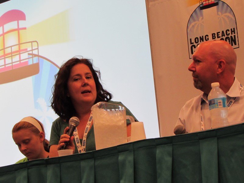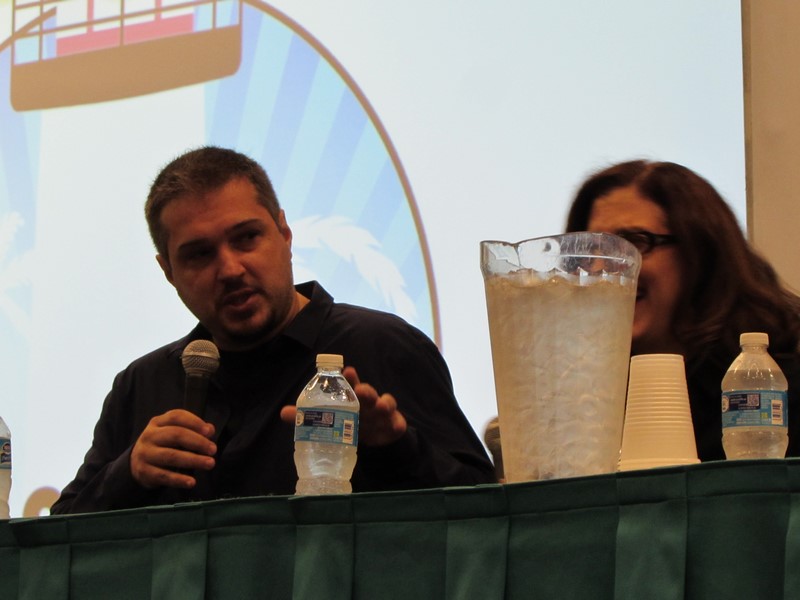 Immediately following the Psychology of Daredevil, in the same room, was the Couples Therapy panel, with husband and wife Marc Guggenheim (showrunner for Arrow and the upcoming Legends of Tomorrow) and Tara Butters (showrunner for Marvel’s Agent Carter). They were running a little late due to trying to find parking, so we got about a 10 minute break while we waited for them. KROQ’s Ralph Garman moderated the panel, which ended up also including Marc and Tara’s two young daughters, leading Ralph to joke that the panel had turned into “Family Therapy.”
