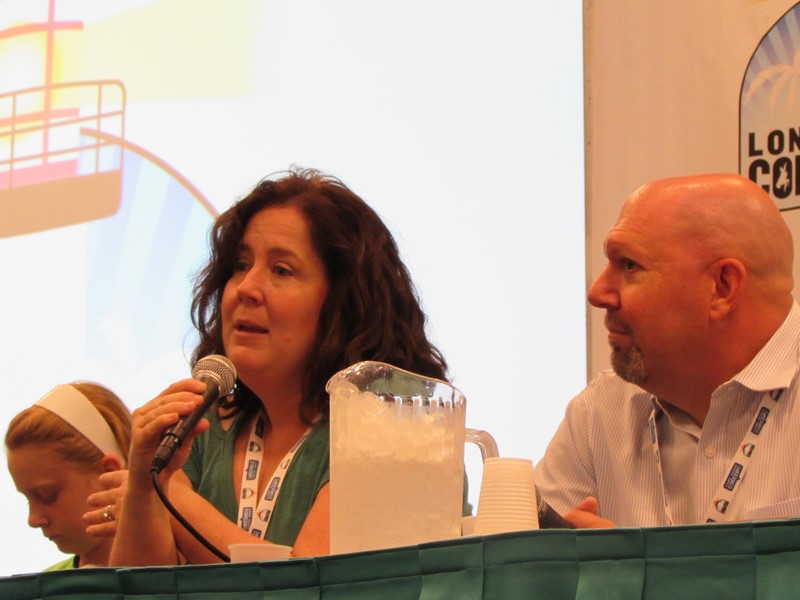 Back to audience questions, the couple was asked whether they would consider working on something together. They pointed out that they had worked on the Halcyon comic book together, and they’re not opposed to working together again, but they’re just so busy that it’s not really possible.