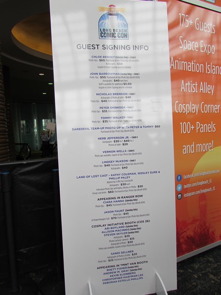 I followed the crowds of people who were obviously going to Long Beach Comic Con and made my way to the front entrance. Once inside, I went over to Press Registration, where there was no one in line. I just had to give them my ticket print out and a business card, then they gave me a clip-on badge (no lanyard, sadly) and I was good to go!