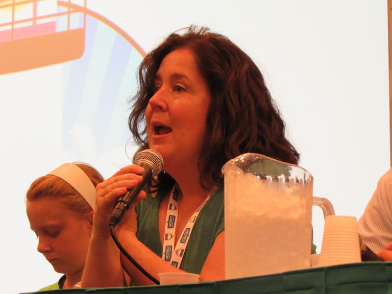 The panel was then opened up to audience questions. The room was fairly small, so whenever an audience member wanted to ask a question, they would raise their hand, Ralph Garman would call on them, and then they would just shout out their question.