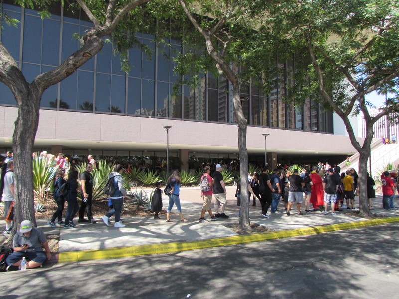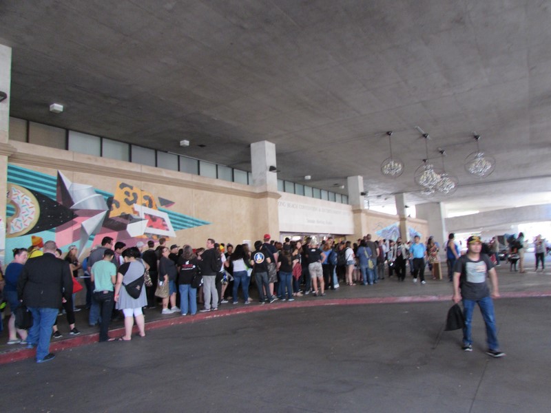 We got a bit of a later start on Saturday, which was the only day we would be able to attend, arriving around noon. Upon seeing a tweet that someone had waited at the same traffic light for 30 minutes before parking, and then looking at traffic on Google maps and seeing the street alongside the Long Beach Convention Center backed up, we opted to park at the Pike parking structure a few blocks away, rather than deal with trying to get to the Arena parking lot, even though this year LBCC was not using the main entrance (as it did last year), and instead was using the back entrance, as they had for Long Beach Comic Expo earlier this year. It meant a bit further of a walk, but we’re long distance runners (currently in training for the Long Beach Half Marathon), so that wasn’t a big deal for us.