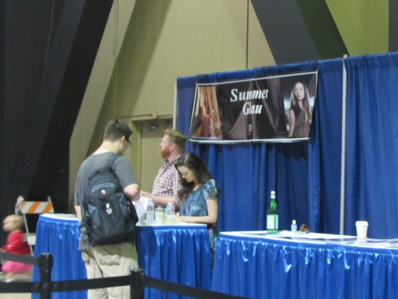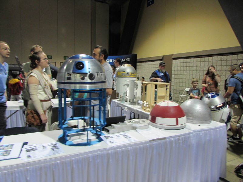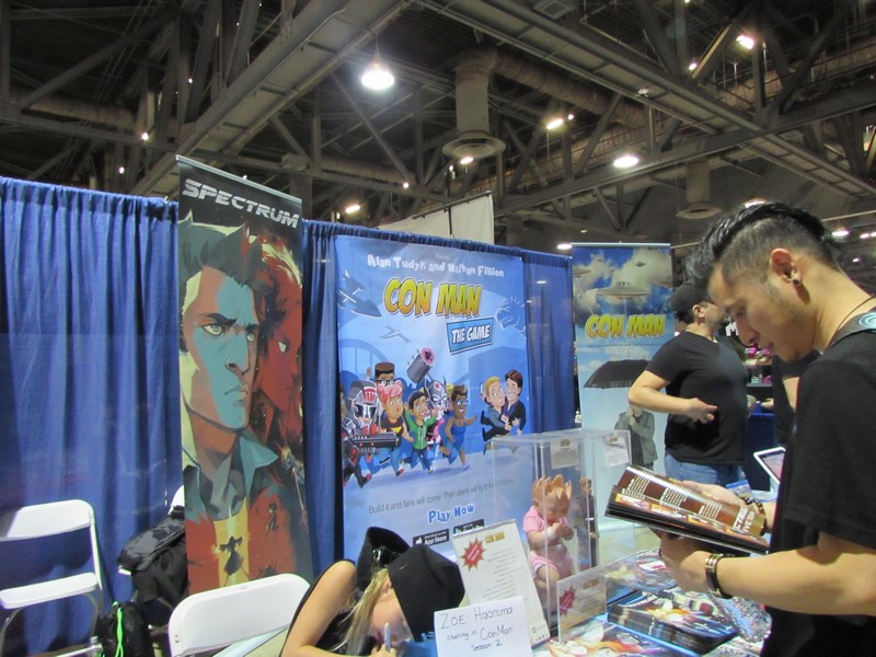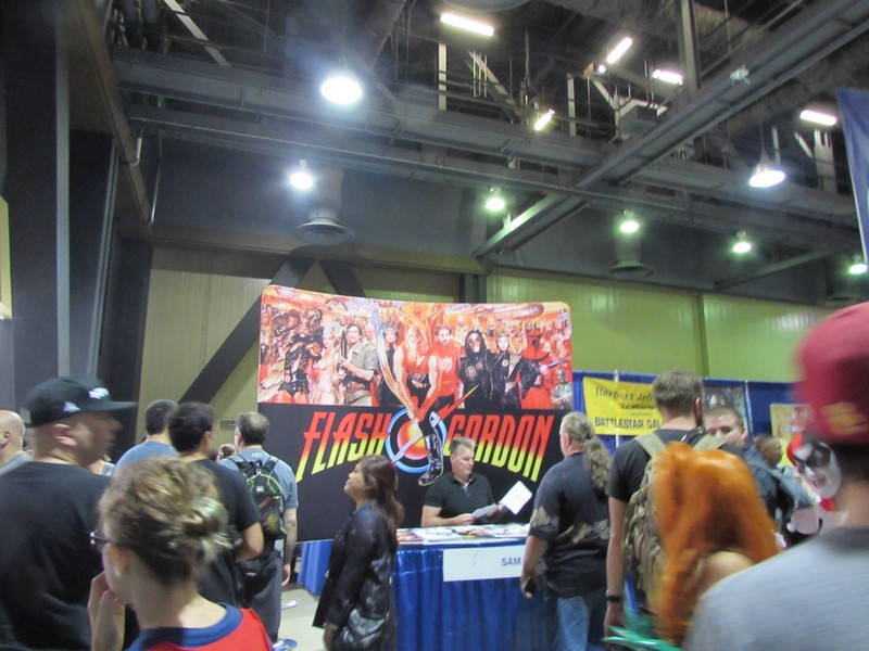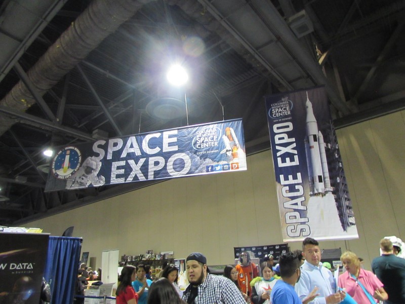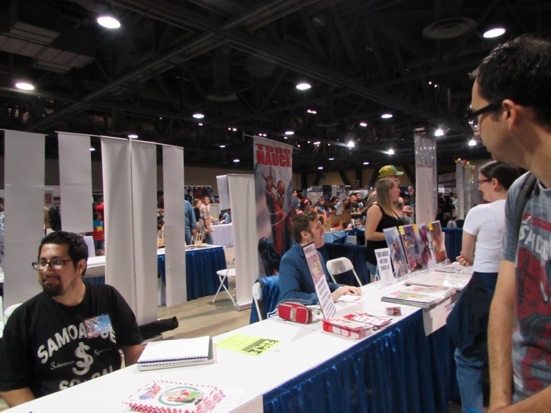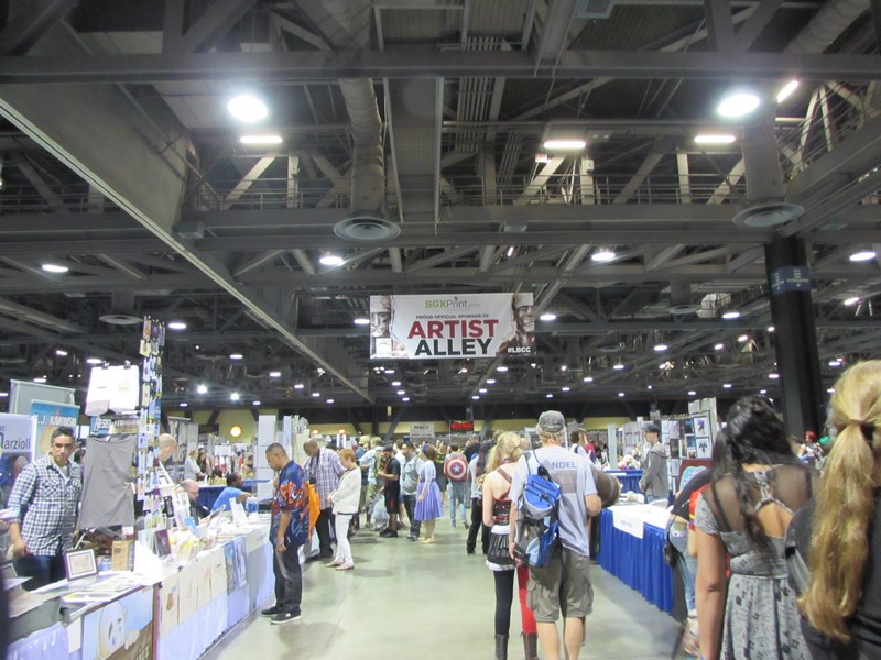 We went inside the Exhibit Hall and walked up and down the aisles. Exhibitors included Aspen Comics, Top Cow Productions, and Con Man, just to name a few, as well as various retailers selling geeky collectibles, jewelry, and clothing. The Columbia Memorial Space Center was back again this year with its Space Expo section, featuring astronaut suits, various activities for children, and Star Wars droids on display, including BB-8. Continuing on, we discovered a gaming area where you could play board games, a laser tag area, and a video game area where you could play videos games on a large, inflatable screen. On the other side of the Exhibit Hall was Cosplay Corner, featuring various cosplayers, such as Vegas Power Girl, and cosplay groups like The Marvel Report and Agents of COSPLAY. Also on this side of the Exhibit Hall were Celebrity Signings. We walked down an aisle where we saw Sam Jones (Flash Gordon), Kevin Conroy and Loren Lester (Batman: The Animated Series), and Tommy Walker (Daredevil) signing autographs, and a few others. The back wall was where the Firefly cast members were signing, but at that time only Summer Glau was at her booth. Meanwhile, the center of the Exhibit Hall featured a huge Artist Alley.
