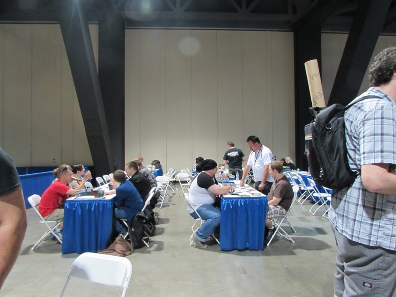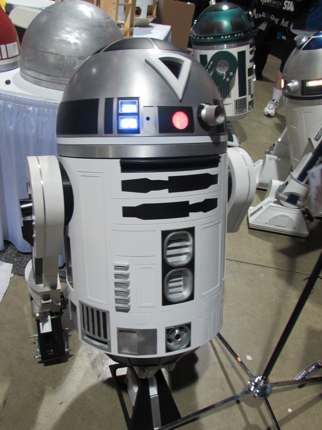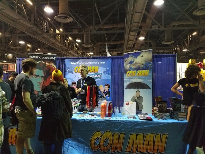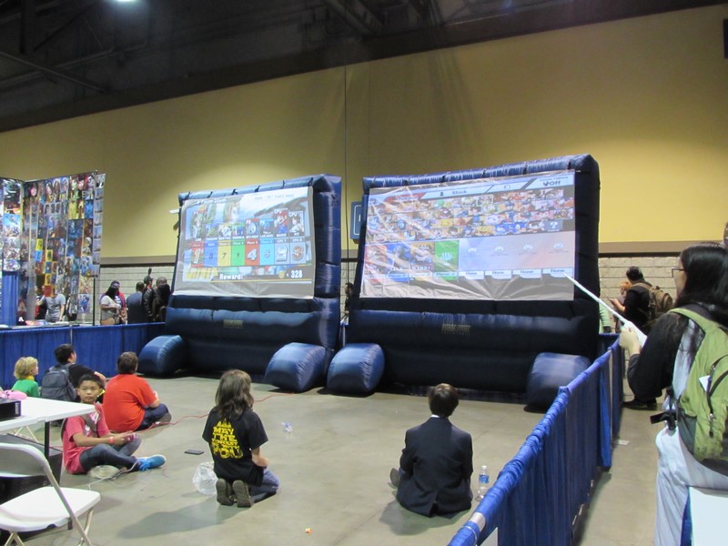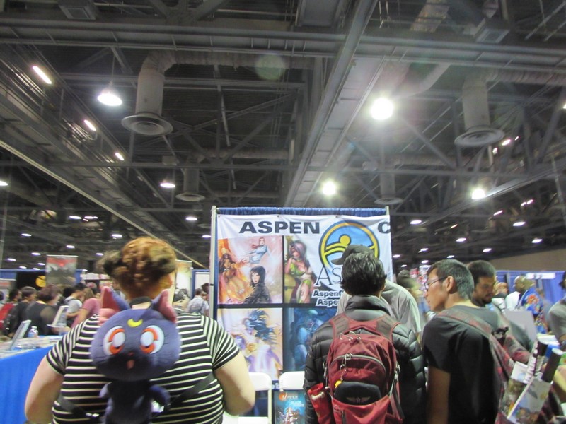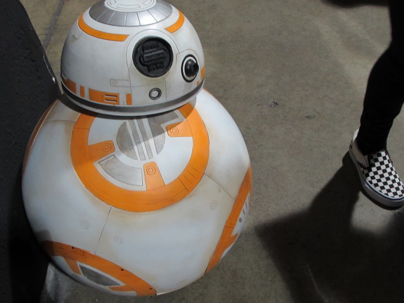 We went inside the Exhibit Hall and walked up and down the aisles. Exhibitors included Aspen Comics, Top Cow Productions, and Con Man, just to name a few, as well as various retailers selling geeky collectibles, jewelry, and clothing. The Columbia Memorial Space Center was back again this year with its Space Expo section, featuring astronaut suits, various activities for children, and Star Wars droids on display, including BB-8. Continuing on, we discovered a gaming area where you could play board games, a laser tag area, and a video game area where you could play videos games on a large, inflatable screen. On the other side of the Exhibit Hall was Cosplay Corner, featuring various cosplayers, such as Vegas Power Girl, and cosplay groups like The Marvel Report and Agents of COSPLAY. Also on this side of the Exhibit Hall were Celebrity Signings. We walked down an aisle where we saw Sam Jones (Flash Gordon), Kevin Conroy and Loren Lester (Batman: The Animated Series), and Tommy Walker (Daredevil) signing autographs, and a few others. The back wall was where the Firefly cast members were signing, but at that time only Summer Glau was at her booth. Meanwhile, the center of the Exhibit Hall featured a huge Artist Alley.