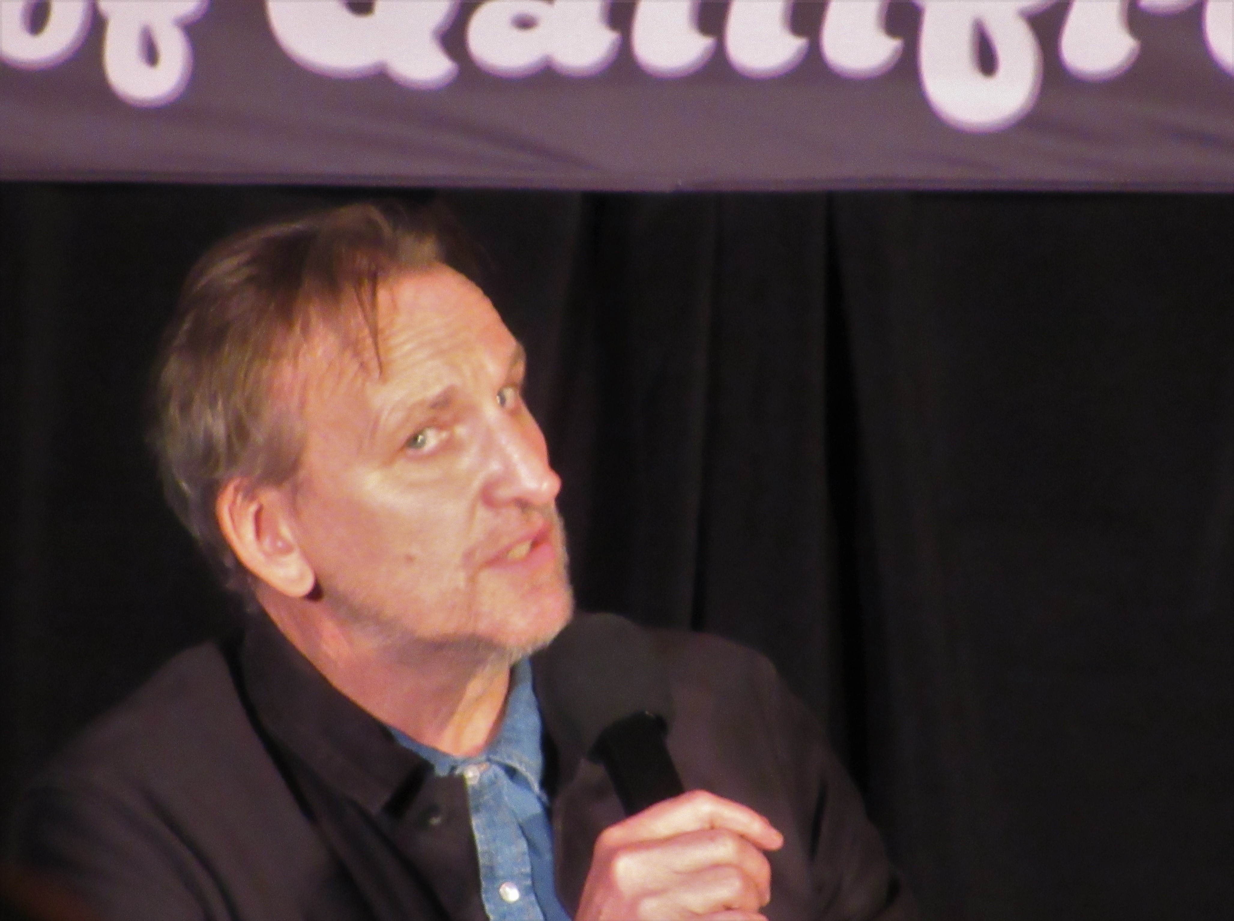 Then after the live episode commentary came the moment we had all been waiting for: the Christopher Eccleston interview. This was a pretty big deal because not only had Ninth Doctor Christopher Eccleston been largely avoiding conventions in general for a long time, but this was the first time one of the main “New Who” Doctors had been a guest at Gallifrey One (other than the War Doctor, the late Sir John Hurt, at Gallifrey One 2016). The room was completely full, to the point of being standing room only, and he entered the room to a standing ovation.
