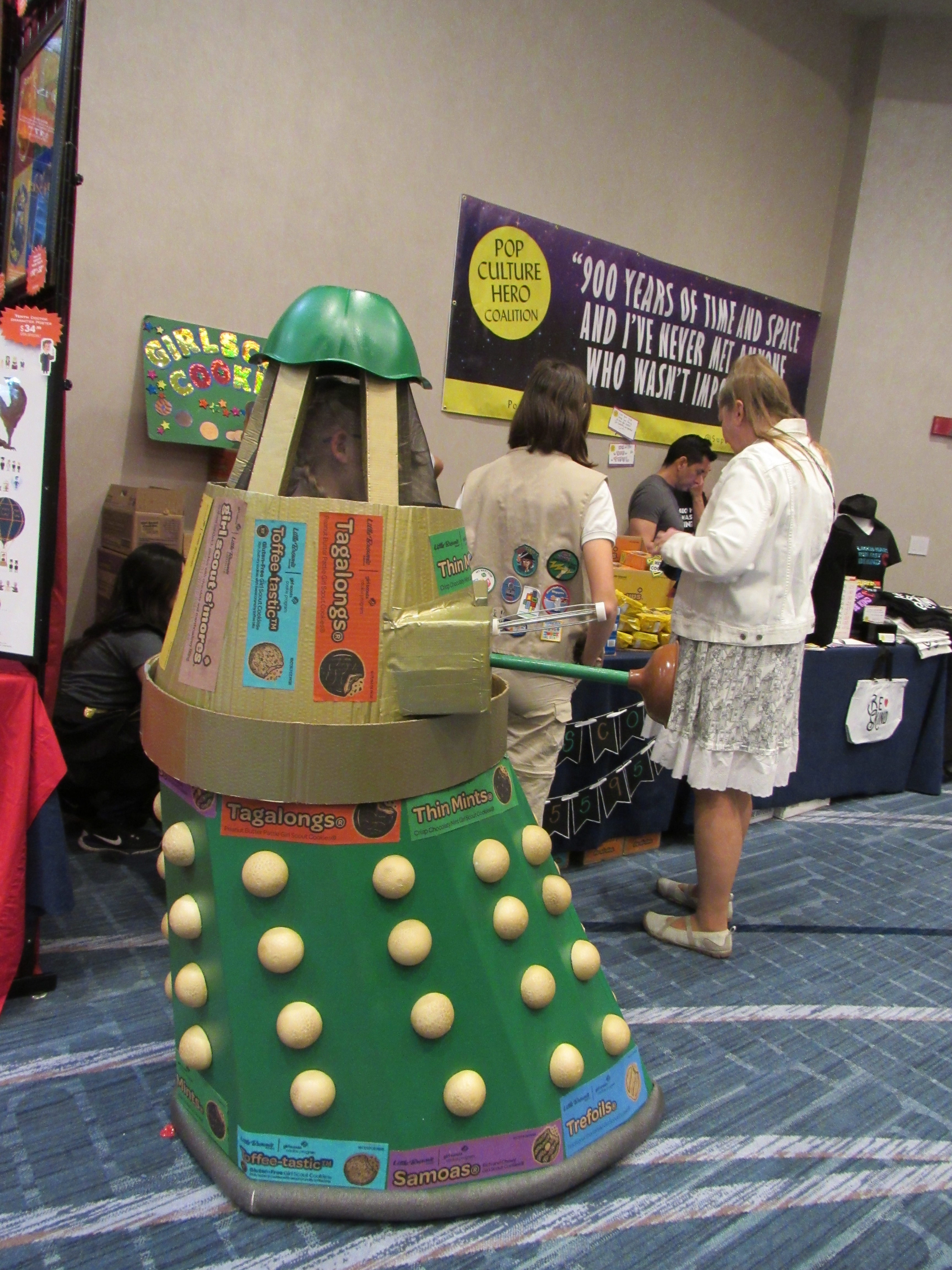 Then I showered, got dressed in my 13th Doctor cosplay, and we went down to grab some lunch at Hangar 18, the restaurant in the hotel lobby. After that, we wandered the Dealers Room for a bit. They had a life size TARDIS set up in there, so I took a photo as the Doctor with the TARDIS. We also checked out the Art Show (no photos allowed in there, though).