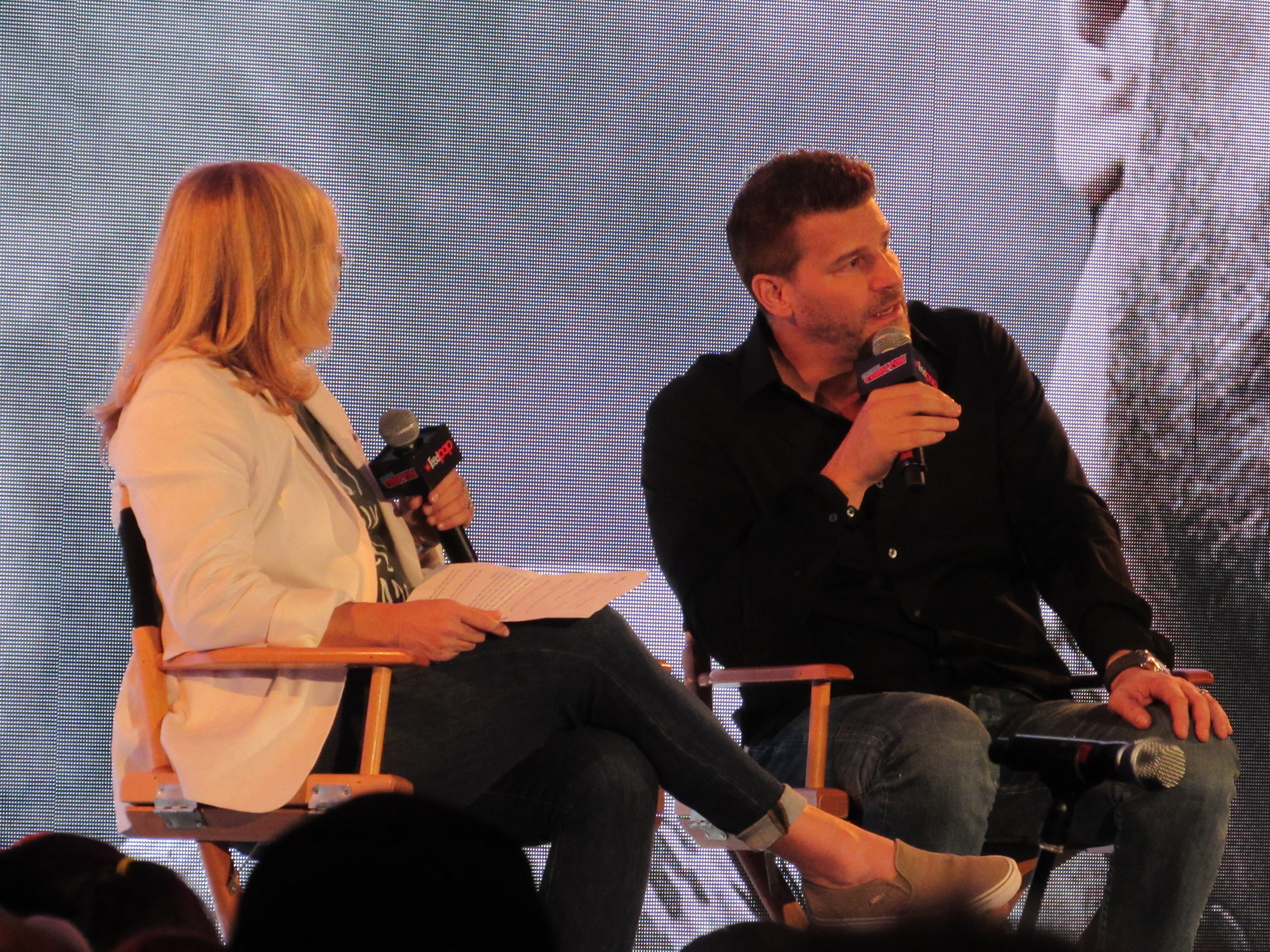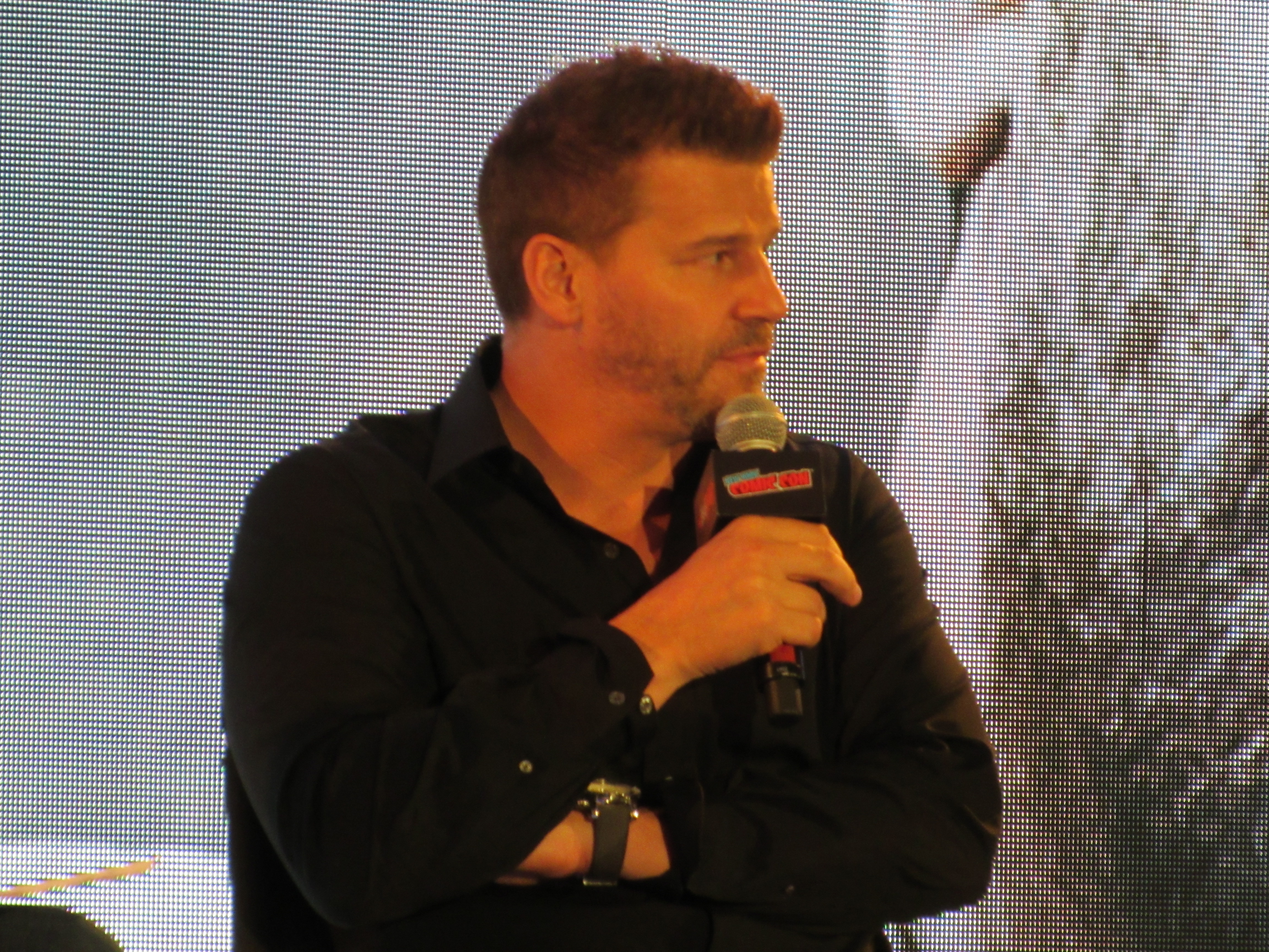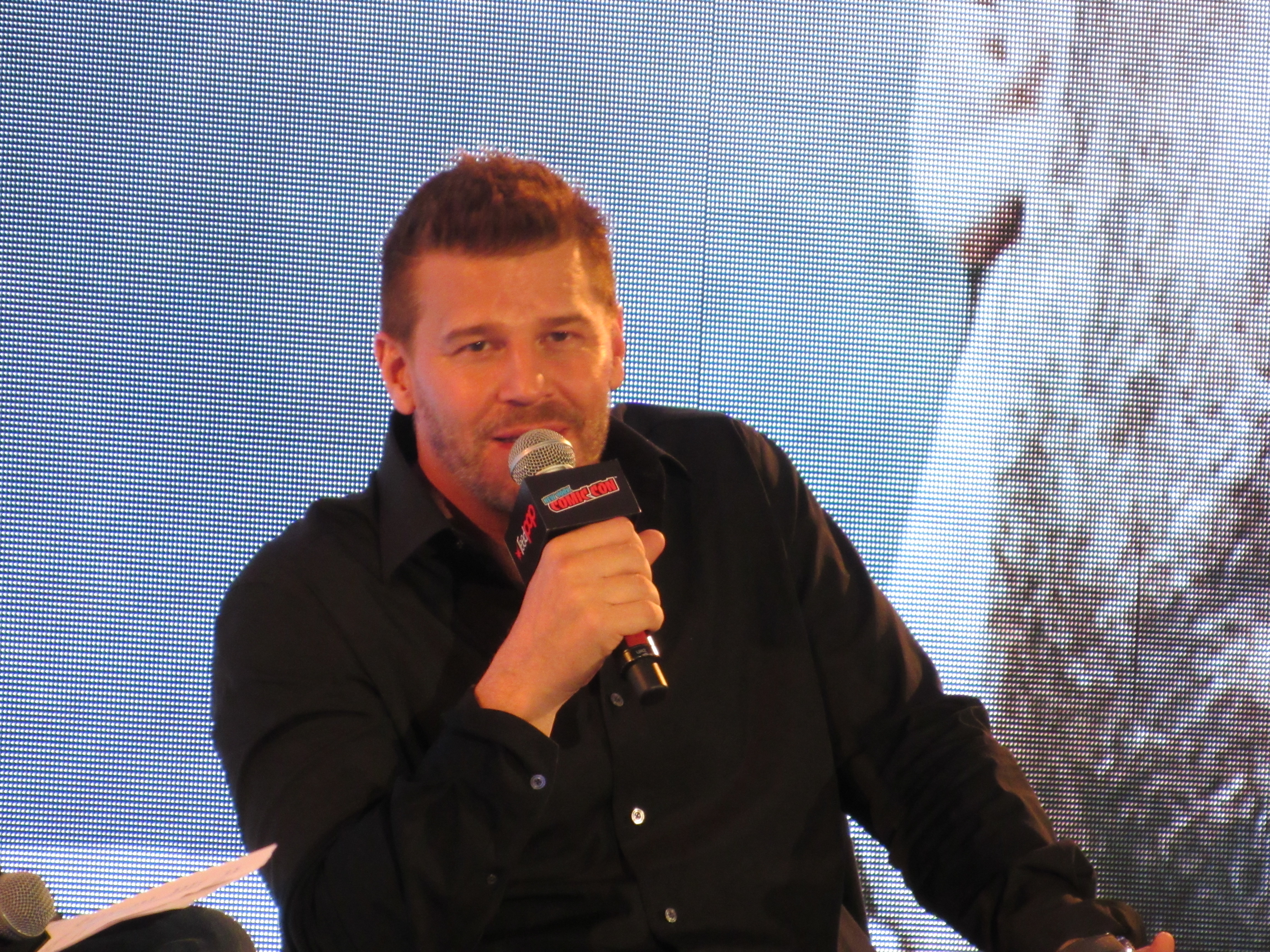 Although this was David’s first time at New York Comic Con, the moderator pointed out that he has had a lot of past experience at San Diego Comic-Con, where he had been involved in Buffy the Vampire Slayer panels. (We ourselves had actually seen him there for Bones at our first SDCC in 2012.) David joked about how his hair was “much higher” back then. He recalled going back year after year and seeing the show grow.