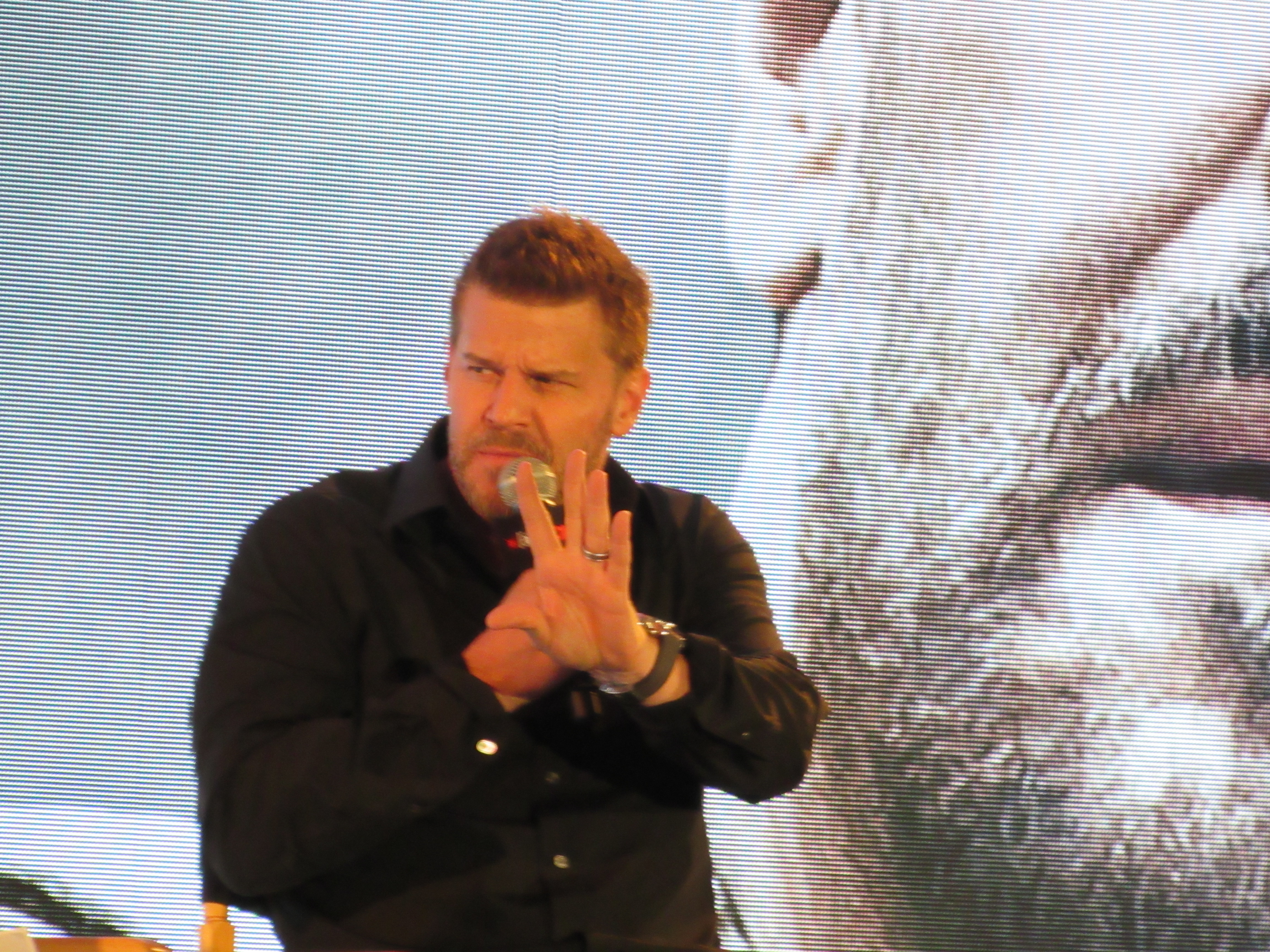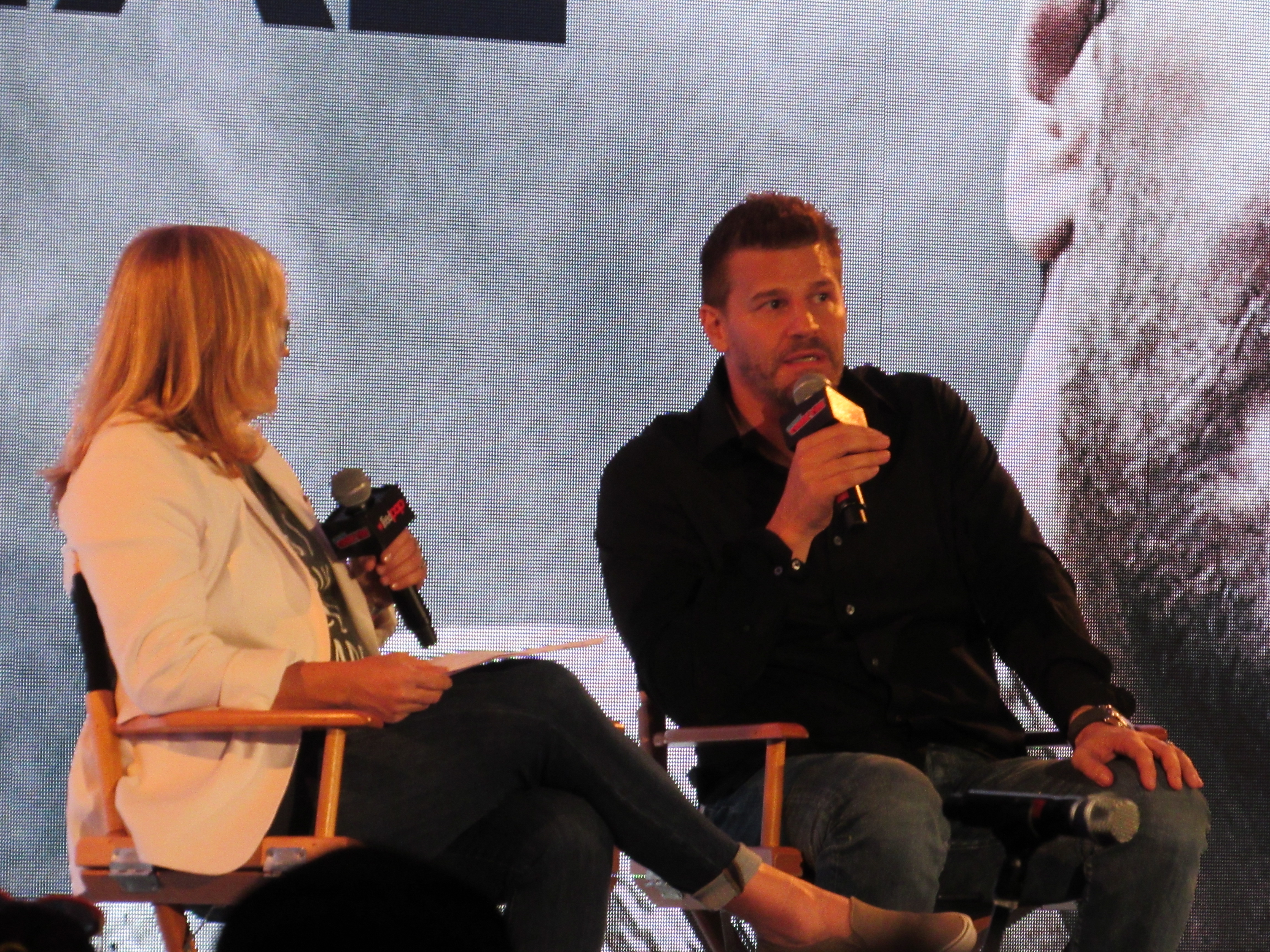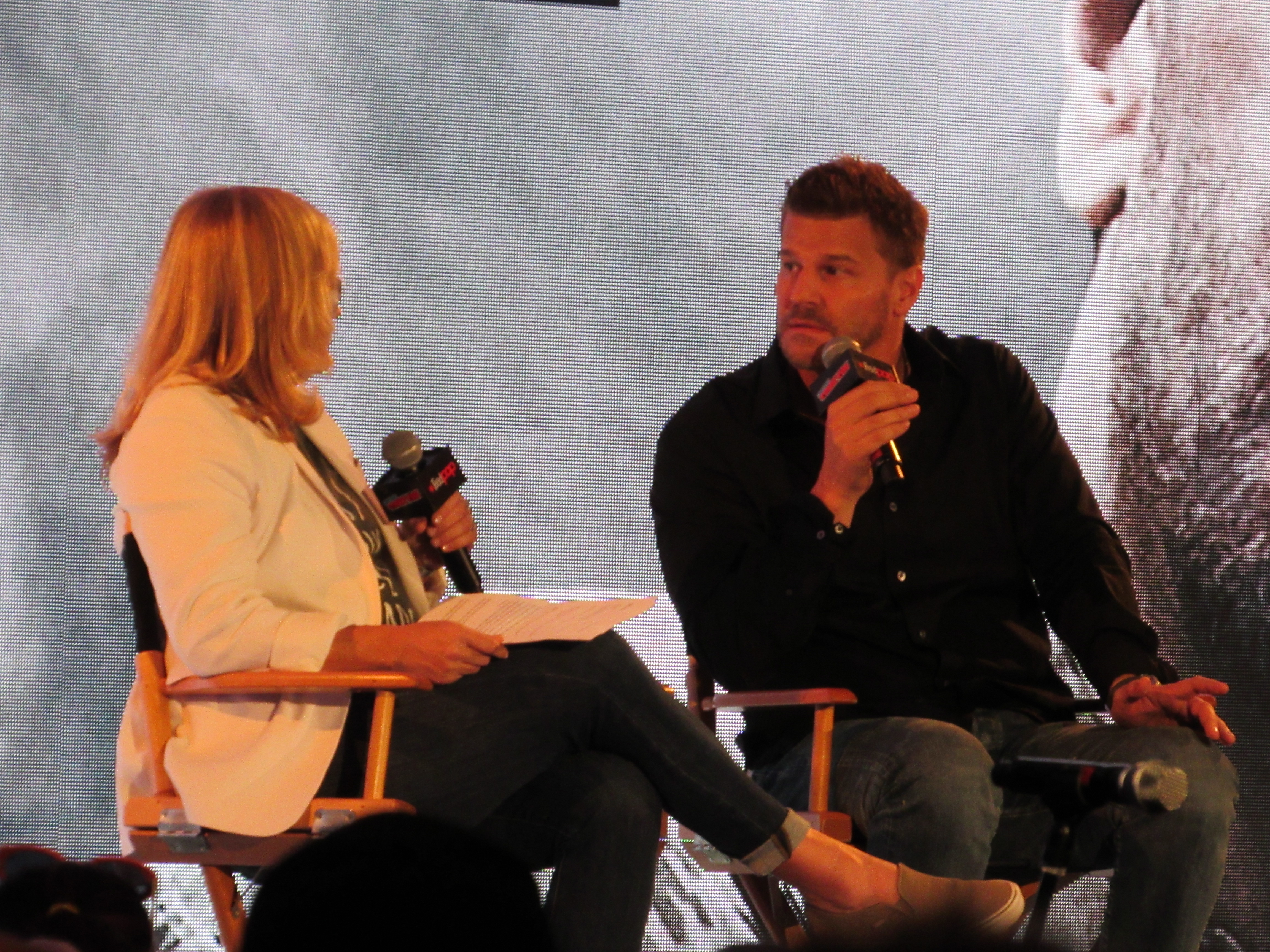 Although this was David’s first time at New York Comic Con, the moderator pointed out that he has had a lot of past experience at San Diego Comic-Con, where he had been involved in Buffy the Vampire Slayer panels. (We ourselves had actually seen him there for Bones at our first SDCC in 2012.) David joked about how his hair was “much higher” back then. He recalled going back year after year and seeing the show grow.