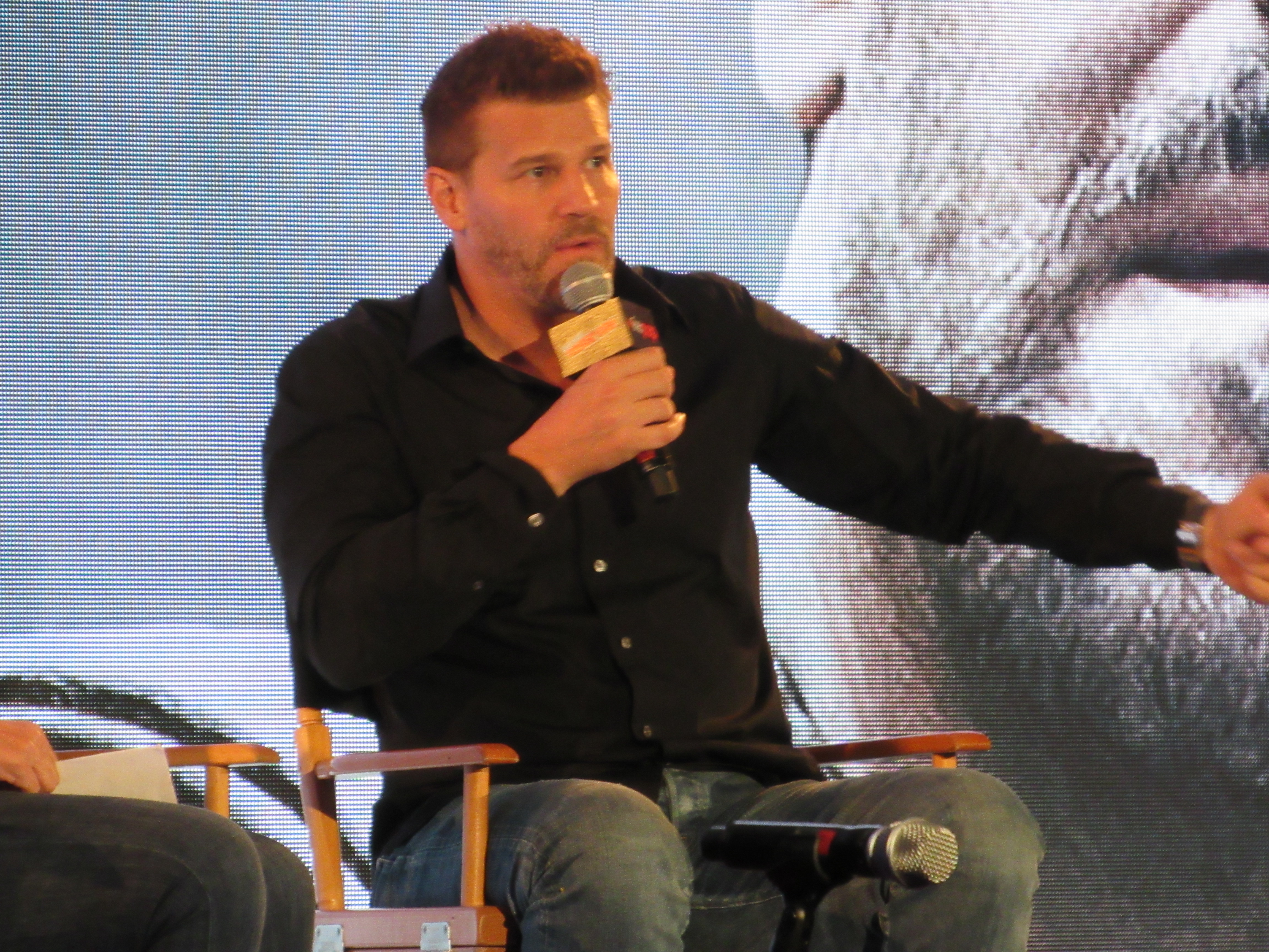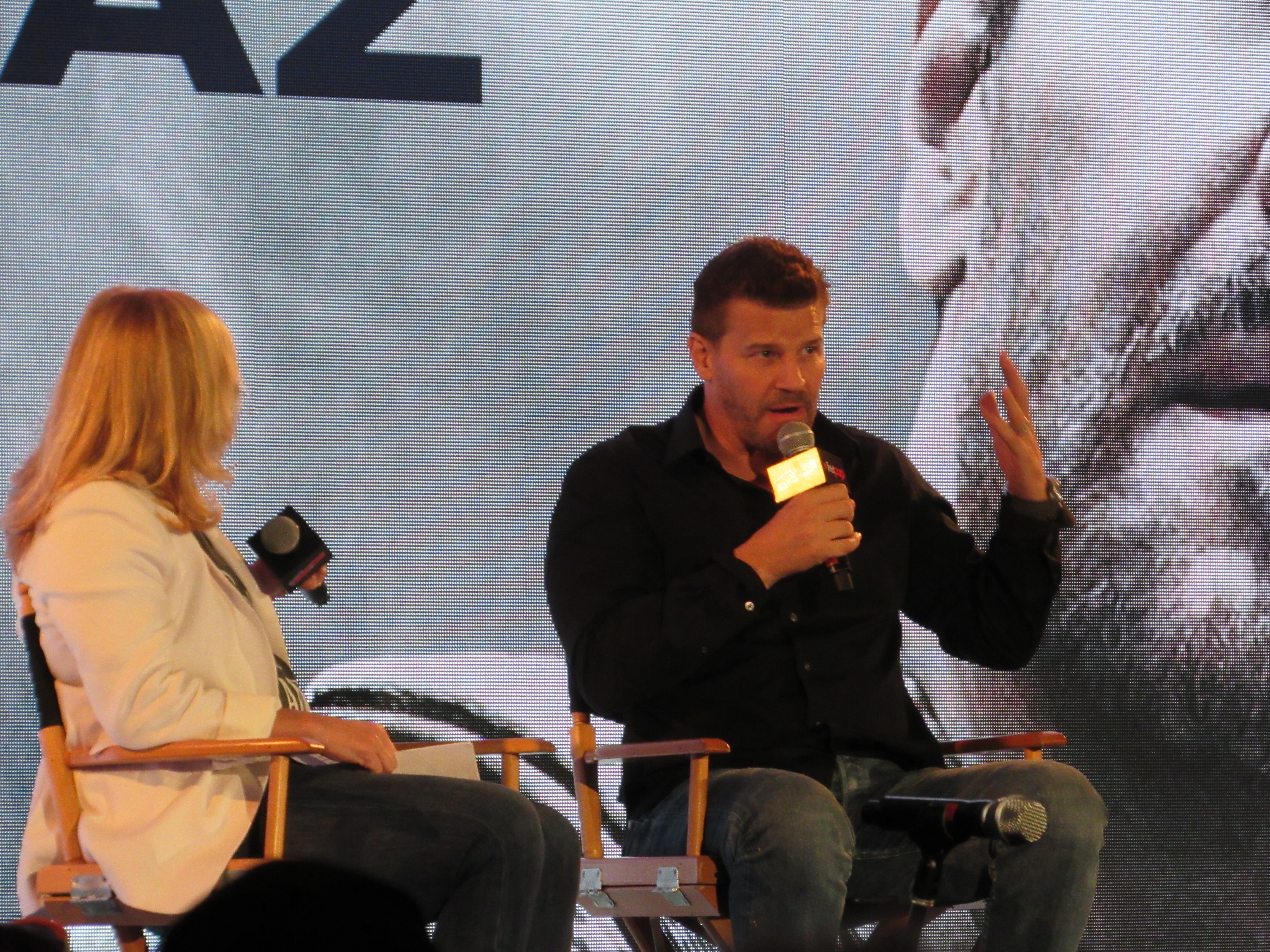 The moderator also brought up Bones, and the viewers “shipping” his and Emily Decshanel’s characters. However, David seemed to be unfamiliar with the term “shipping” and it had to be explained to him. David remembered that when the show started, it was important to the network for that relationship to grow, as they wanted to sort of recreate X-Files. However, David is proud of the relationship that he and Emily created.