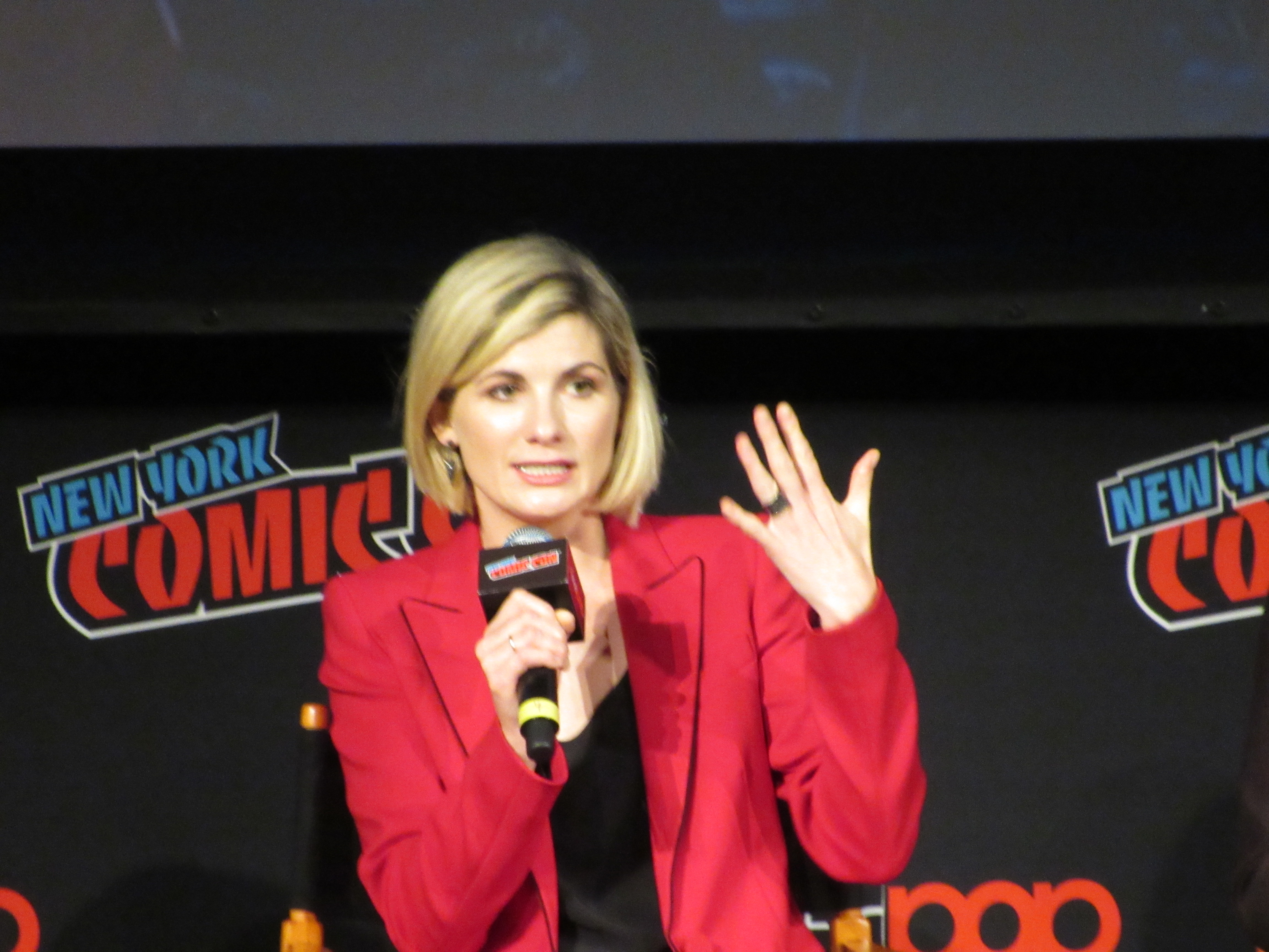 Regarding whether she used the traits of any previous Doctors in her performance as the Doctor, Whittaker admitted she was a new Whovian, and thanked all the Whovians for welcoming her. For her performance, she just went with the energy she felt with her three co-stars, but conceded that there might inevitably be some overlap.