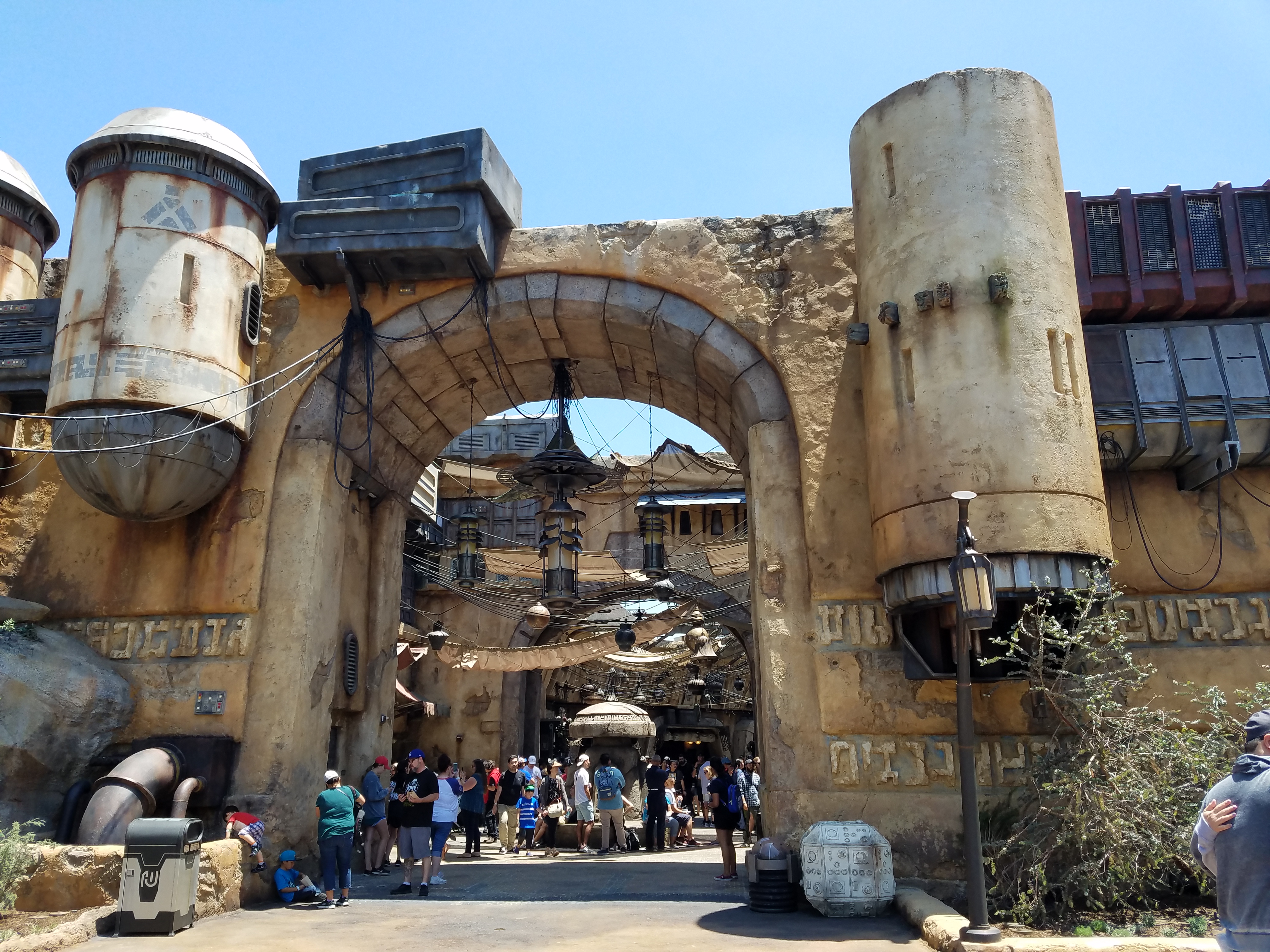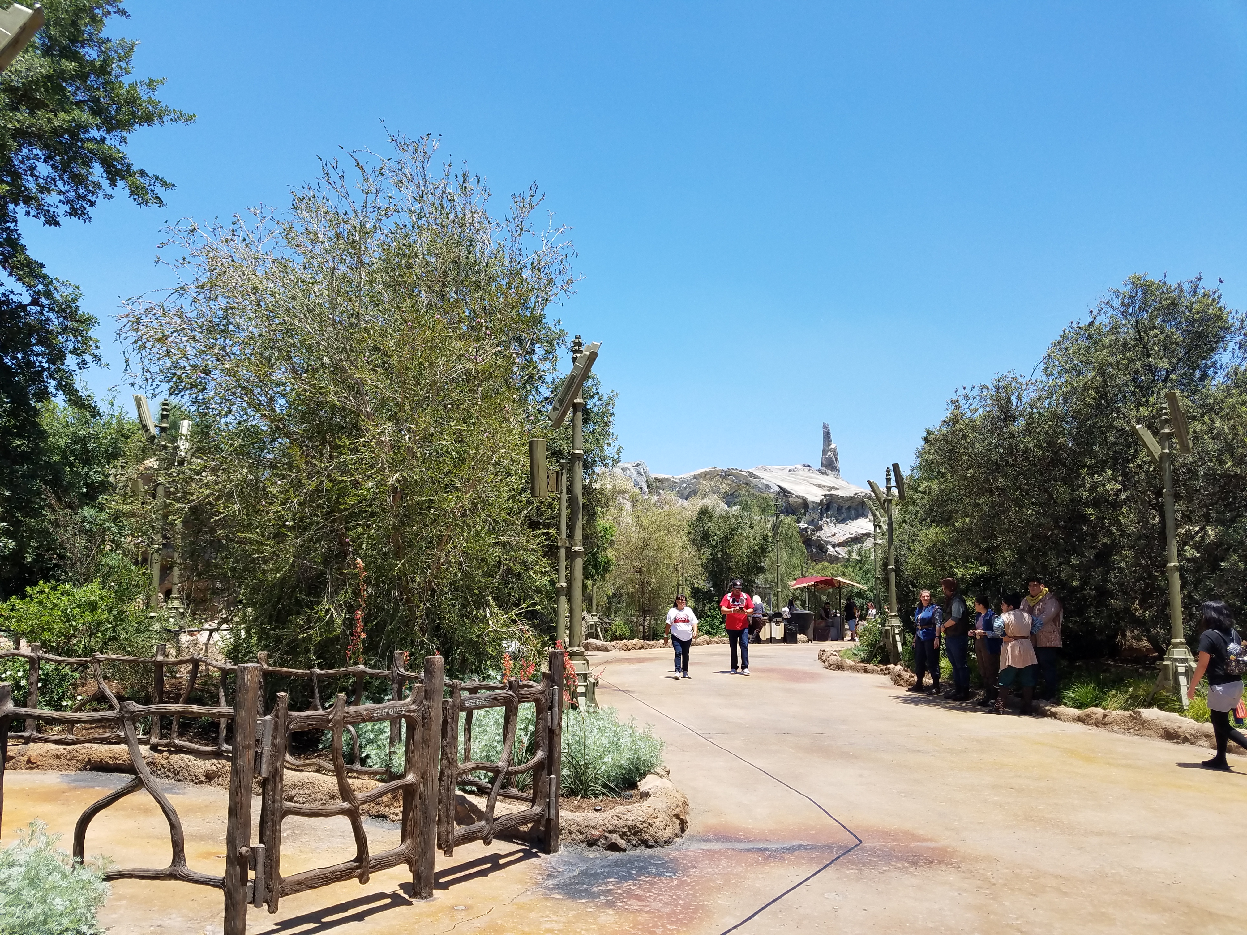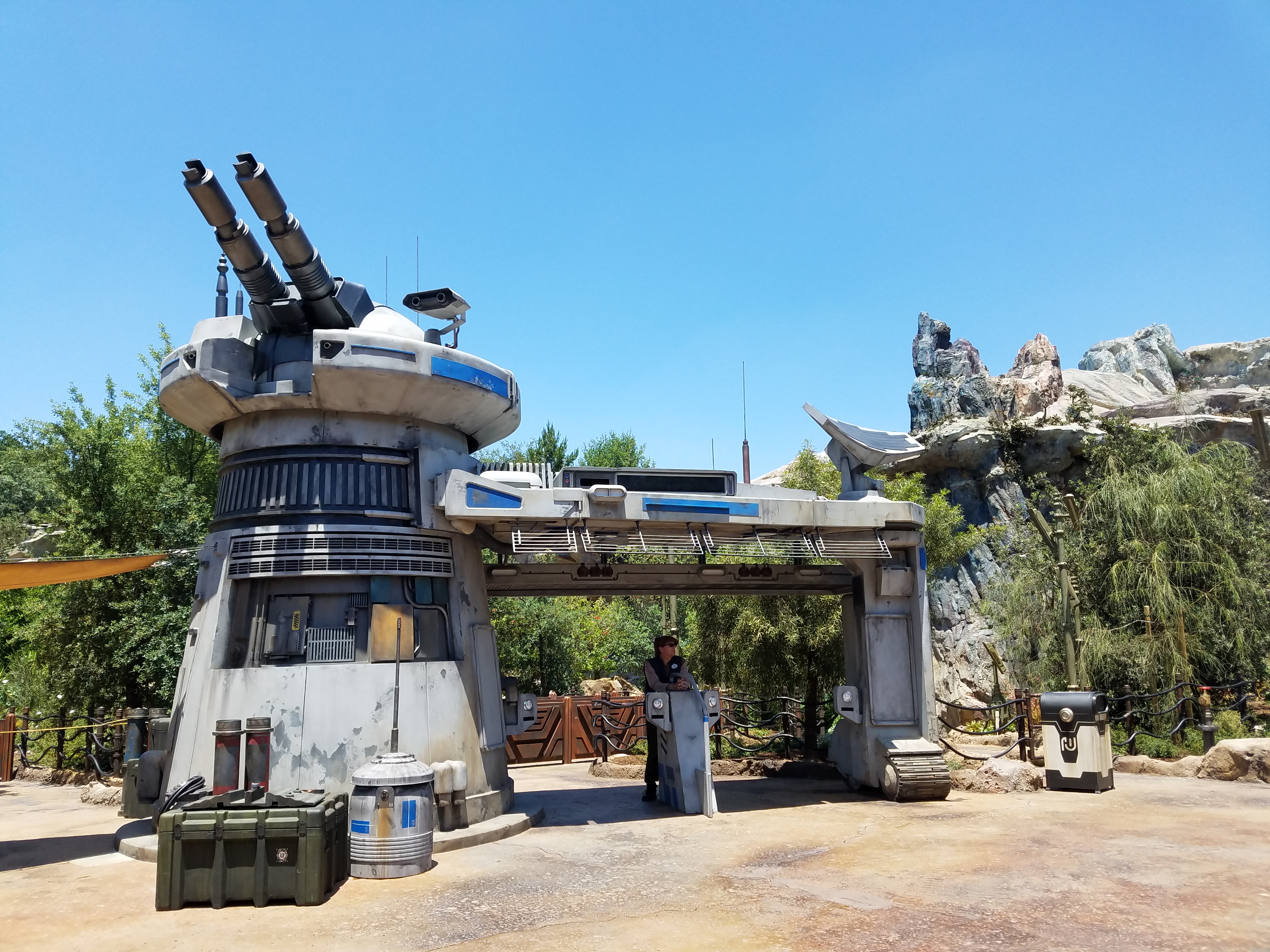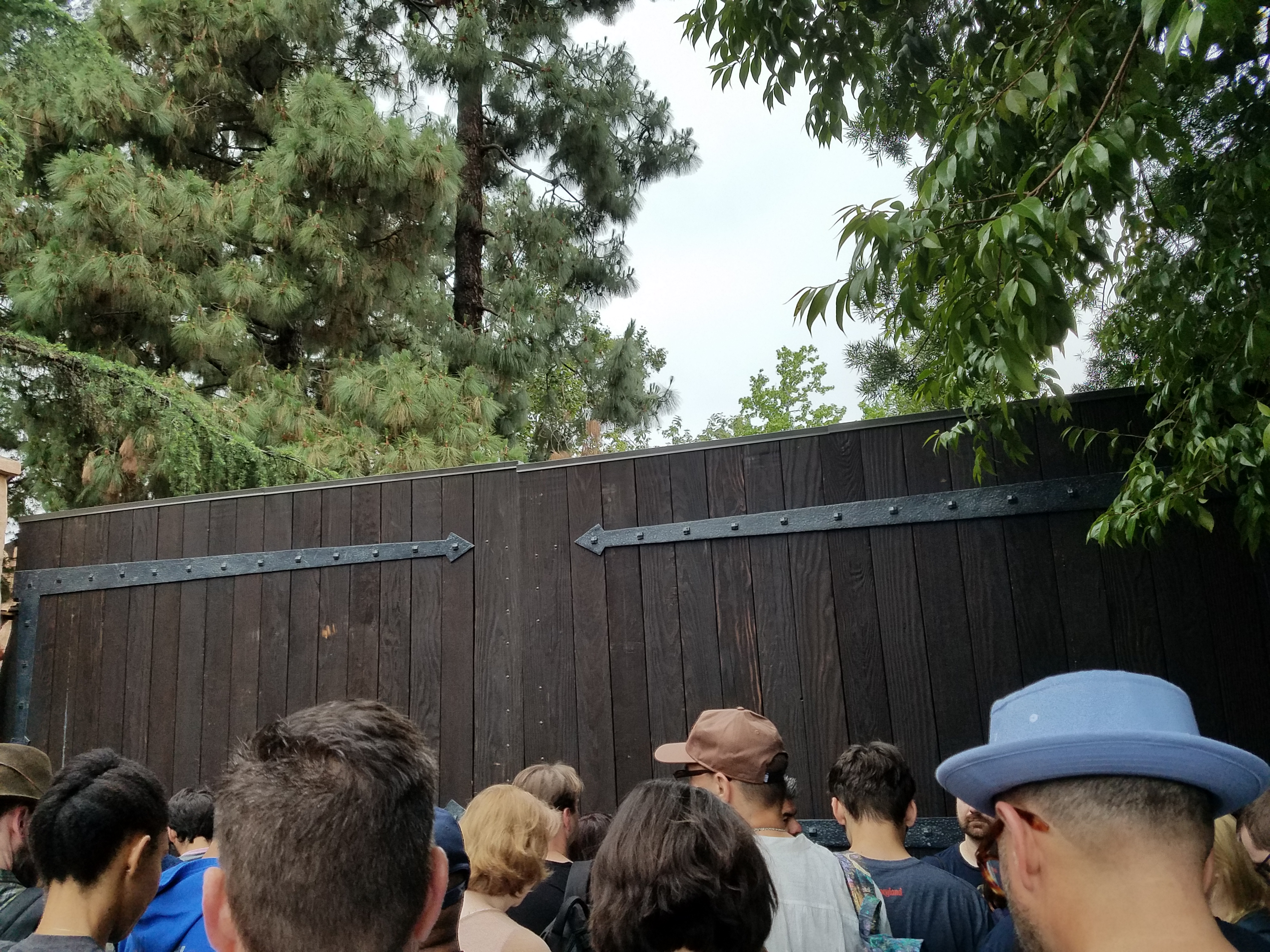 Finally, the gate opened up and we were walked to the Frontierland entrance to Star Wars: Galaxy’s Edge. For those unaware, there are three entrances: one is right past the gates we were held at and referred to as the Fantasyland entrance, the second is the one we were led to, closer to Big Thunder Mountain Railroad, and the third is the Critter Country entrance, right next to Hungry Bear Restaurant.
