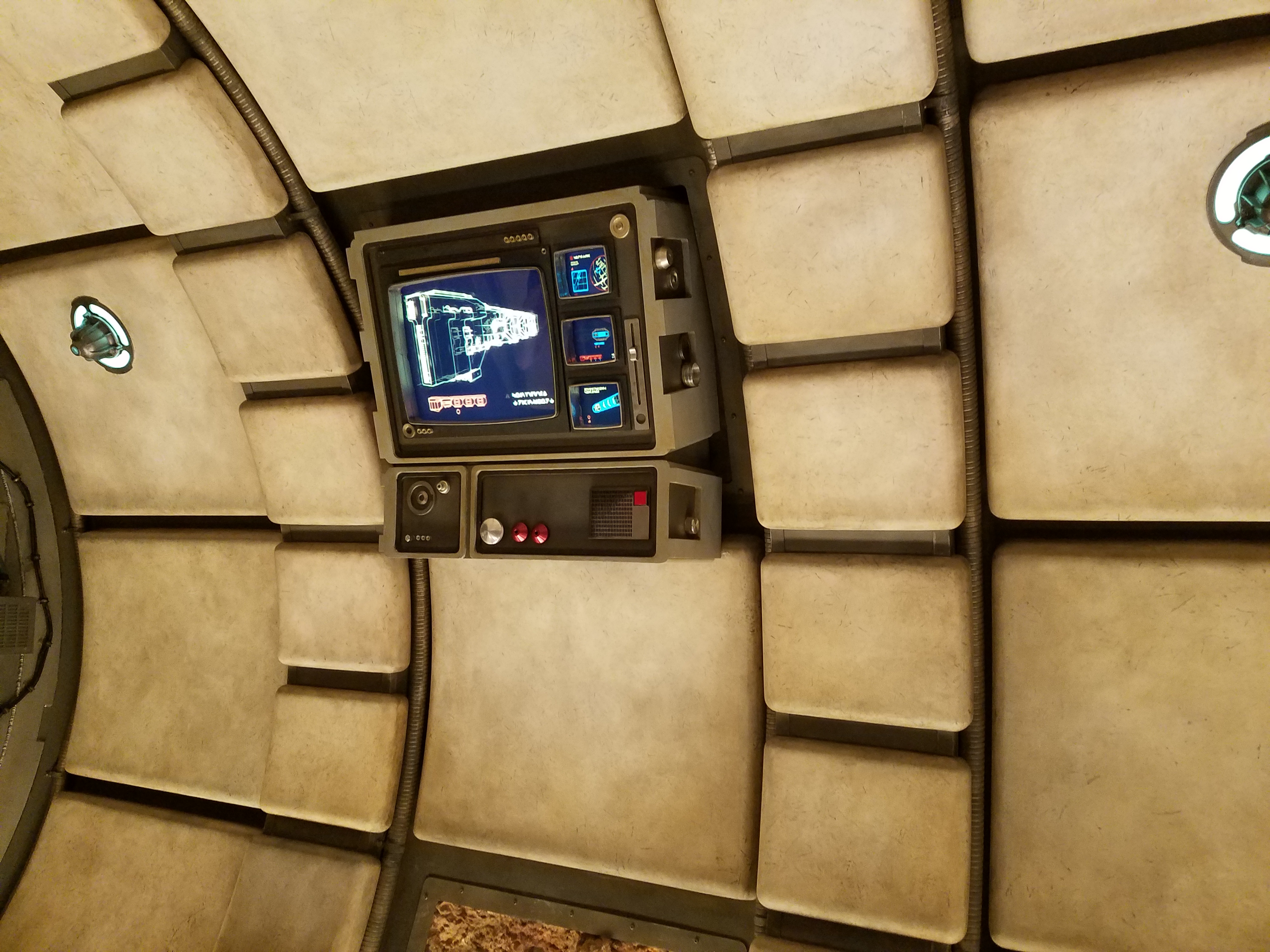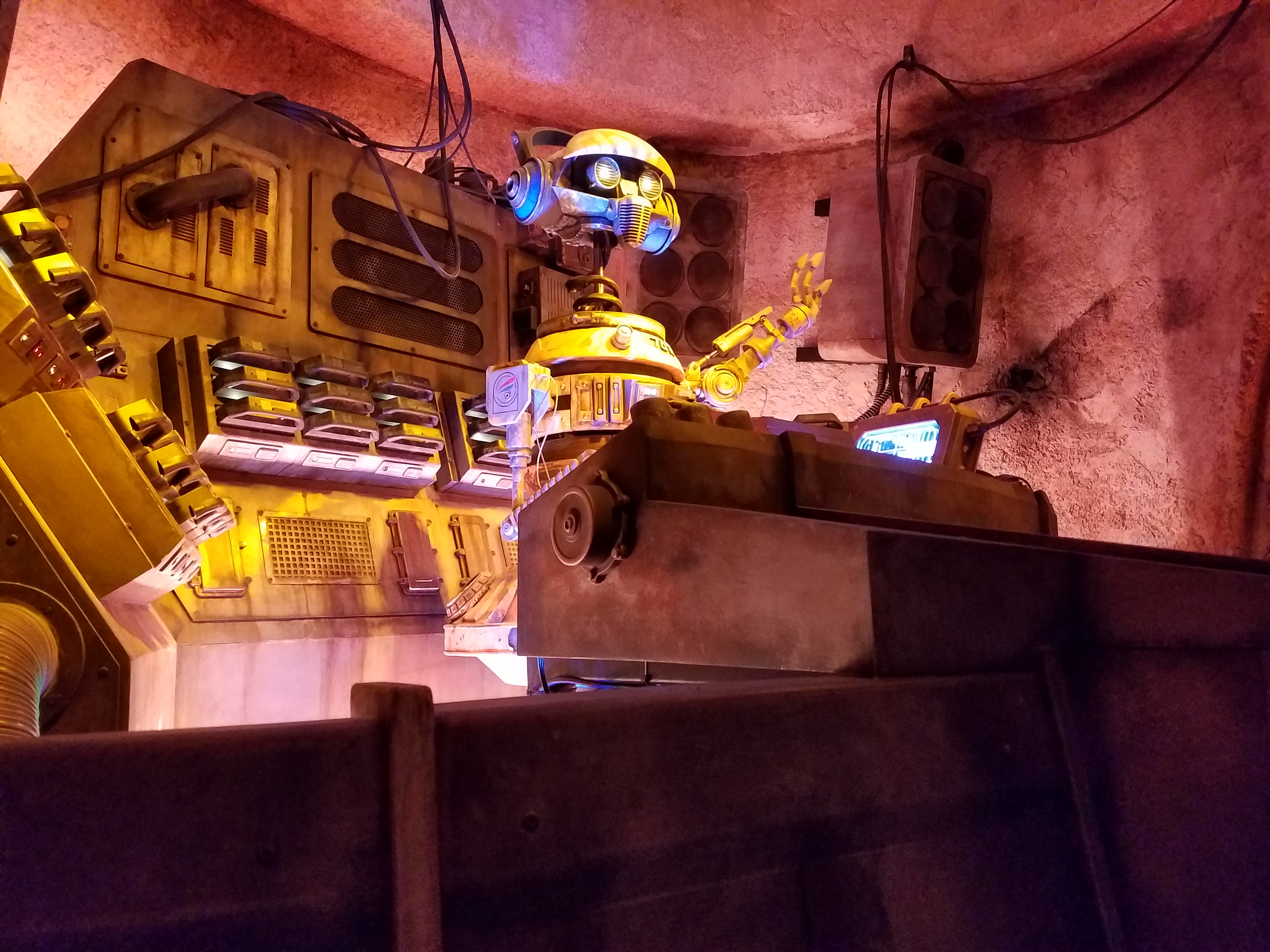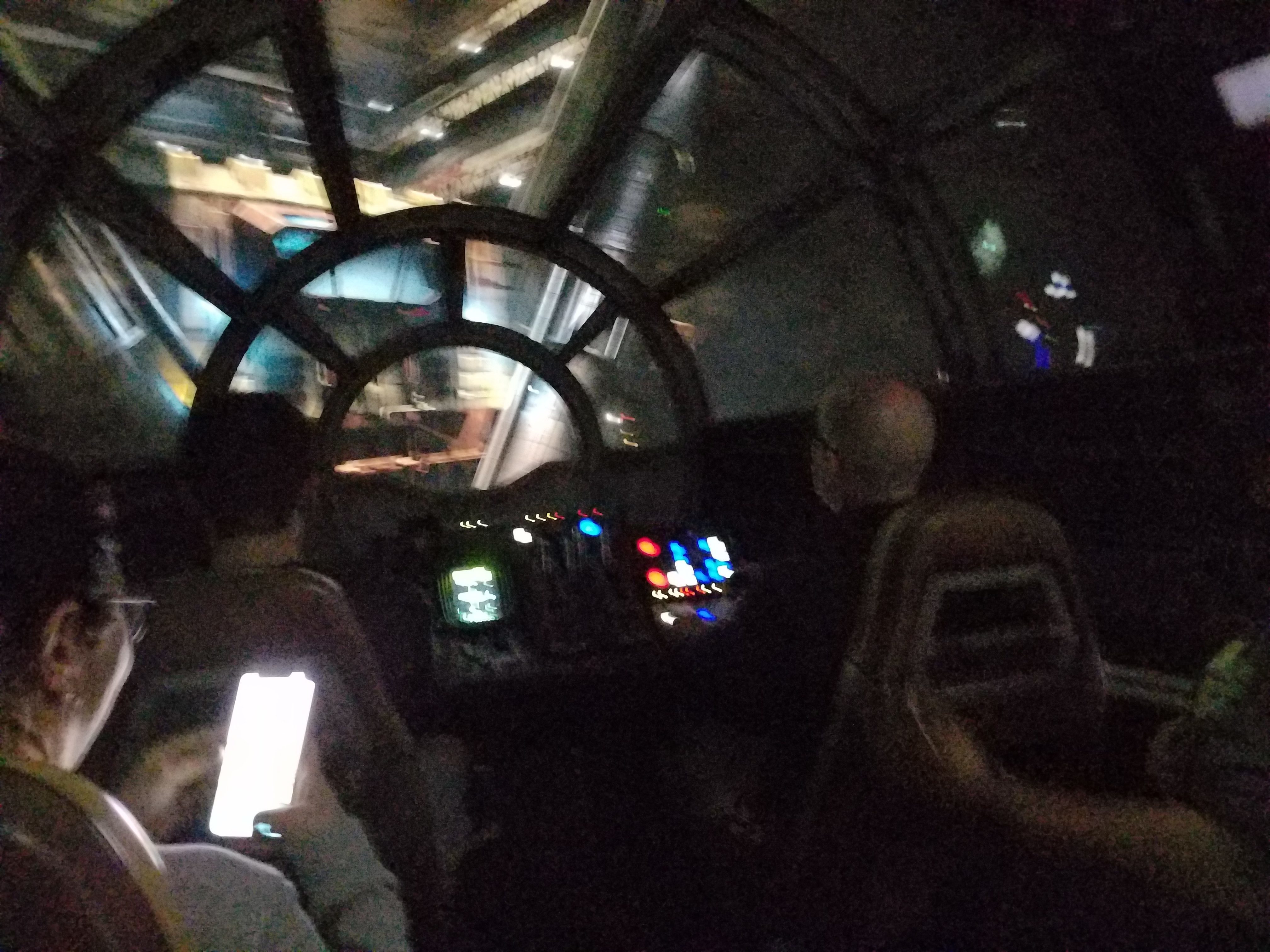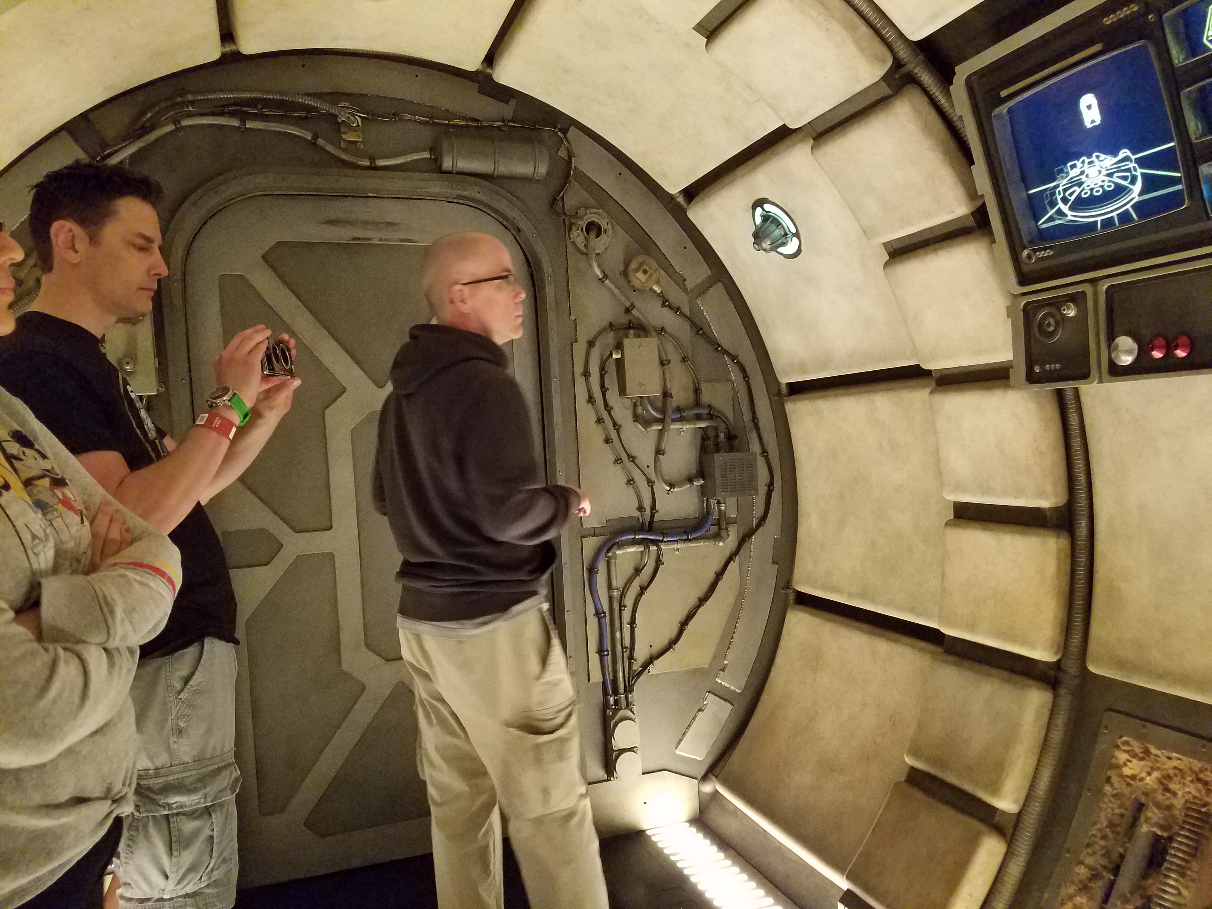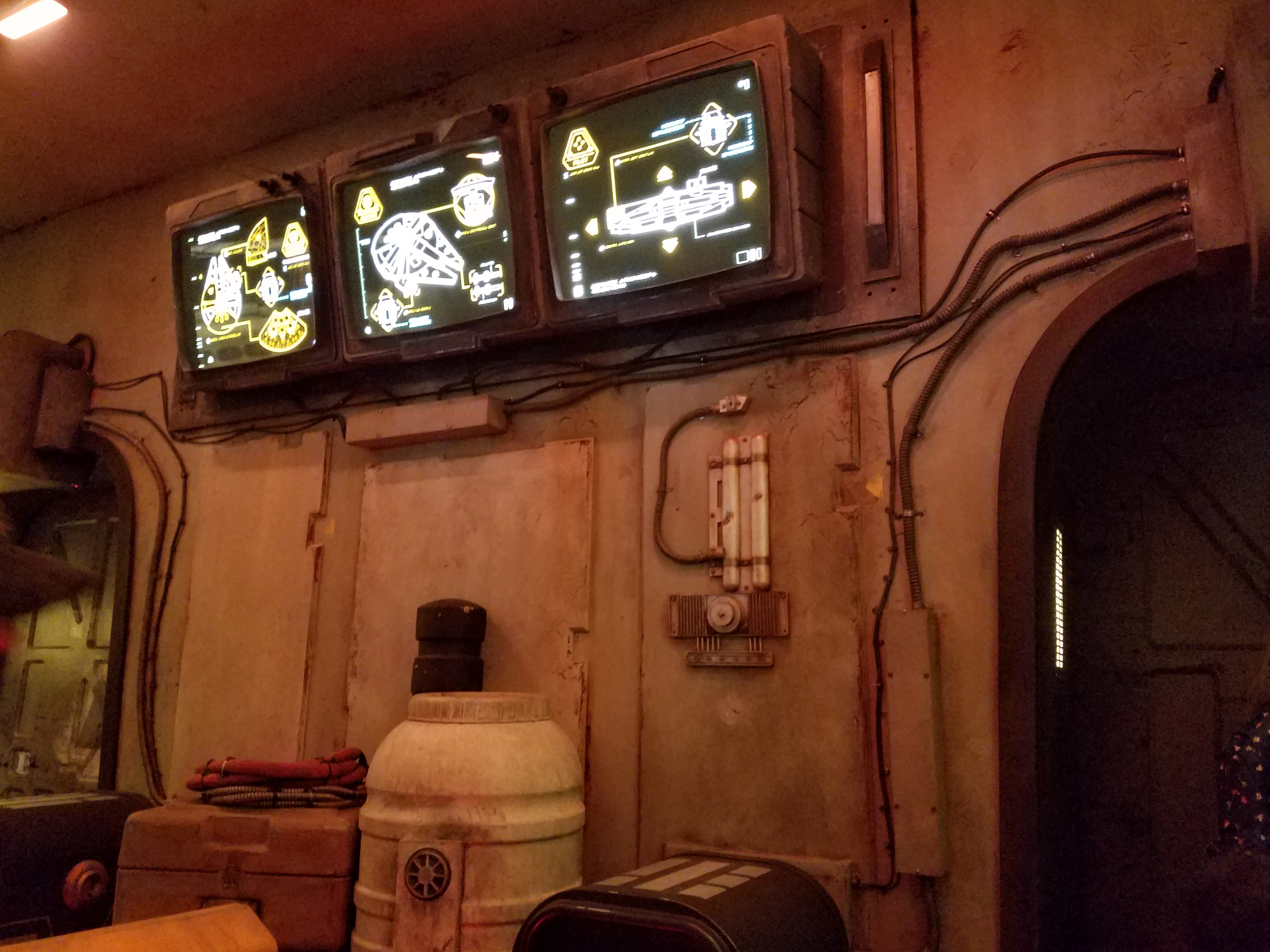 Your job assignment has a color group on it. Several color groups are then let into the next holding area at the same time while they wait to actually go on the ride. This area is the room where you feel like you’re wandering around inside the Millennium Falcon, and where the iconic chess board is located. However, the wait in here is very short, and you have to be quick/aggressive/lucky to get in and get your photo with the chess set. Alas, we were unable to do so either of the two times we rode the ride, as our group color was called before we got the chance.