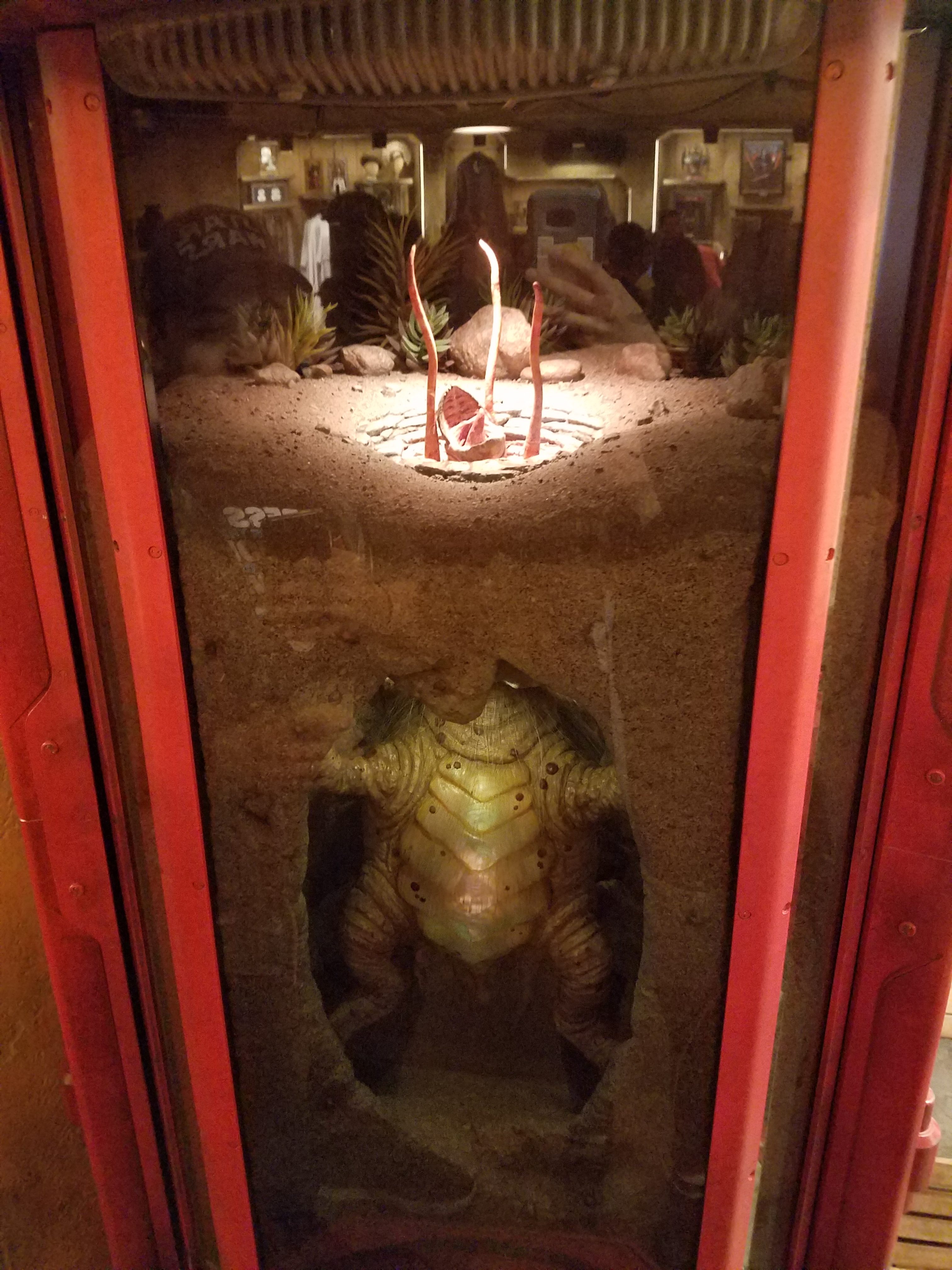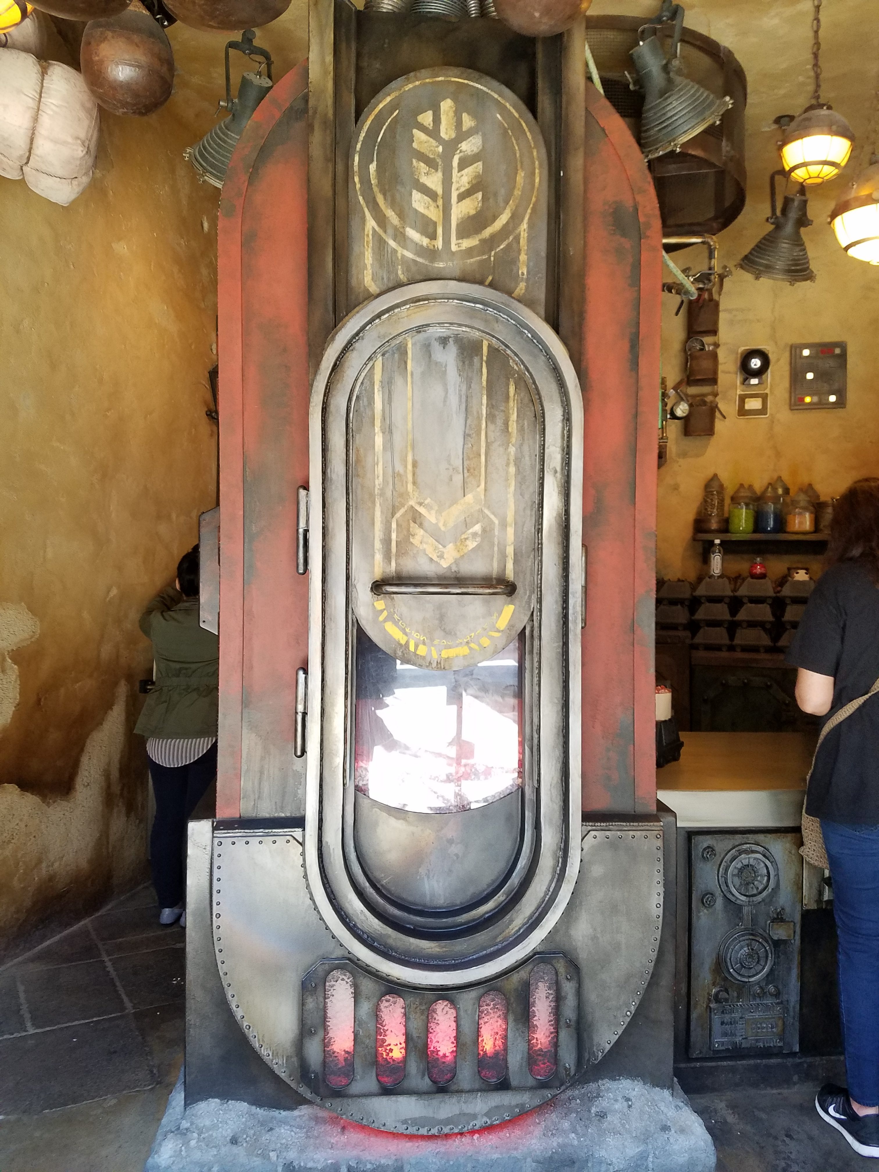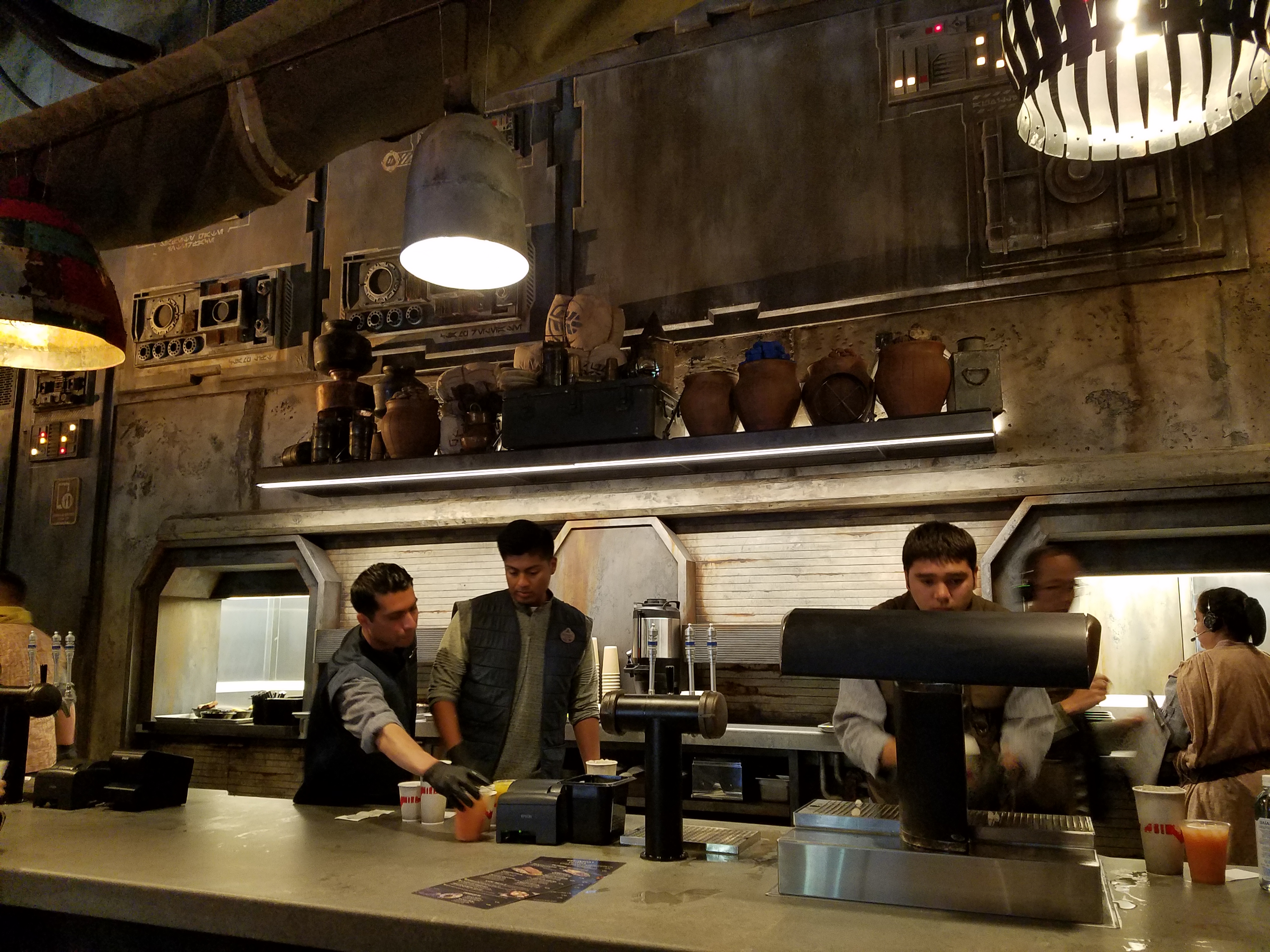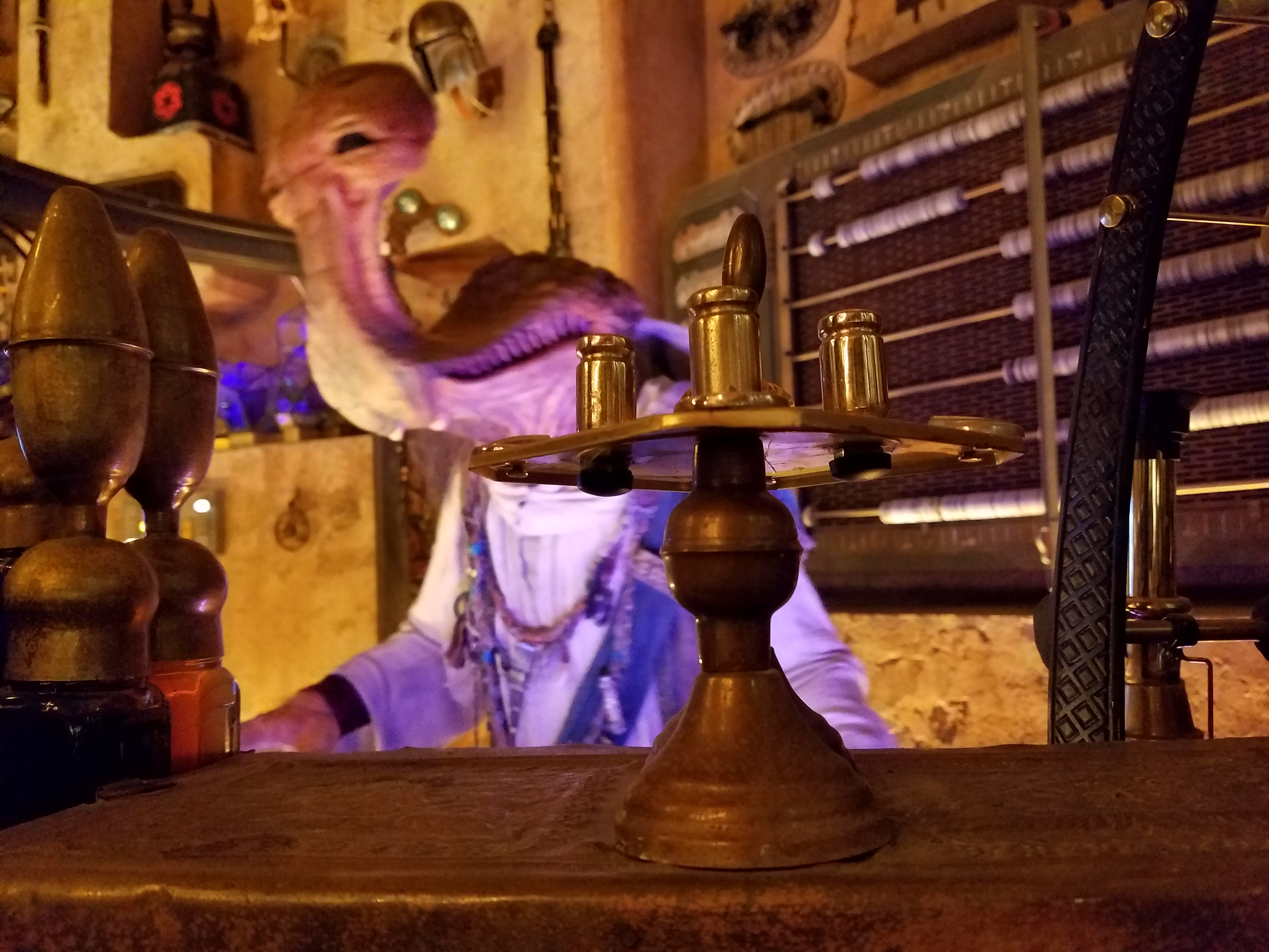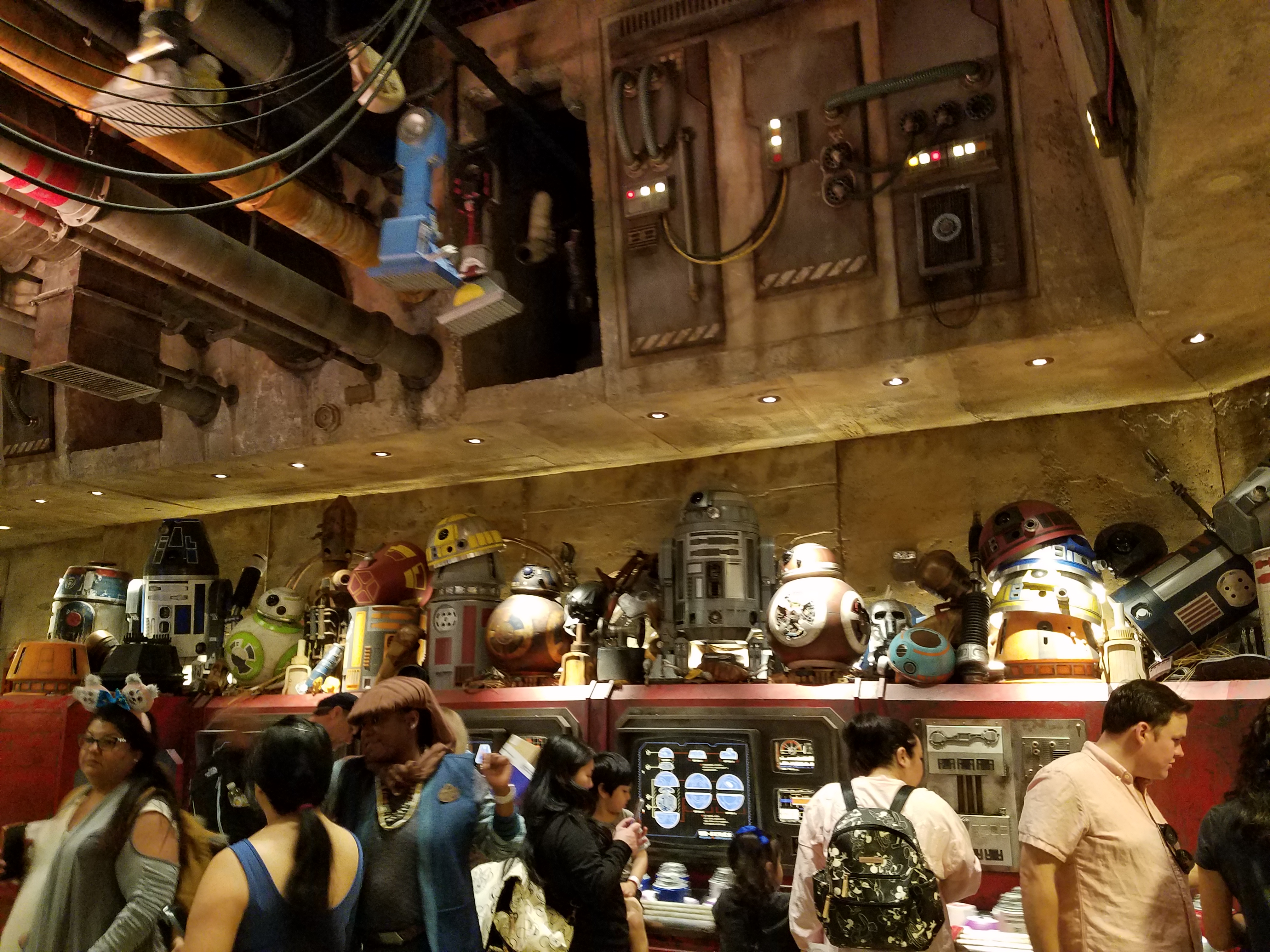 We explored the various shops, such as Dok-Ondar’s Den of Antiquities and the Droid Depot. It should be noted that although we were able to walk right into Dok-Ondar’s, later on in our reservation, after the next wave of reservation-holders came in at 11:00am, there was a line to get in.
